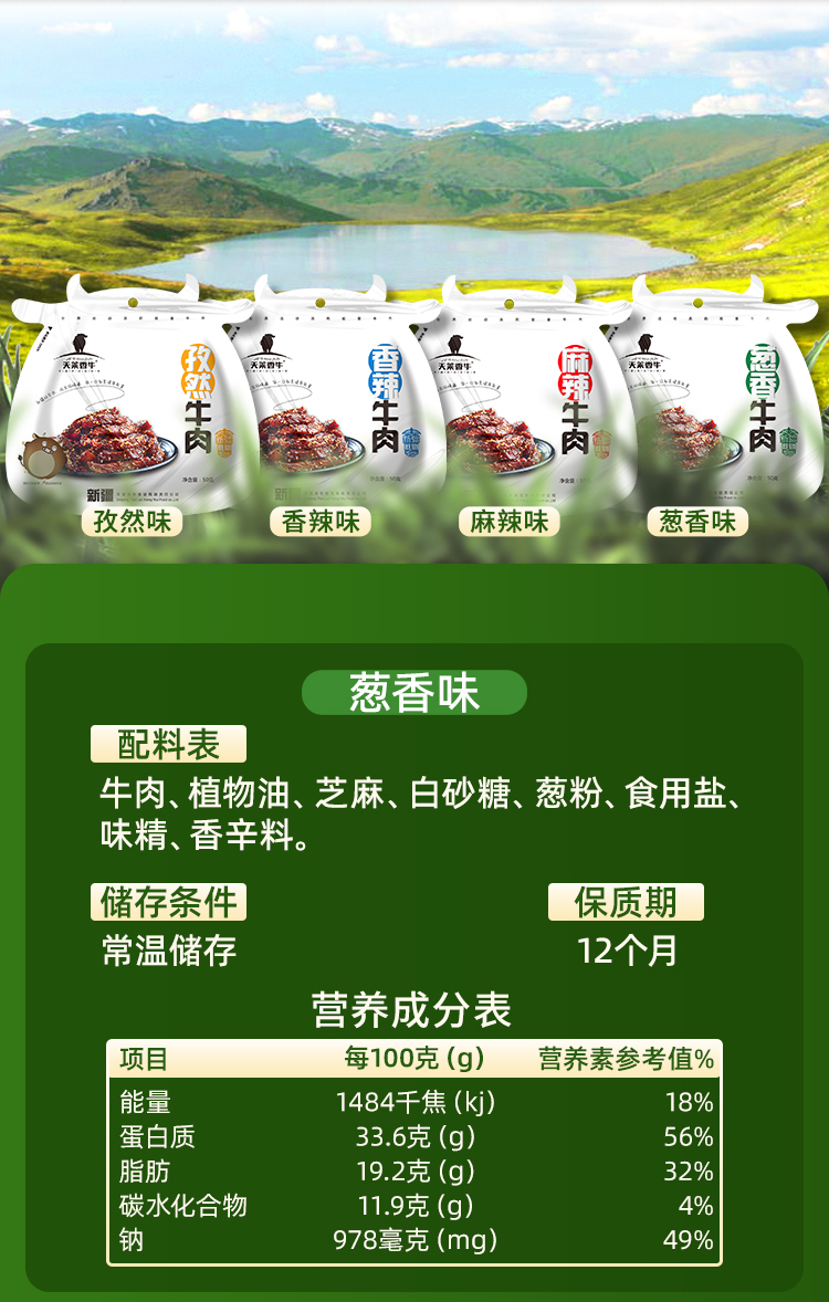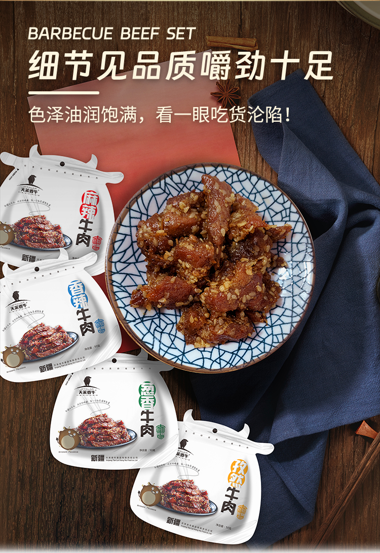 天莱香牛风味牛肉四种口味50g*5袋精致包装休闲零食