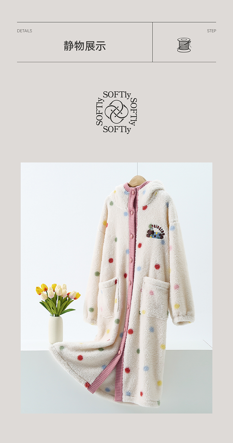 芬腾新款女士睡衣秋冬款珊瑚绒加绒加厚保暖连帽长袖睡裙家居服