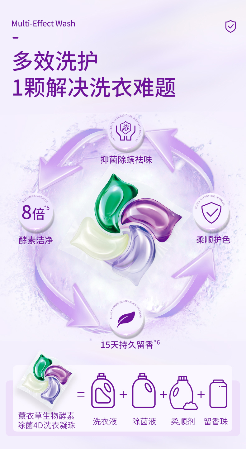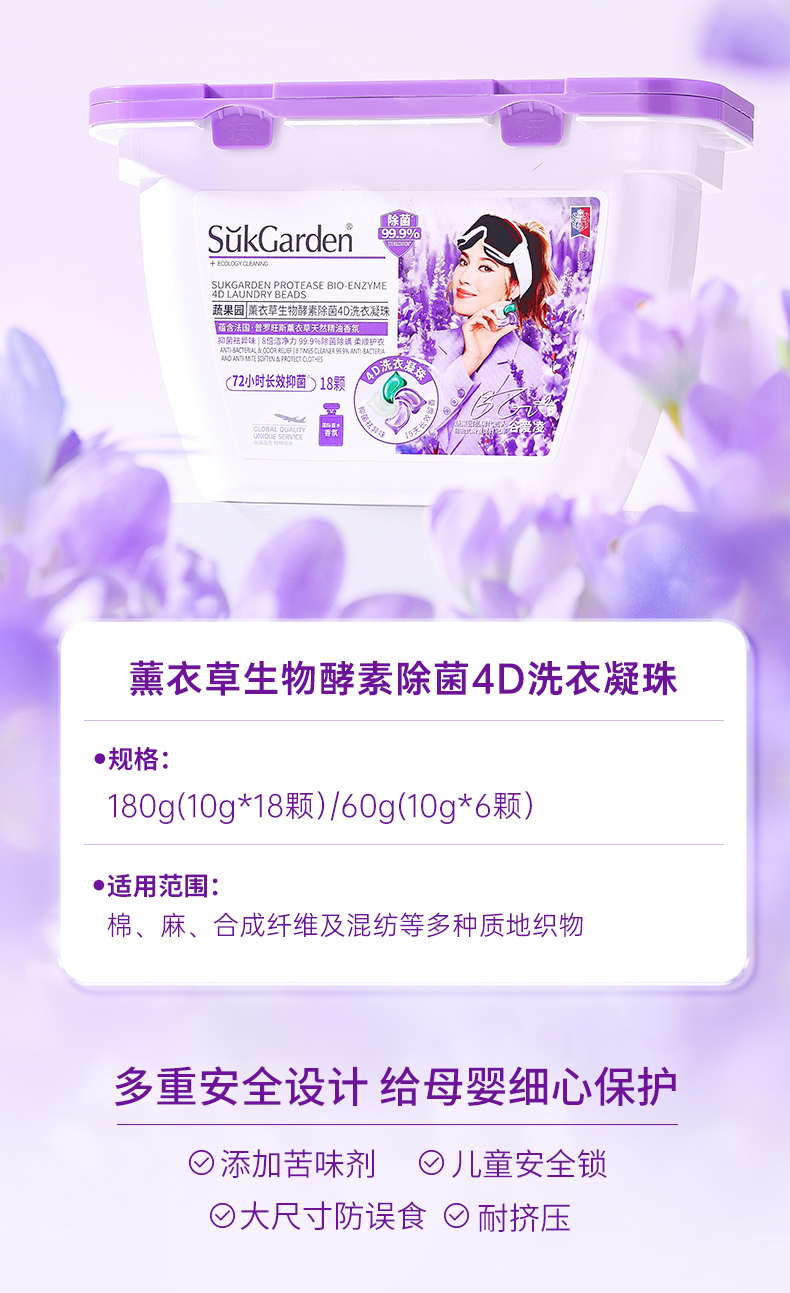 【醒粉福利19.9元18颗*1盒 +赠品6颗*1盒】蔬果园4D炫彩护色洗衣凝珠78%高活除螨到手两盒