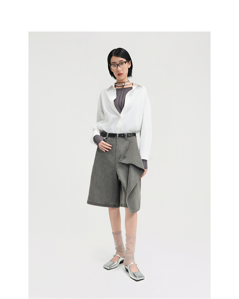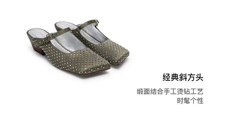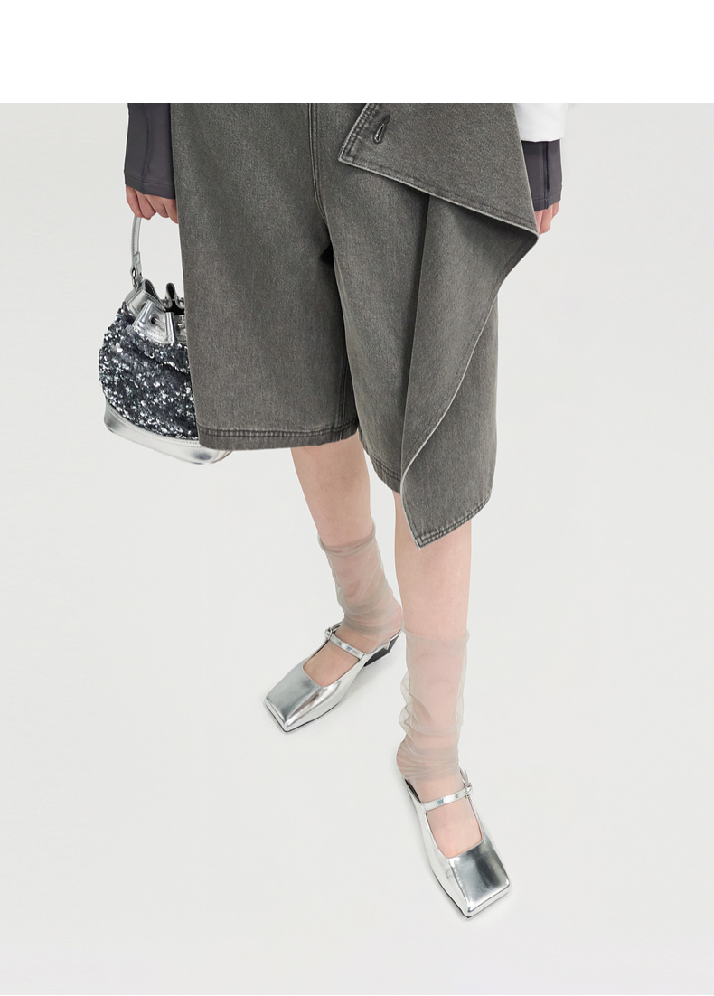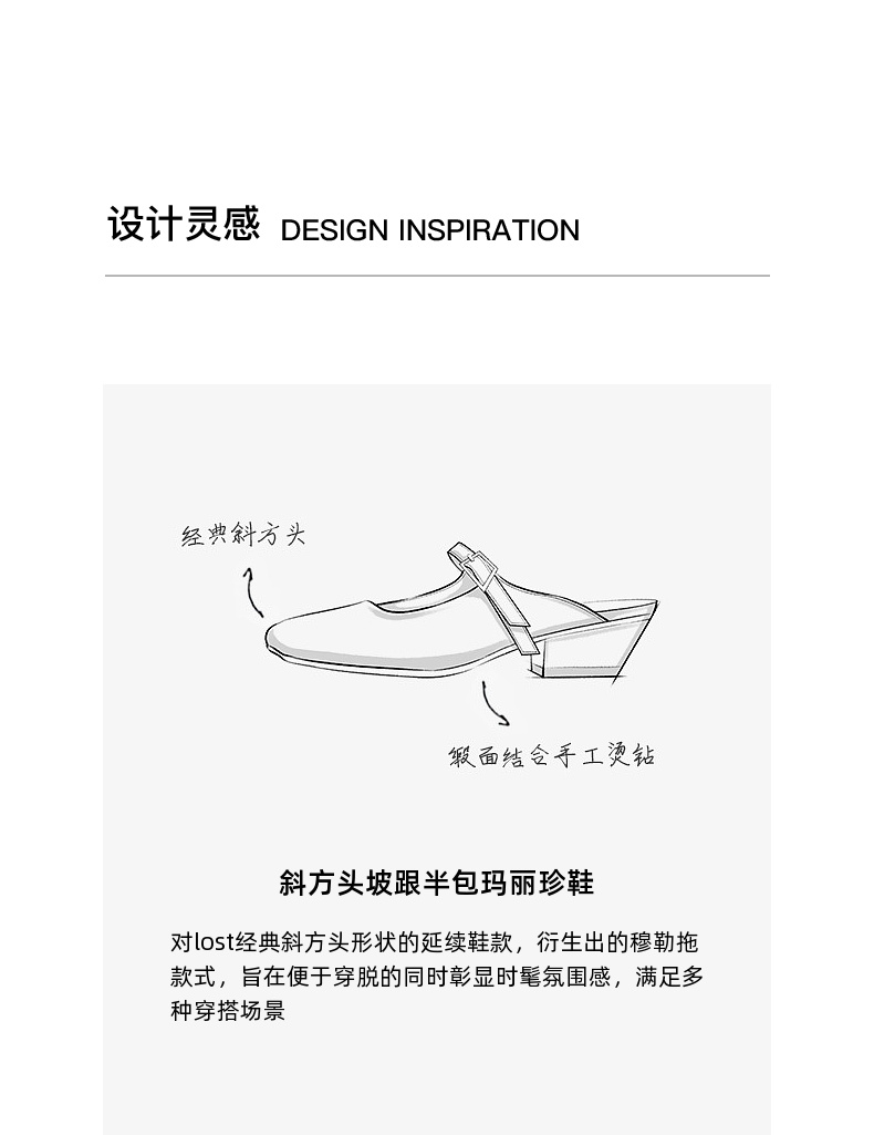 lost in echo2025春夏新款原创个性斜方头坡跟半包银色玛丽珍鞋女