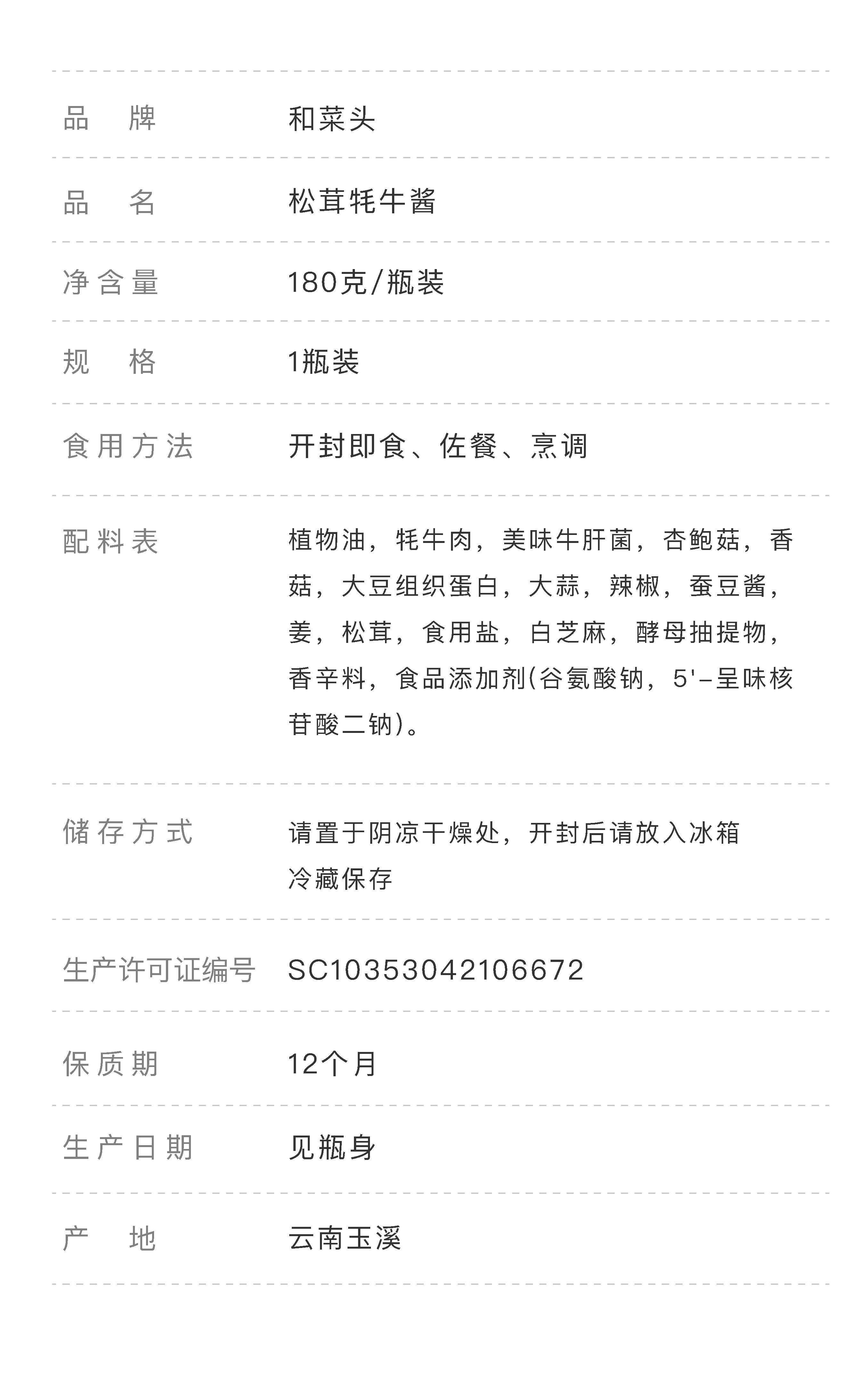 和菜头 松茸牦牛酱 180g/瓶