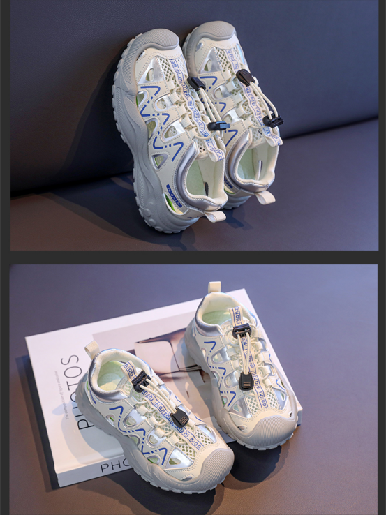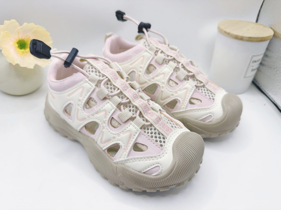 孩子们的凉鞋很多,这种包头防踢的运动款式凉鞋是校园最常见的。 学校里面孩子多,课桌椅最多, 孩子们打打闹闹最容易磕碰到桌角, 所以校园里面这种包头凉鞋最安全。