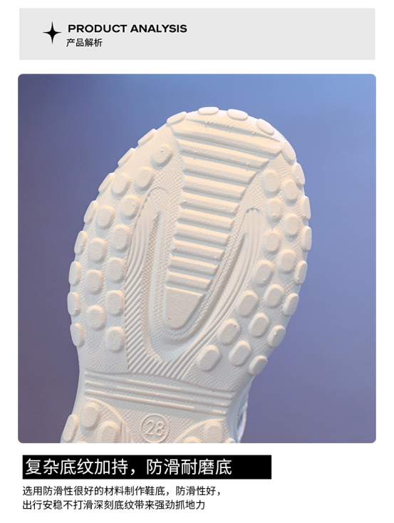 这种包头防踢的运动款式的鞋头都是做了微微上翘的设计, 给脚一个缓冲力更舒服。 具有宽敞包裹鞋头,根据儿童足部形状设计的鞋头, 不阻碍脚趾在鞋内的伸展,又能很好包裹、保护脚趾。