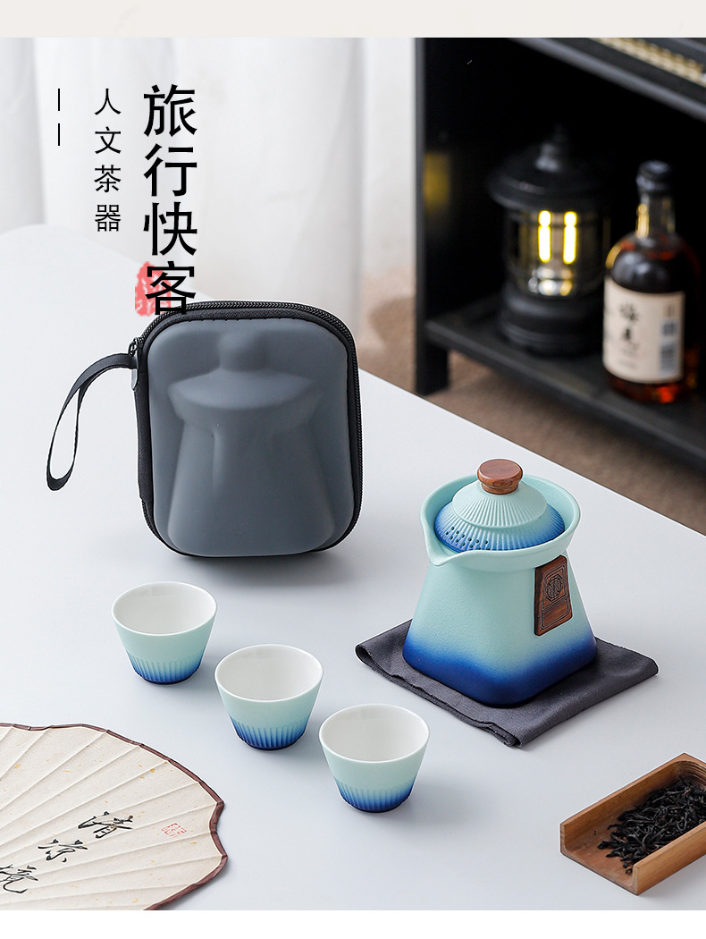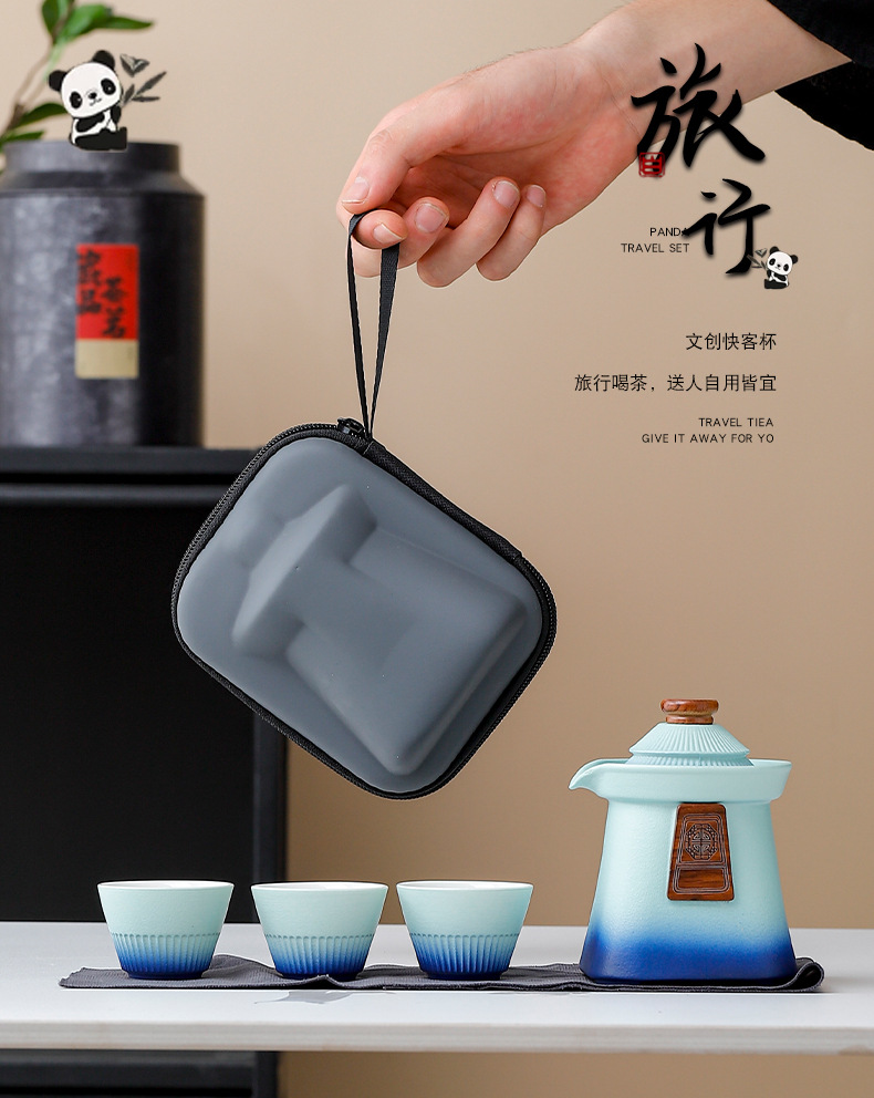 【居家好收纳!旅行好携带】国潮故宫文创宫廷风旅行茶具小套装快客杯便携式户外商务伴手礼品。ry