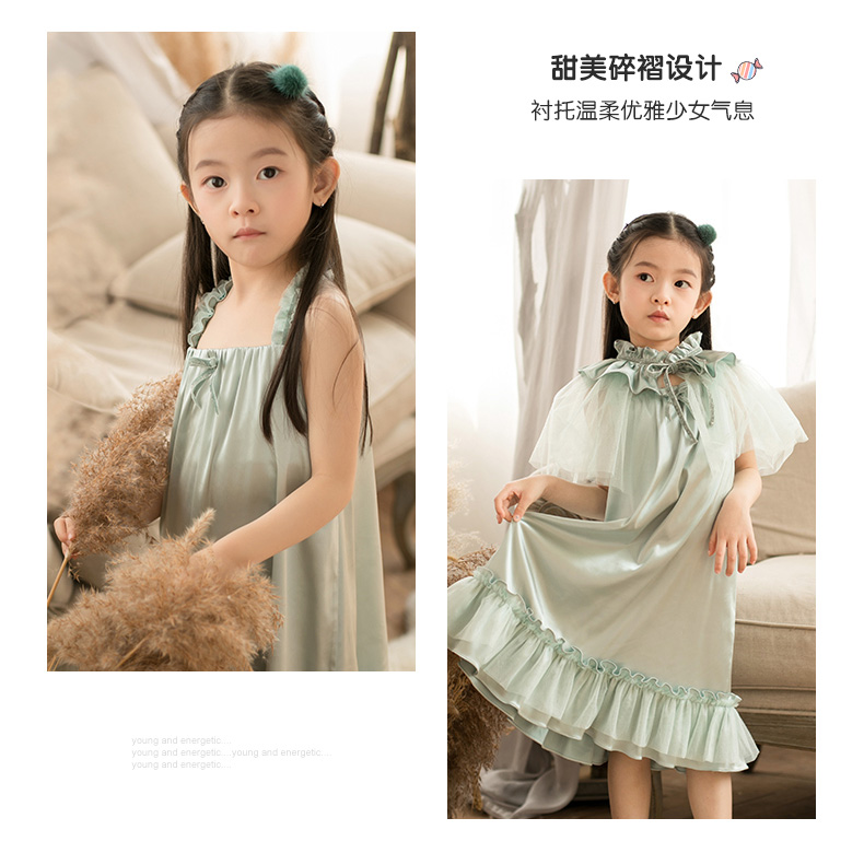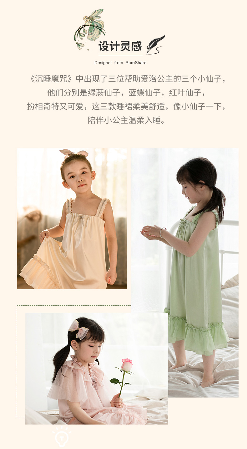 非质量问题不退换哦~pureshare女童睡衣夏季新款吊带薄款家居家服空调真丝儿童公主-仙子睡裙