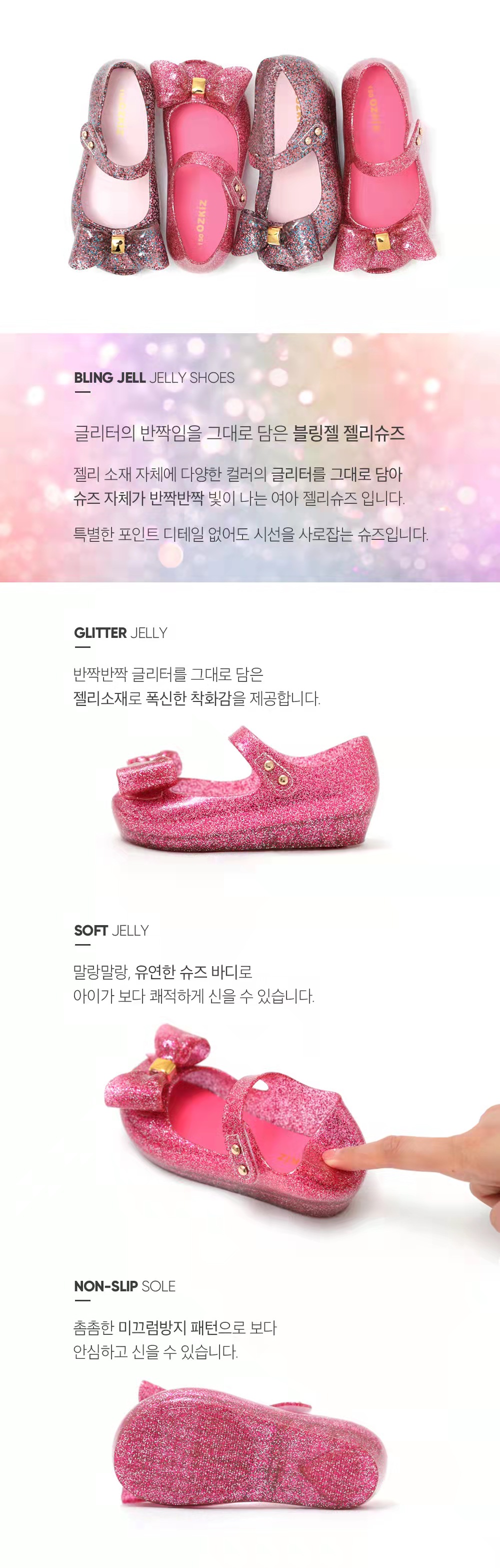 韩国Ozkids 闪粉蝴蝶结果冻鞋