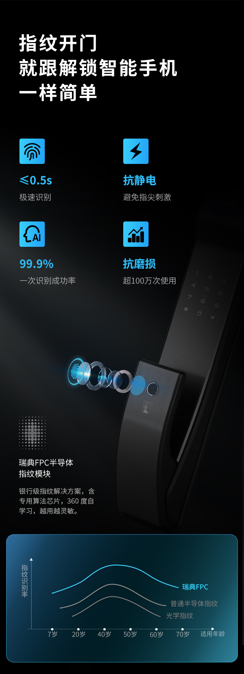 凯迪仕全自动推拉智能锁 K9-W (包邮直发)