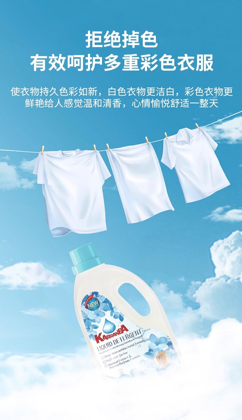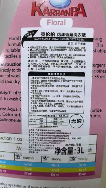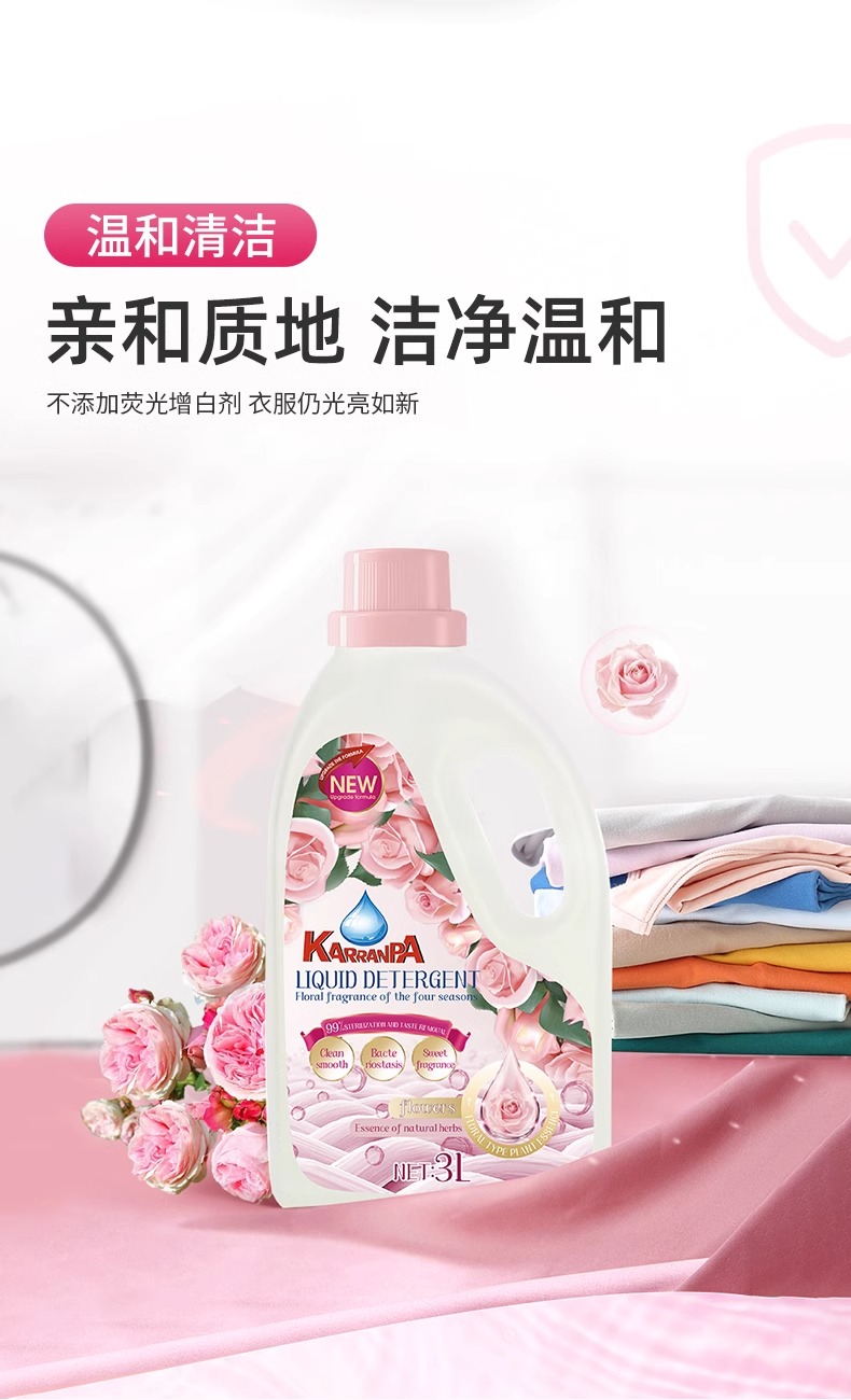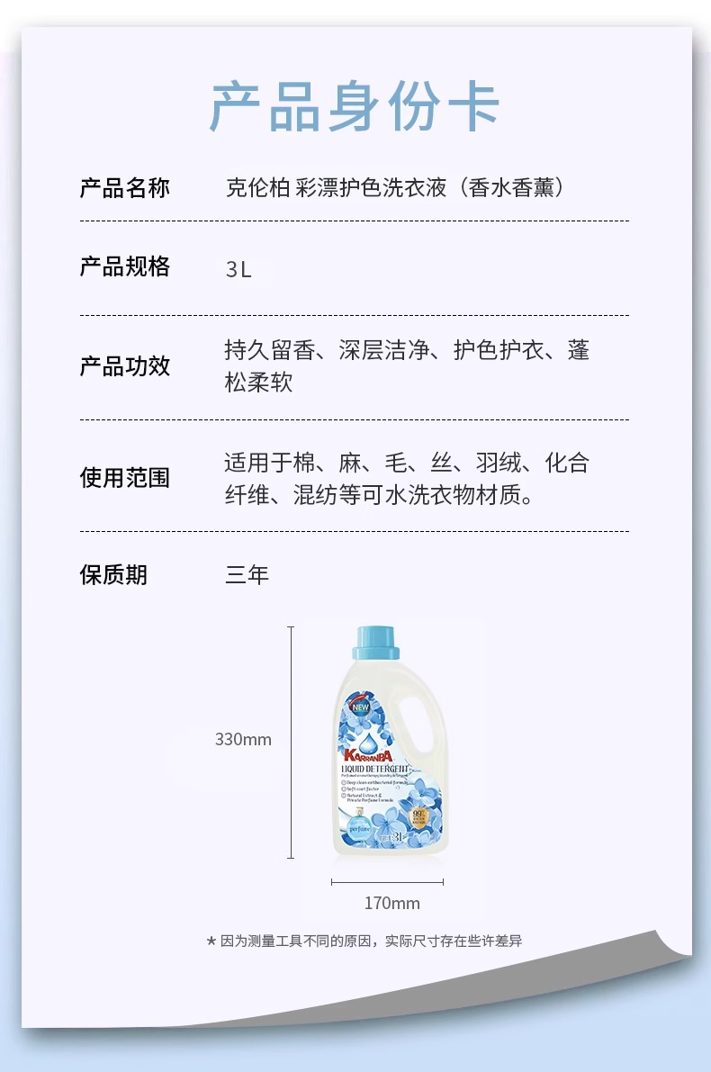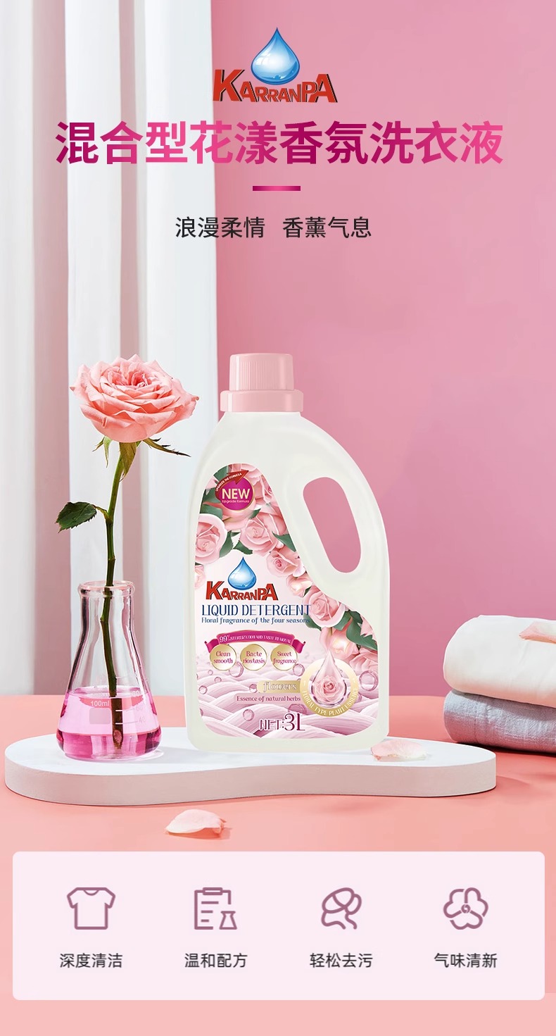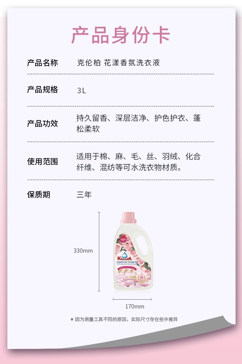 【家庭装3L大瓶装】丹麦原装进口克伦柏KARRANPA百花香薰花漾香氛洗衣液/香水香薰彩漂护色洗衣液3L/瓶 【中欧班列精选】RT