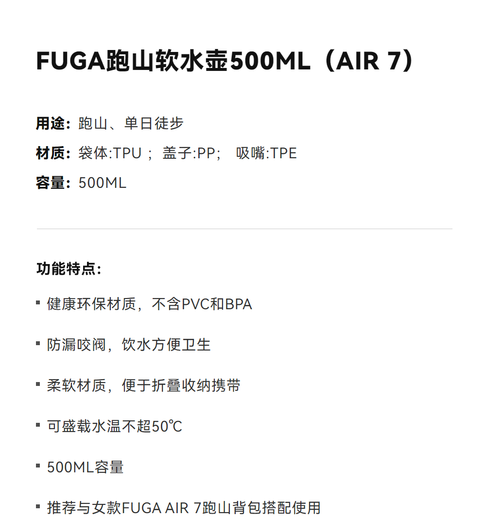KAILAS凯乐石 FUGA跑山软水壶500ML(AIR 7)KD2603109