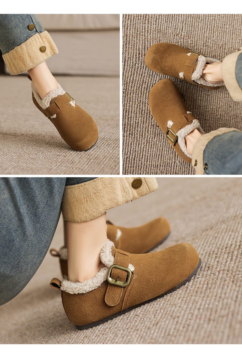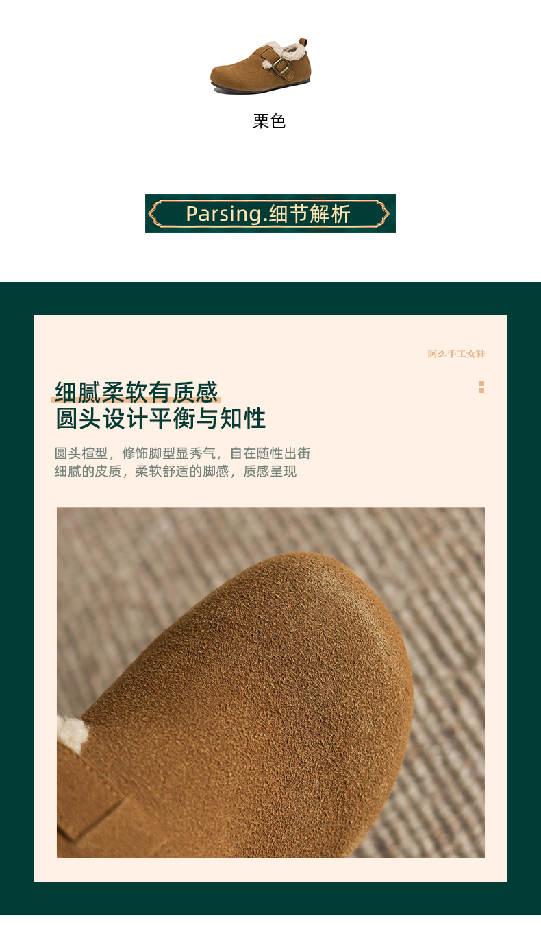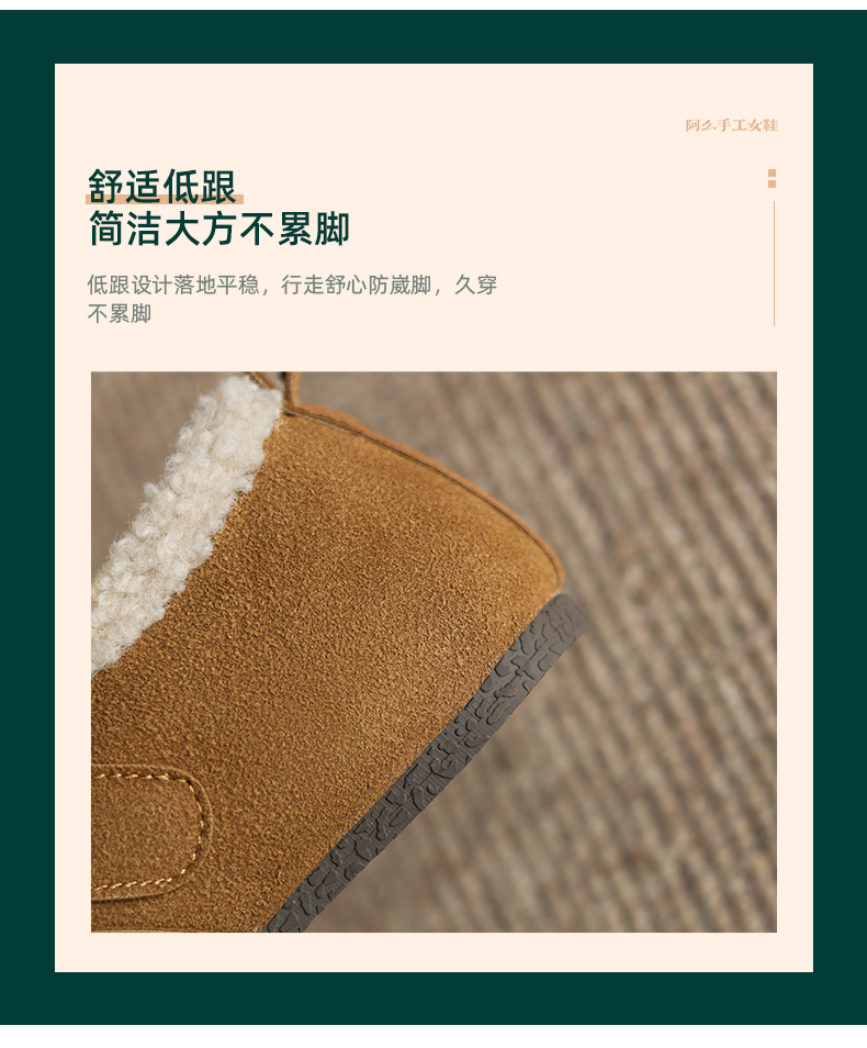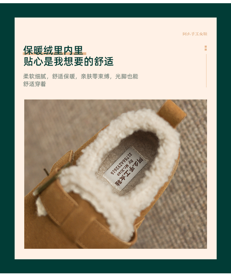 阿么手工女鞋保暖全包勃肯鞋女新款加绒休闲风软底冬季棉鞋女2CM