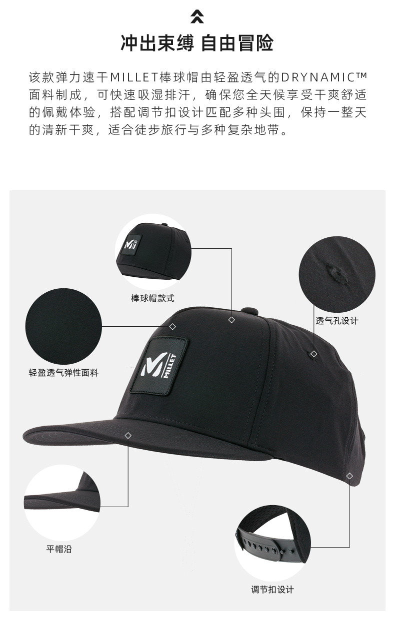 13【觅乐抄底】MILLET觅乐DRYNAMIC速干透气棒球帽 (tbzg)