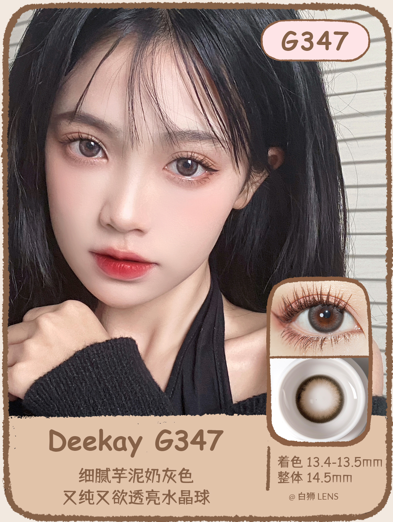 Deekay旗下 · G346高光拿铁 · G347高光奶芋灰 |韩国进口年抛 | 14.5mm实际效果中等直径