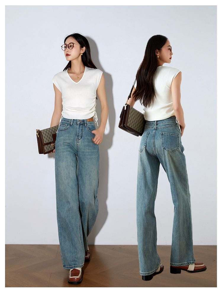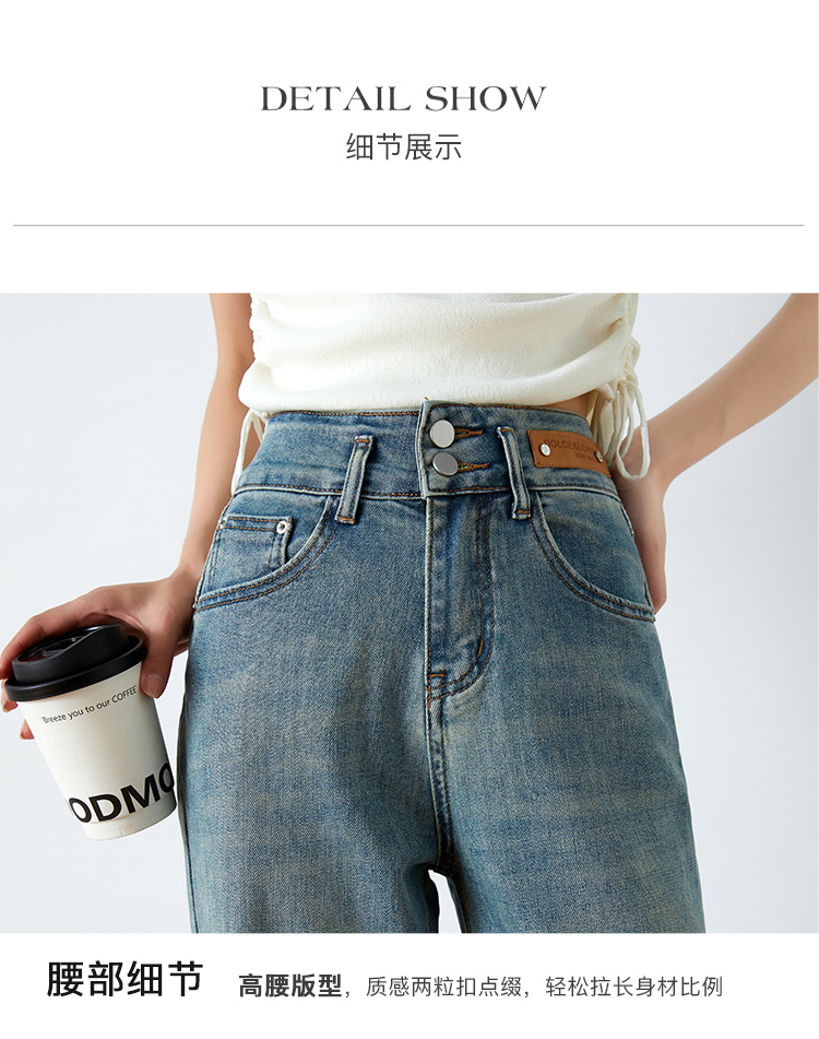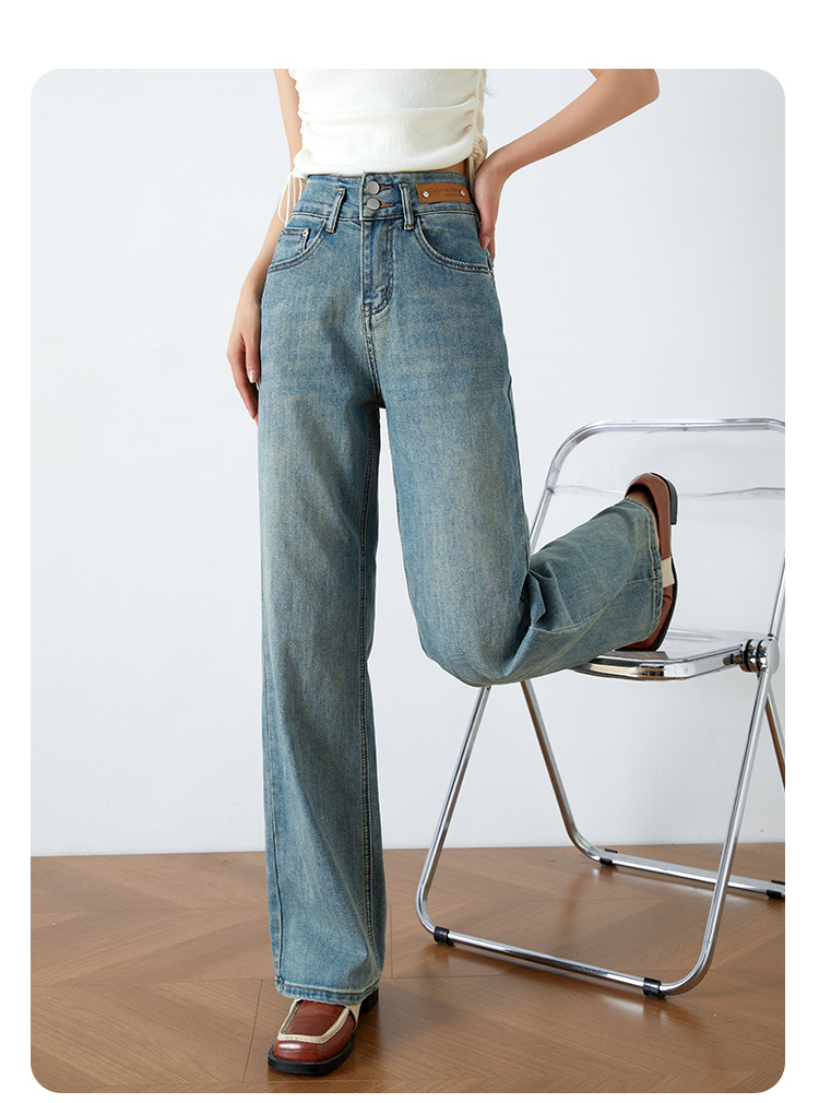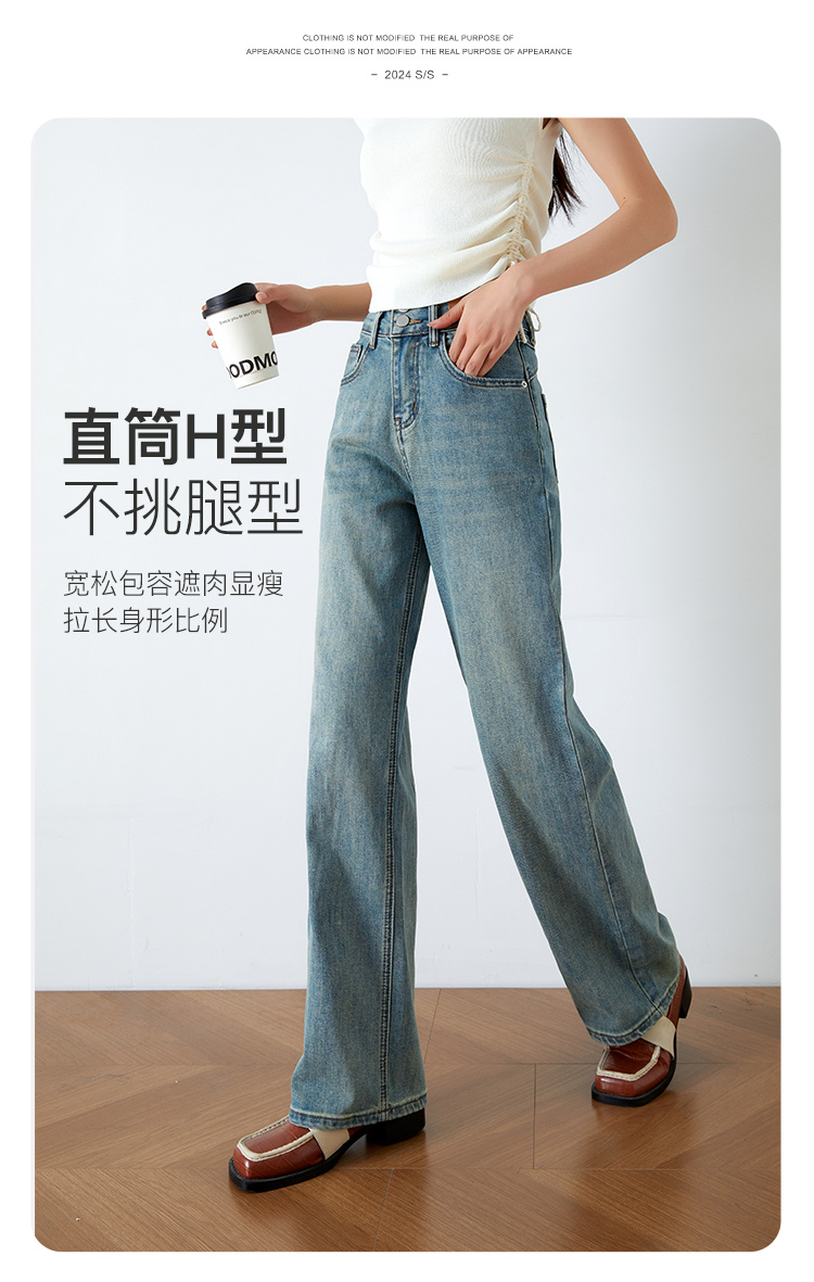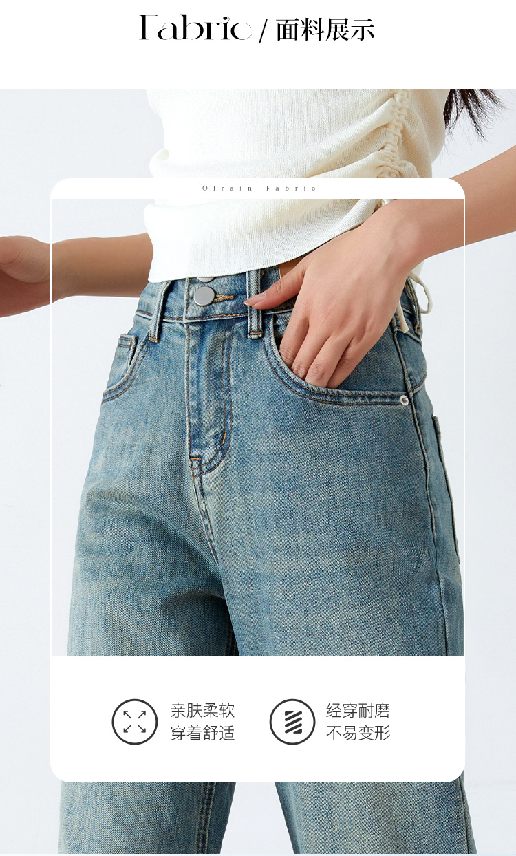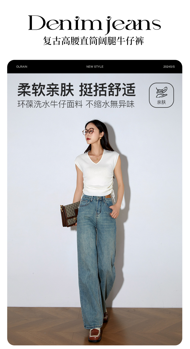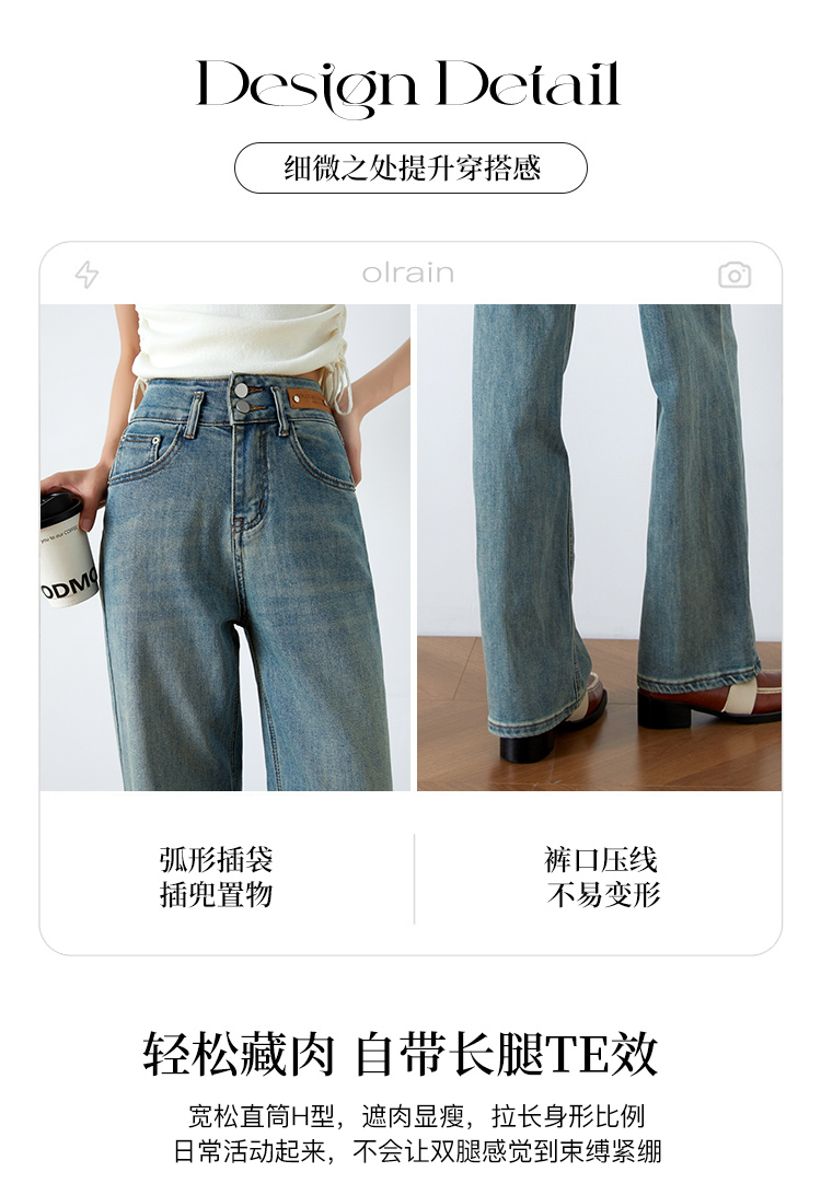 OLrain欧芮儿高腰牛仔裤女春季2026年新款复古百搭直筒阔腿裤