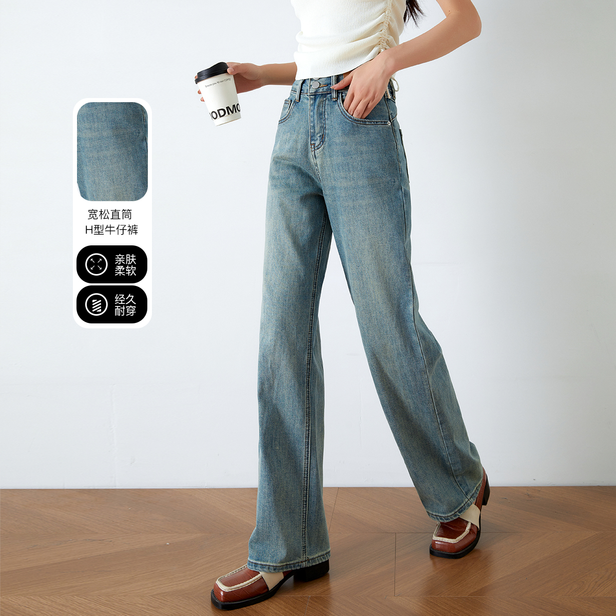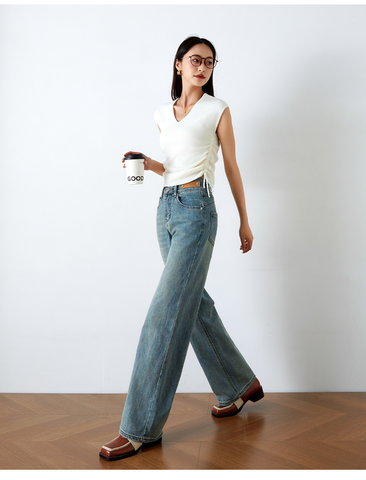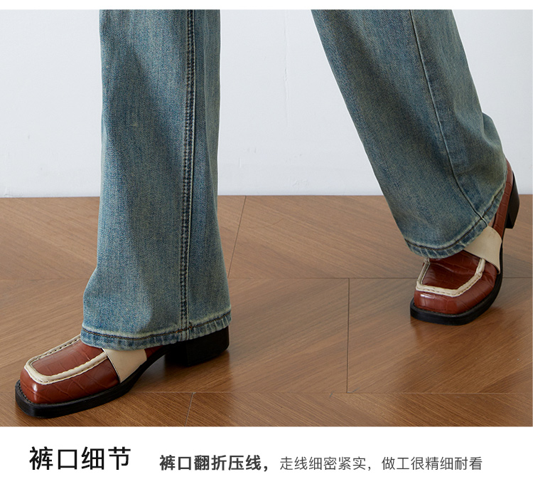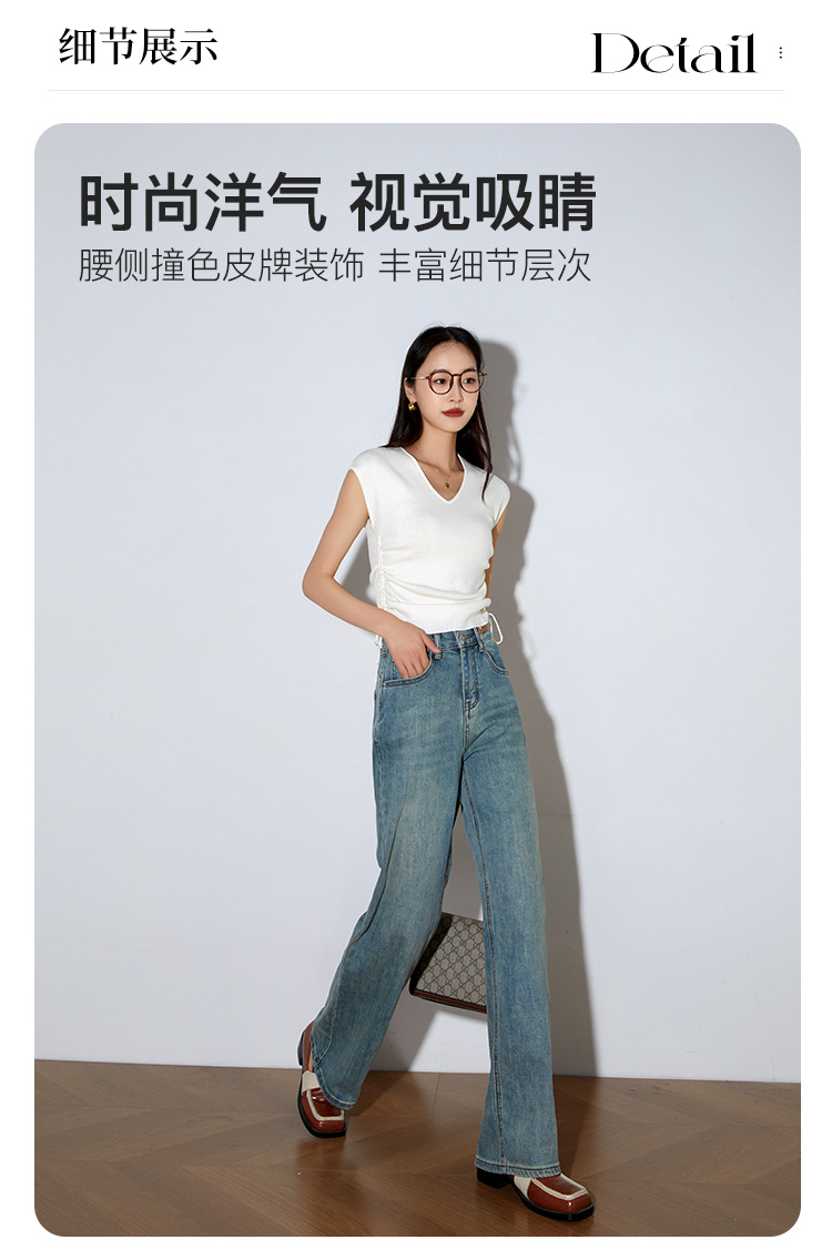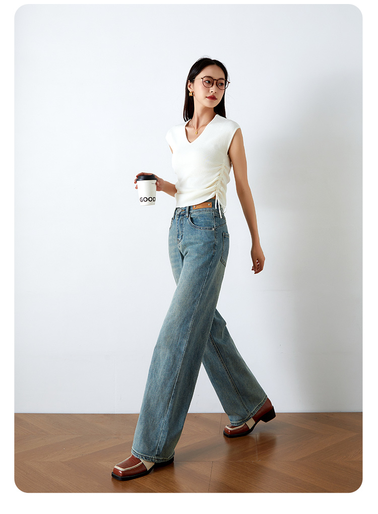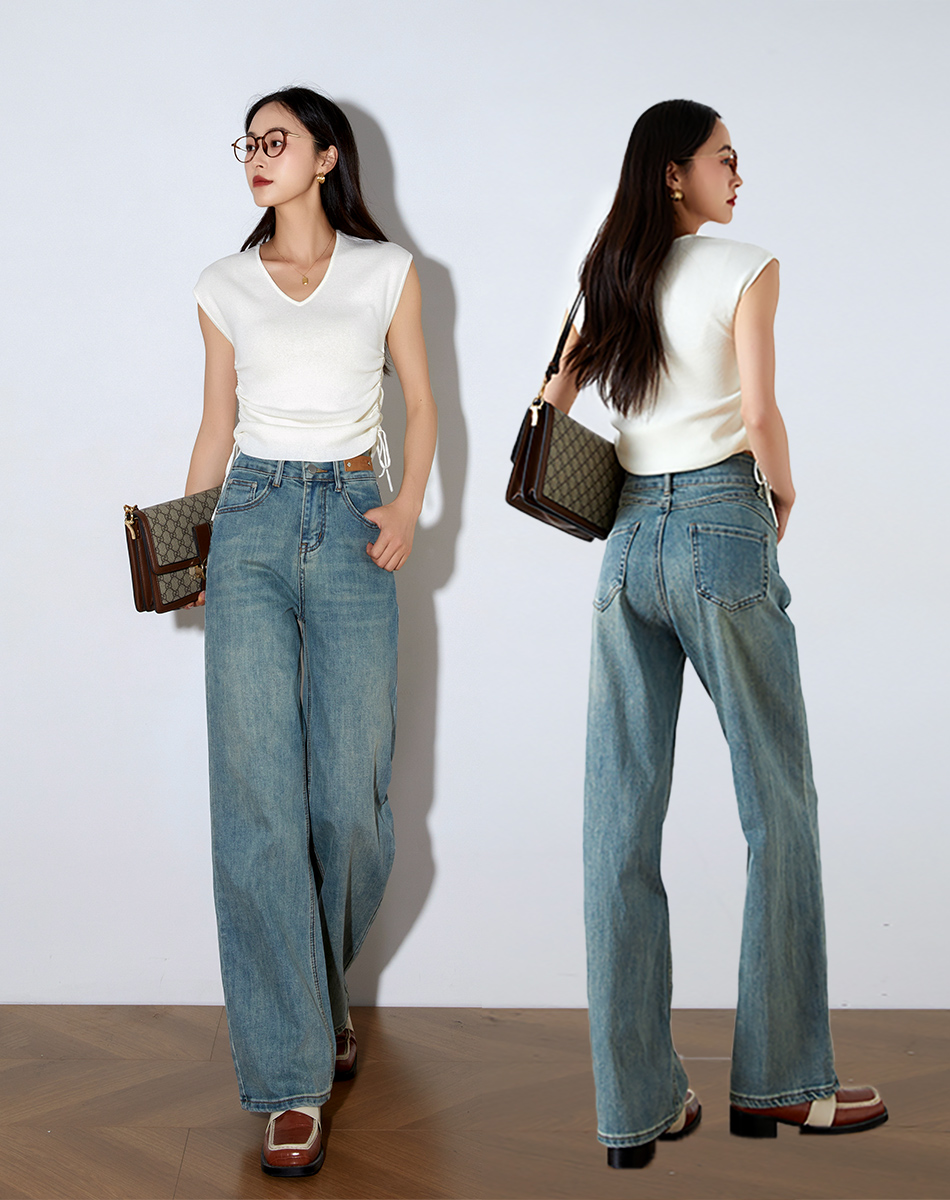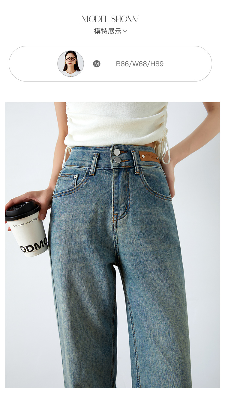 OLrain欧芮儿高腰牛仔裤女春季2026年新款复古百搭直筒阔腿裤