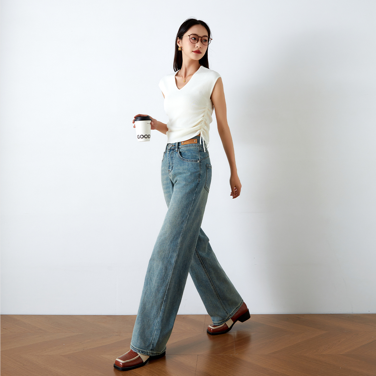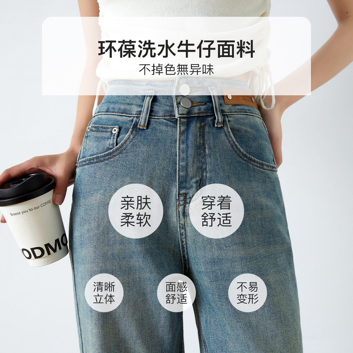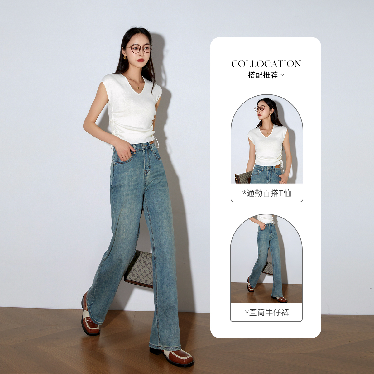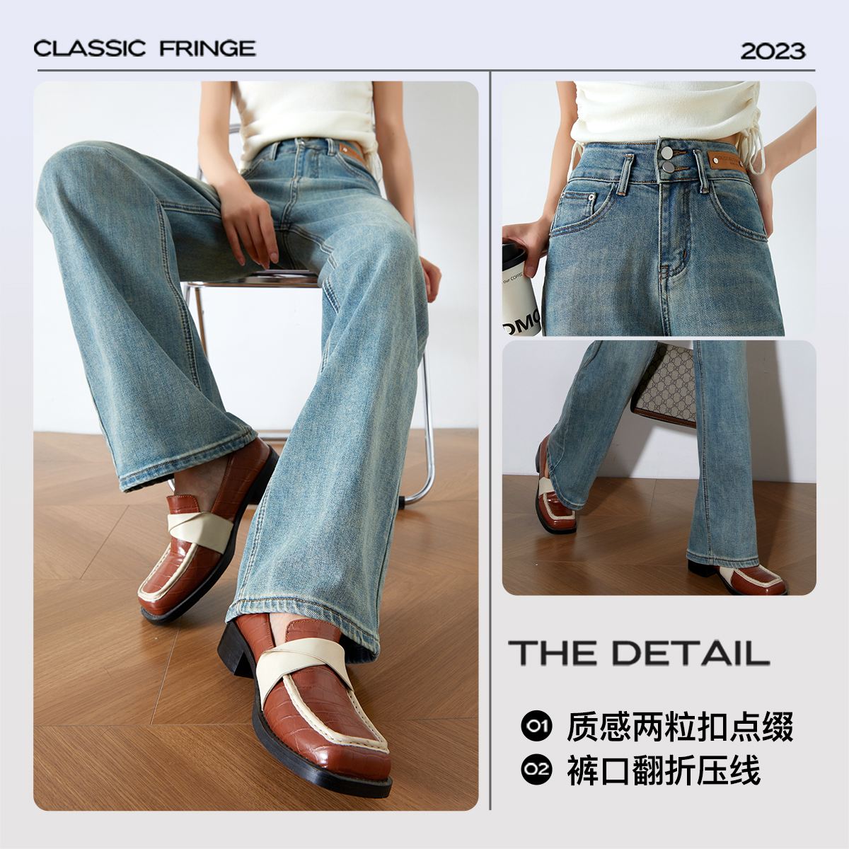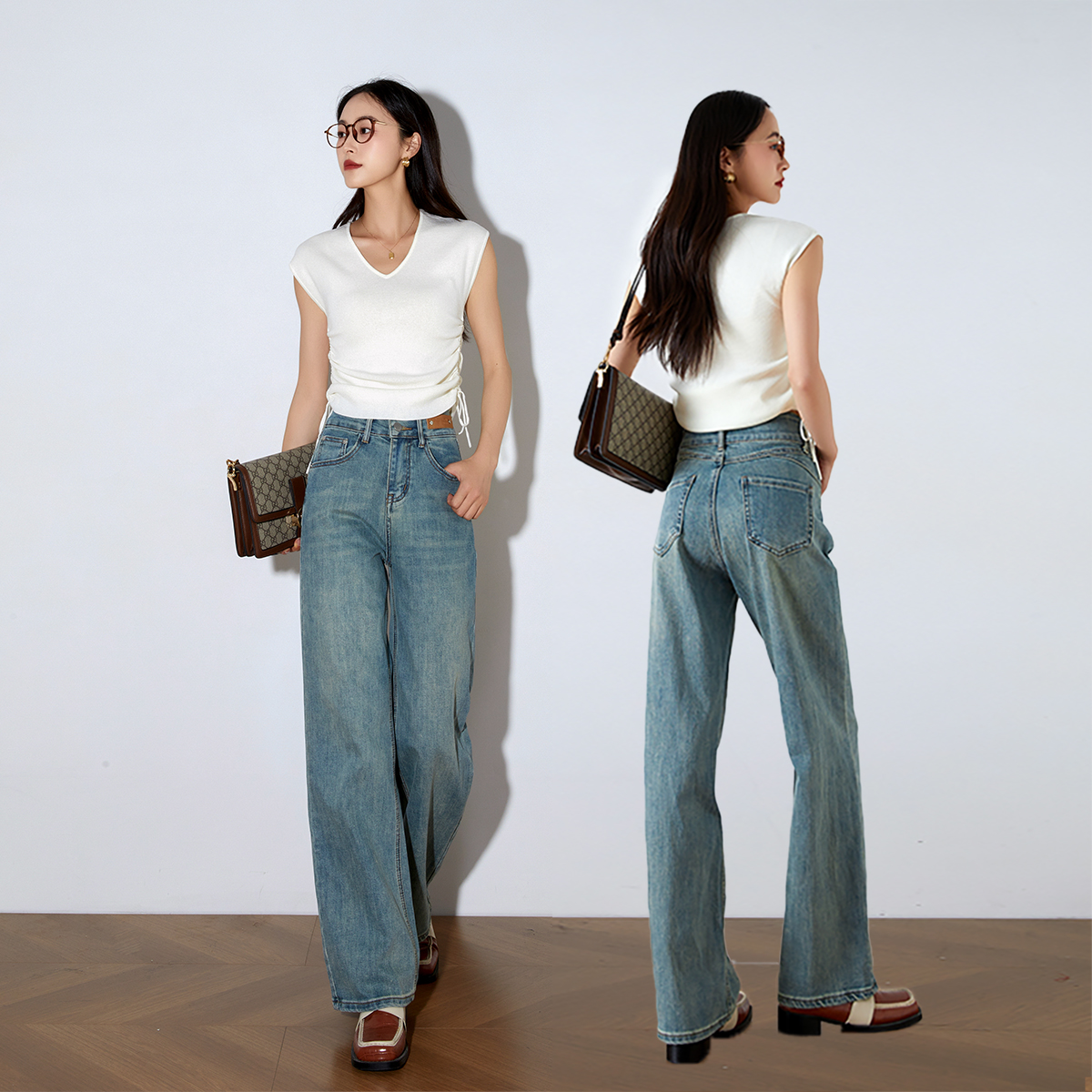 OLrain欧芮儿高腰牛仔裤女春季2026年新款复古百搭直筒阔腿裤