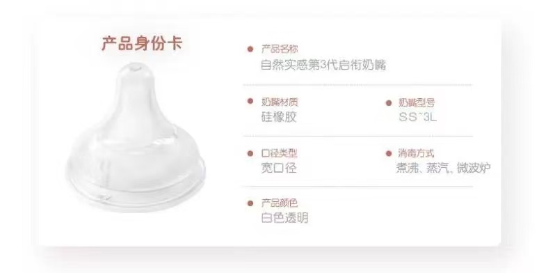 贝亲自然实感Ⅲ宽口径启衔奶嘴ss-3L号一只装