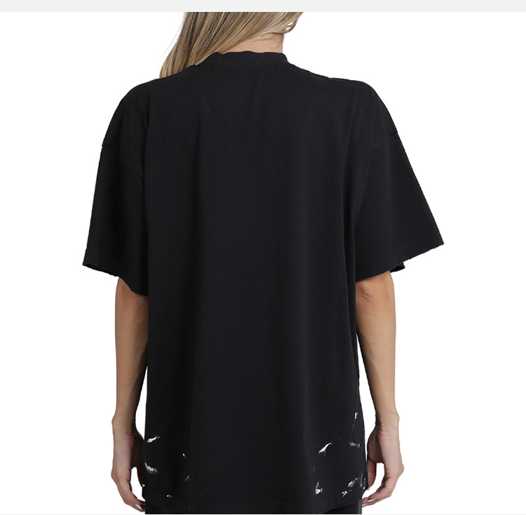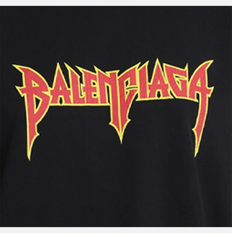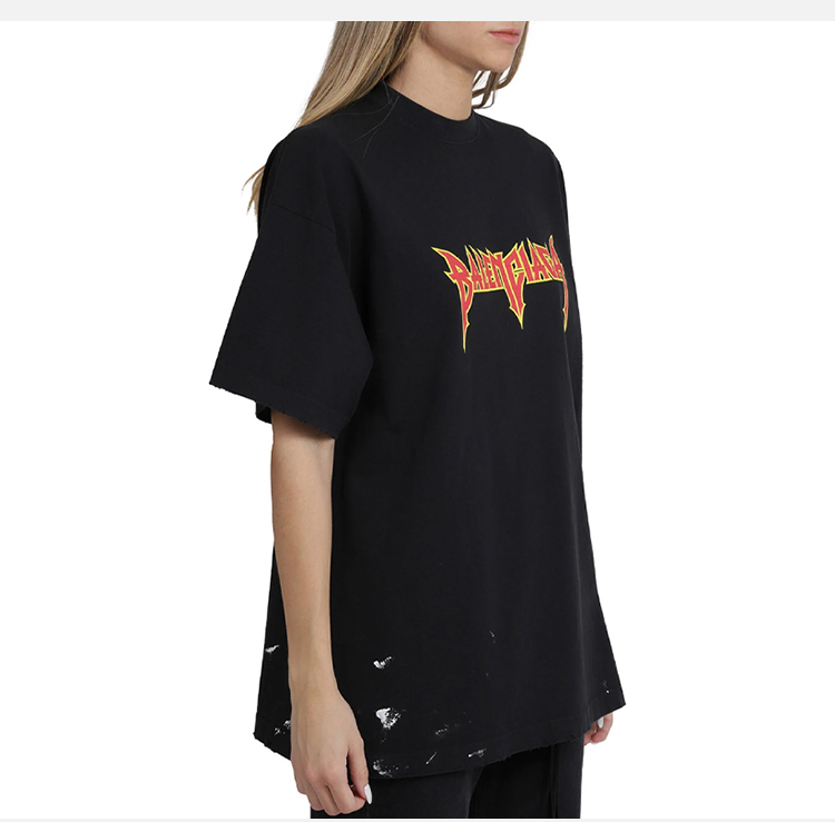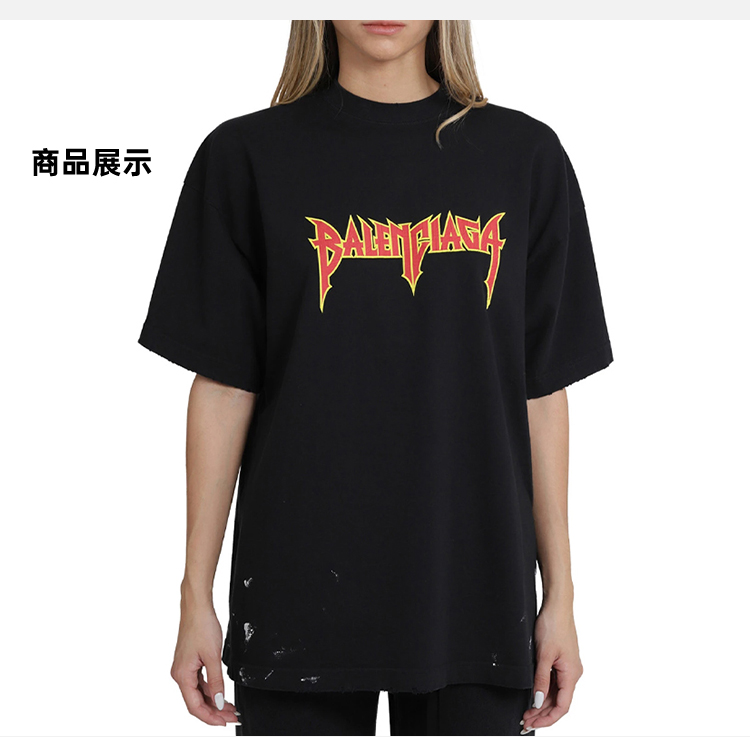 BALENCIAGA 巴黎世家 女士棉质字母徽标印花复古针织大廓形金属圆领短袖T恤 黑色 694576 TMV88 0105