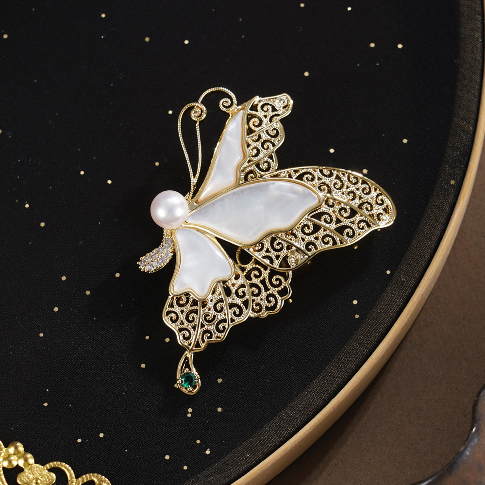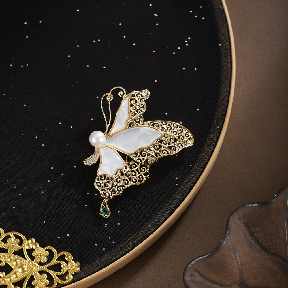 子佩集【蝶舞福临】珍珠惜王妃胸针【XXXZ275】镀金蝴蝶2602