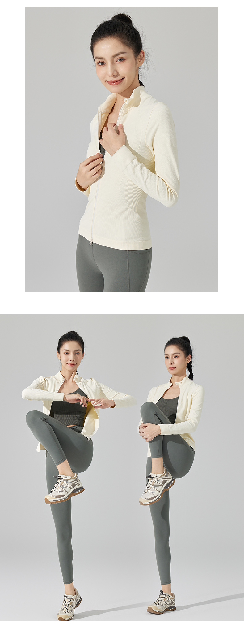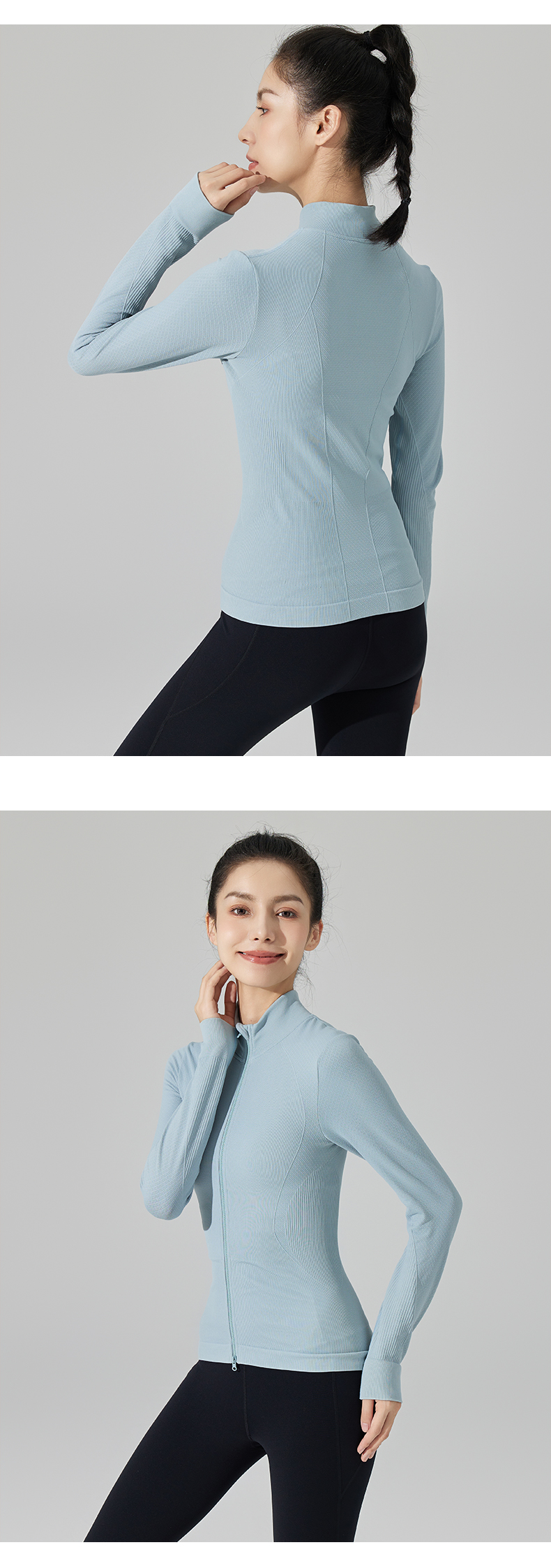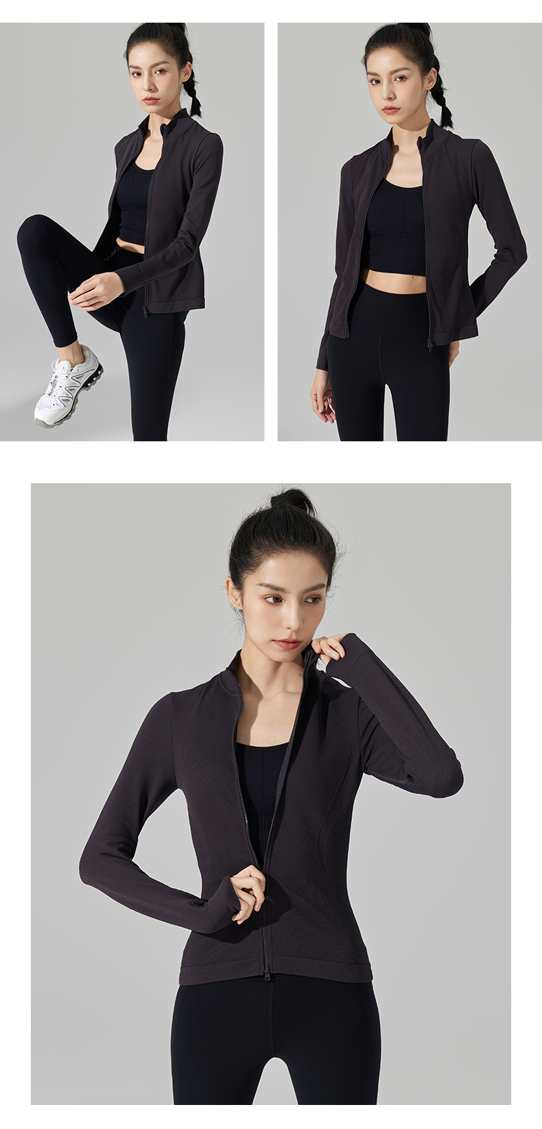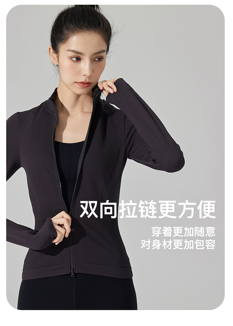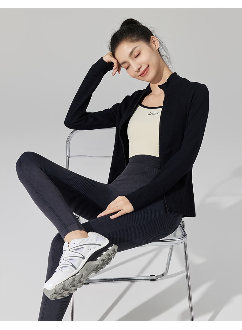 Leorrey/乐拉超柔弹修身户外休闲显瘦立领双拉链秋冬瑜伽运动外套