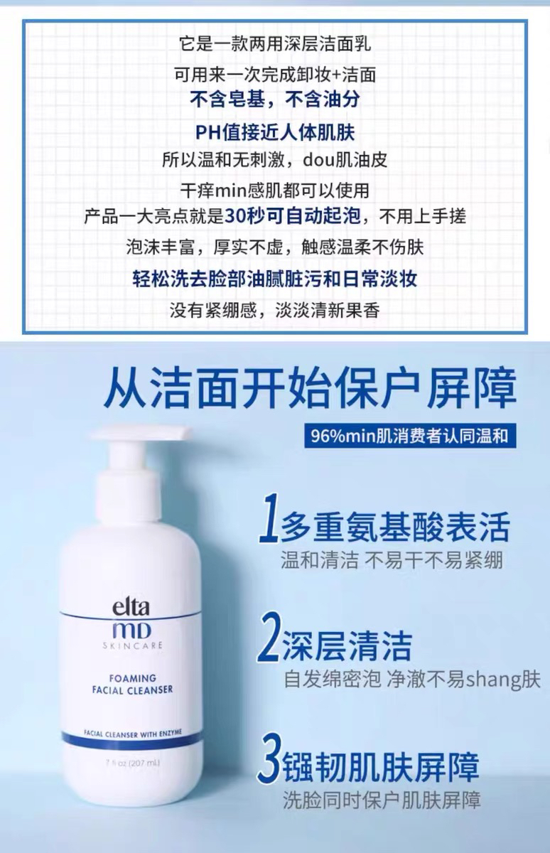 【海关监管保税直发】Elta MD美国安妍科氨基酸泡沫洁面乳207ml-敏感肌可用-会员5折
