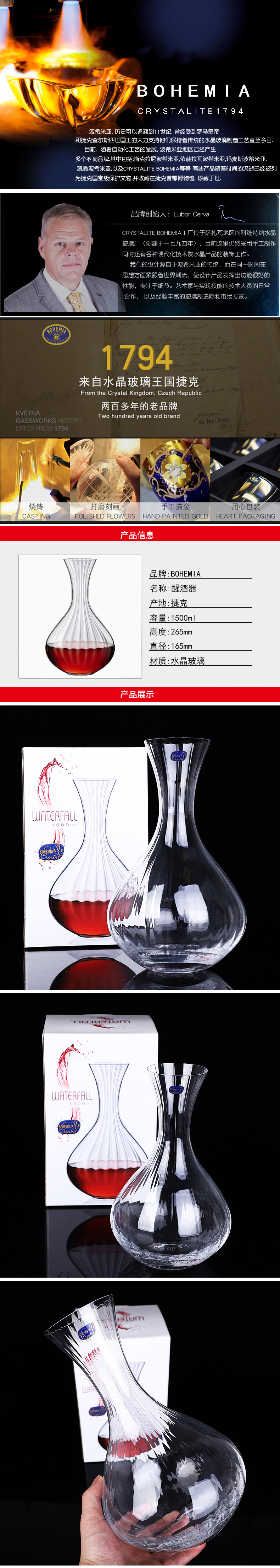 捷克进口BOHEMIA水晶玻璃红酒醒酒器棱镜不规则