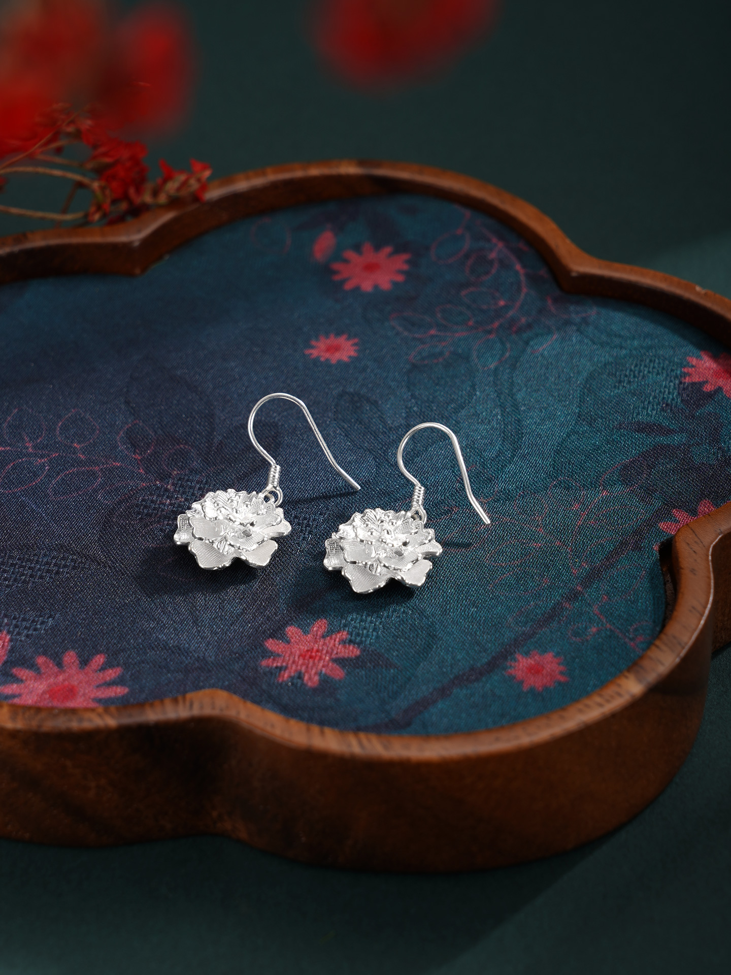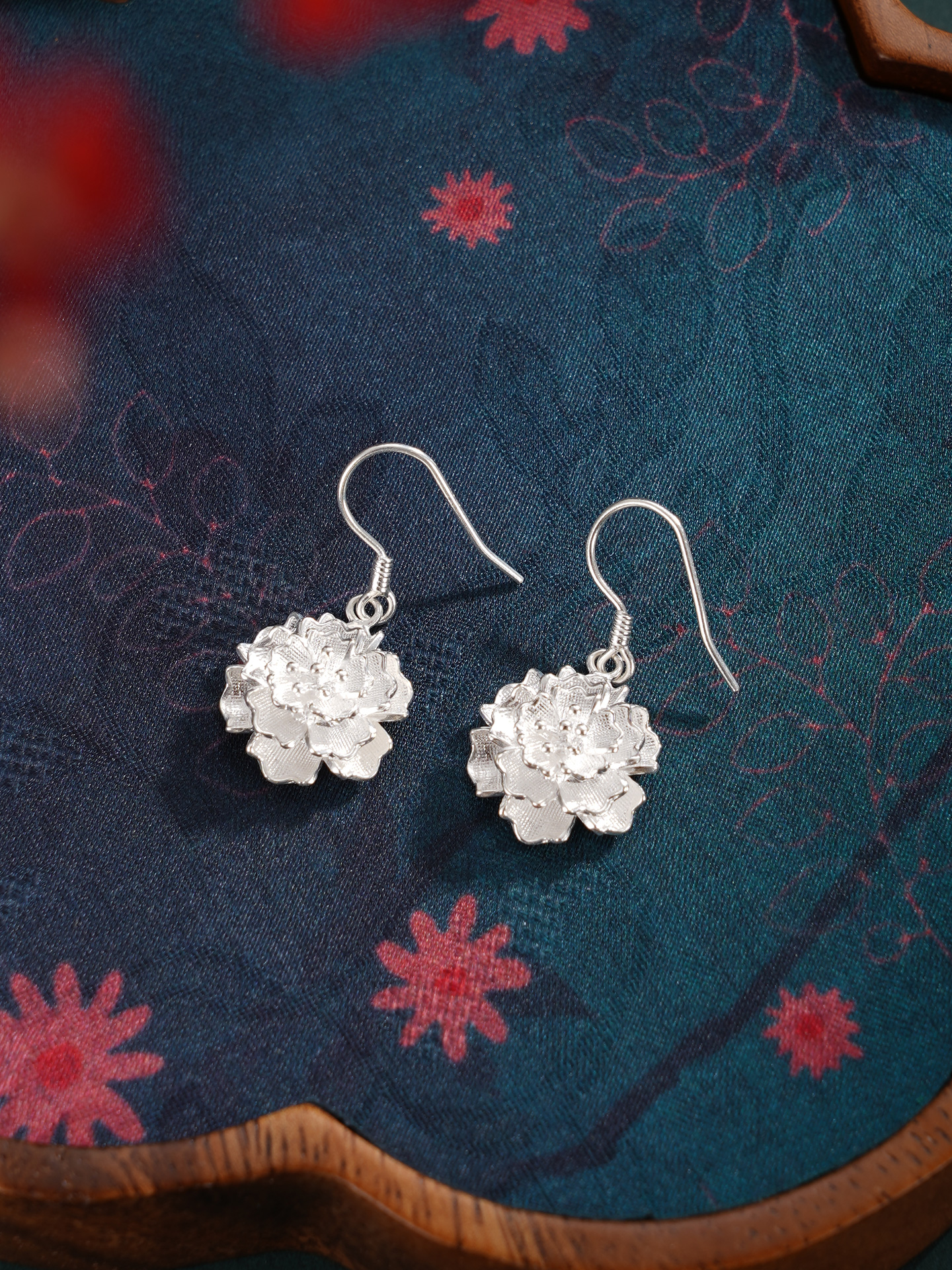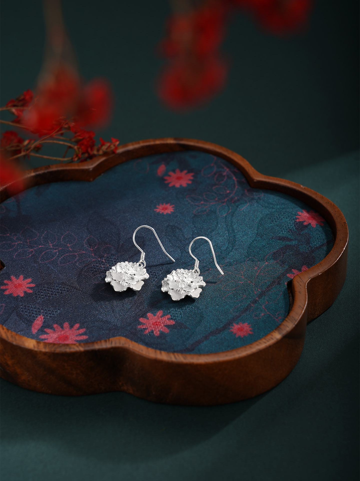 【寓意】:纯银花丝耳环,仿照花朵盛开的自然形态精妙编织。取名“花开静好”,寓意人生如花盛开,优雅从容,顺遂美好。