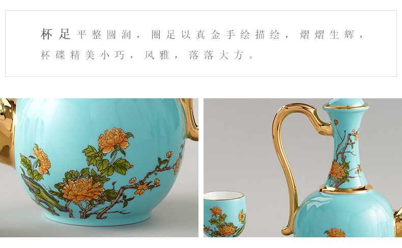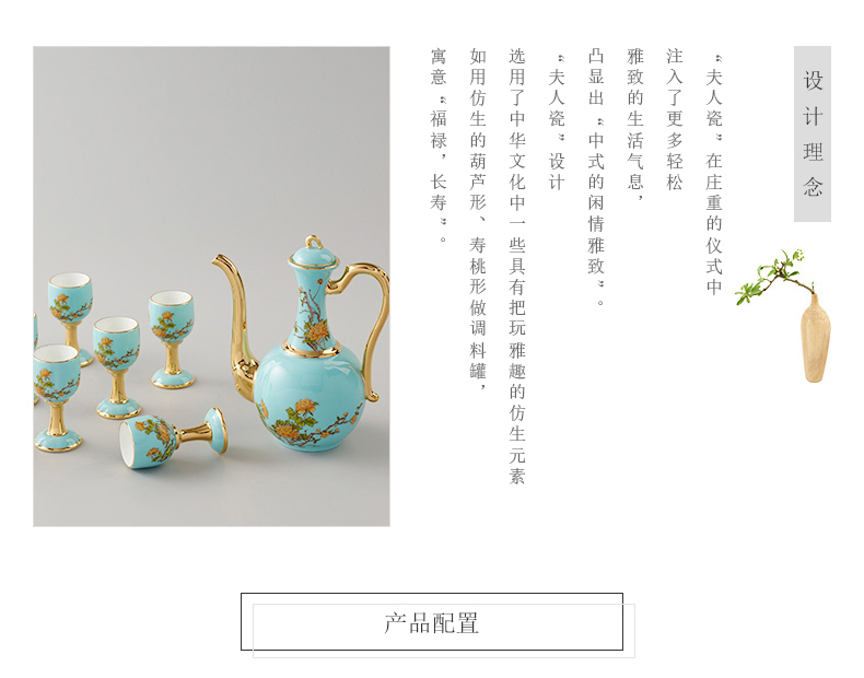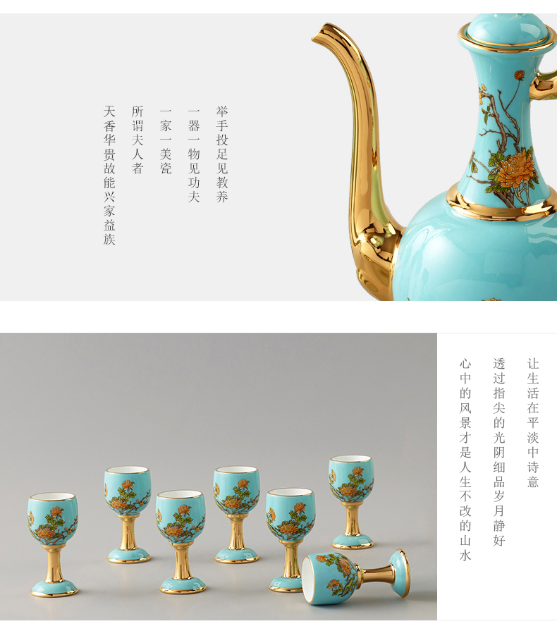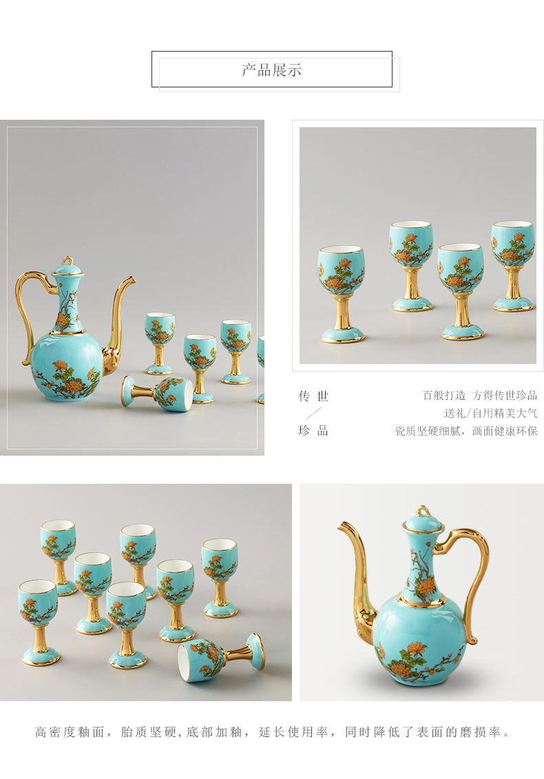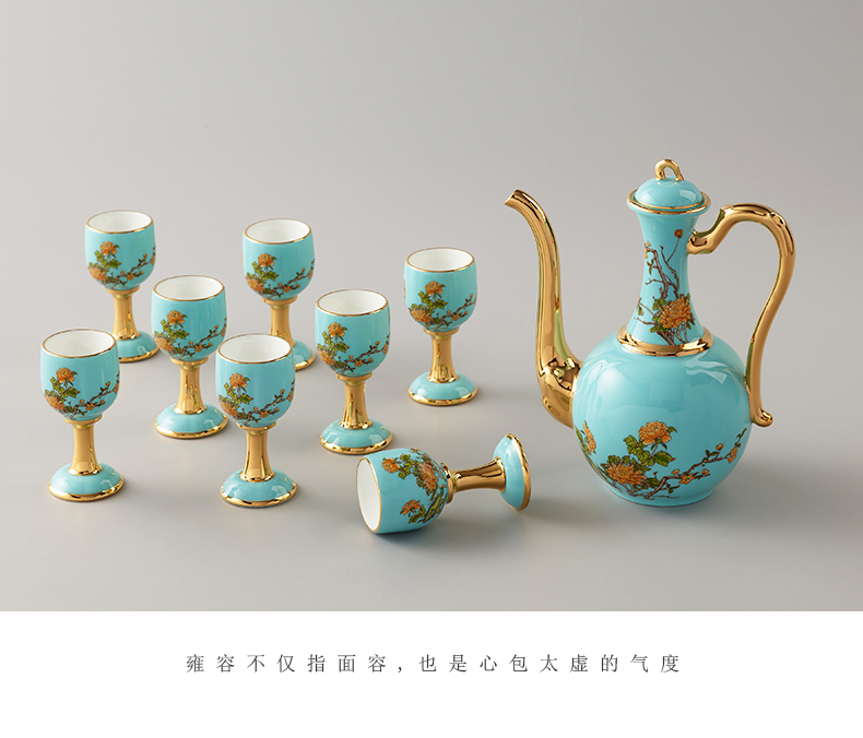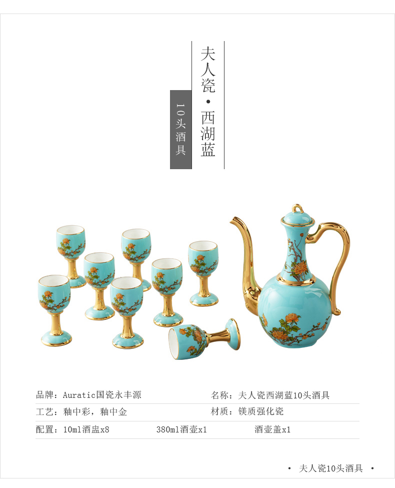 【国瓷·永丰源】夫人瓷西湖蓝10头陶瓷酒具 白酒杯酒壶家用中式套装