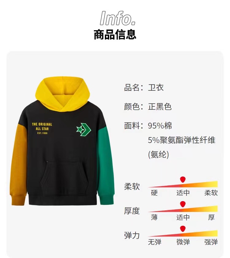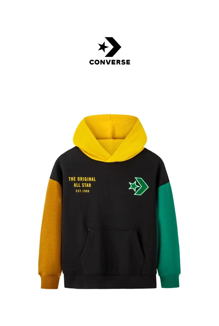 Converse匡威童衣童衣秋冬款拼色套头连帽卫衣加绒时尚百搭套头衫 CV2242064