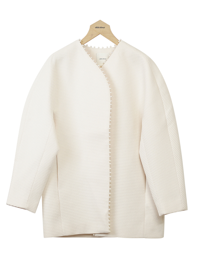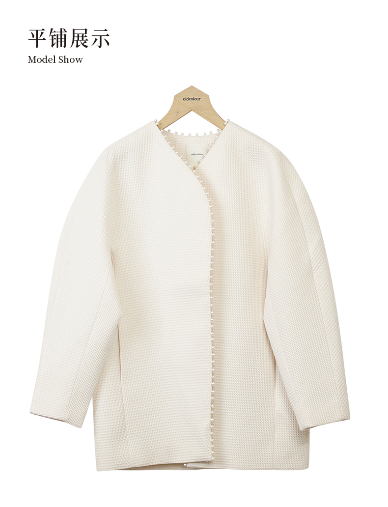 oldcolour白色简约外套冬季新款设计感V领时尚上衣女O43042162
