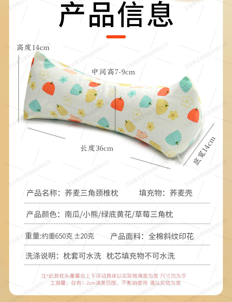【纯荞麦三角颈椎枕】家用睡枕护颈枕 单人腰靠枕 全棉荞麦枕头