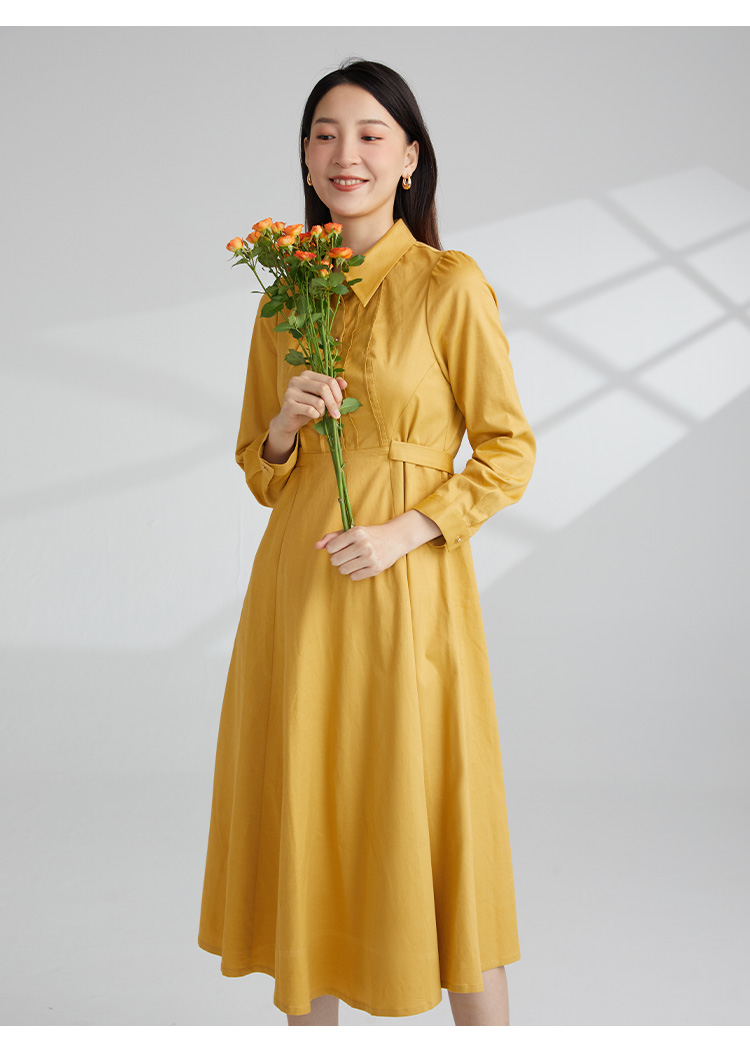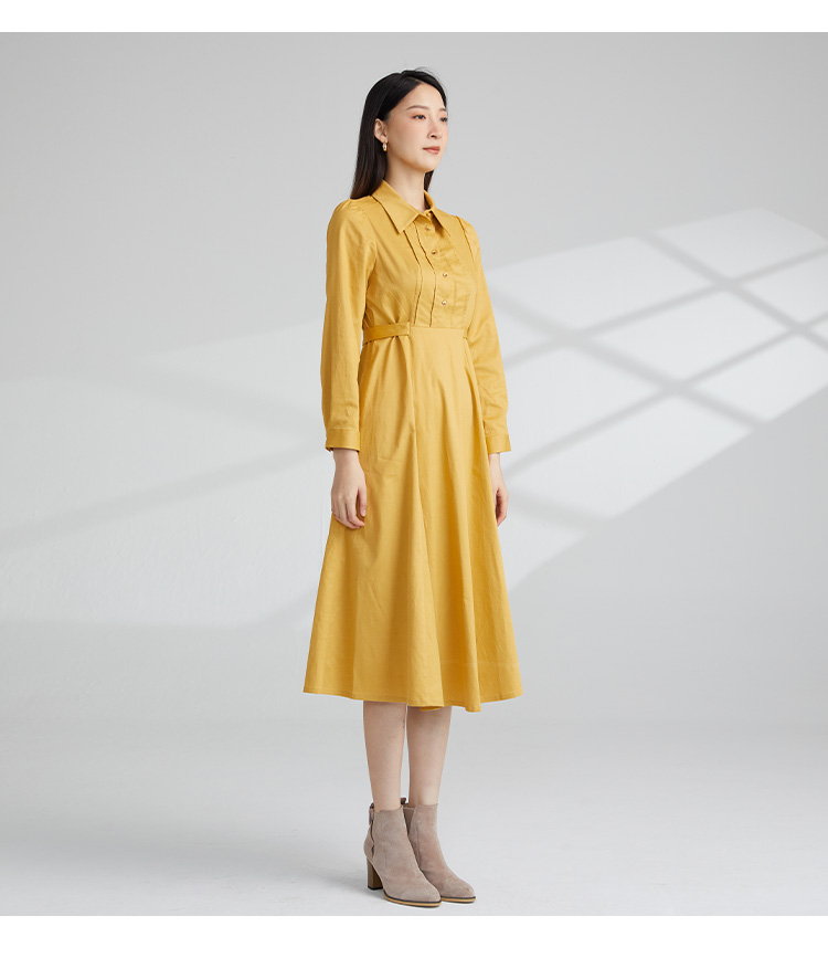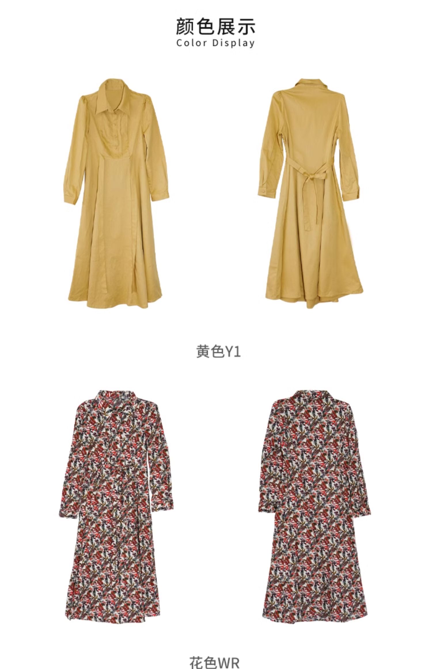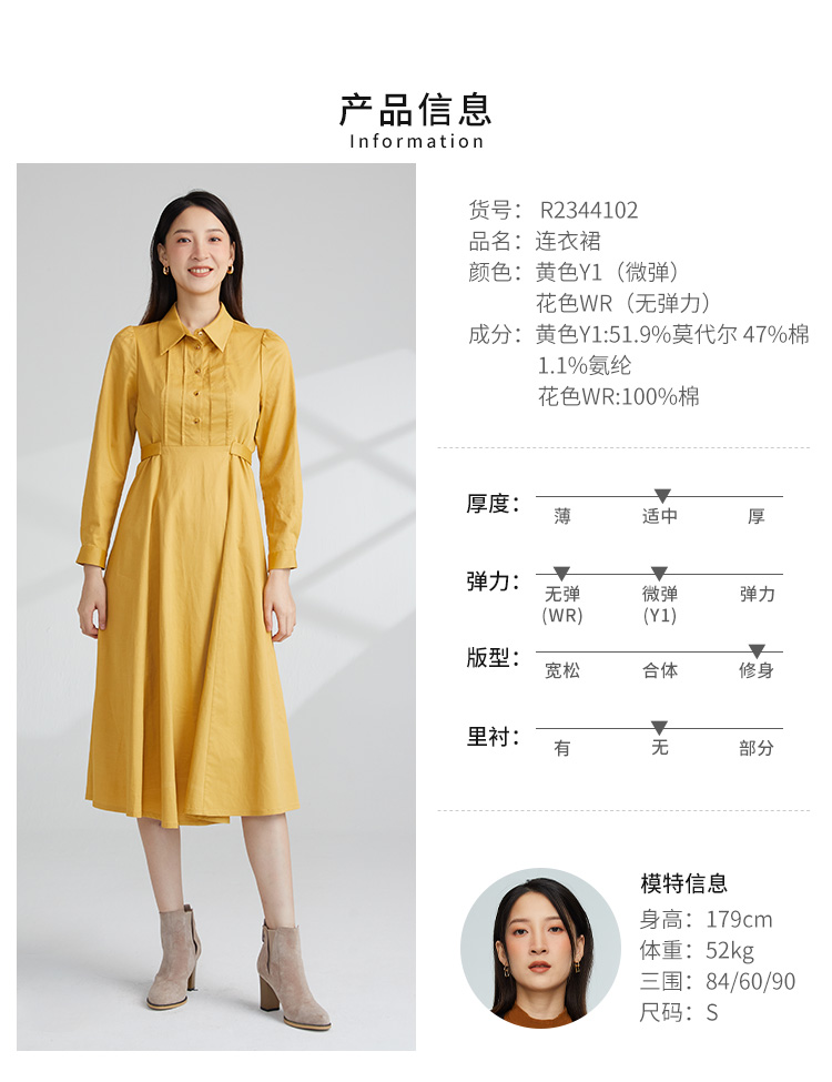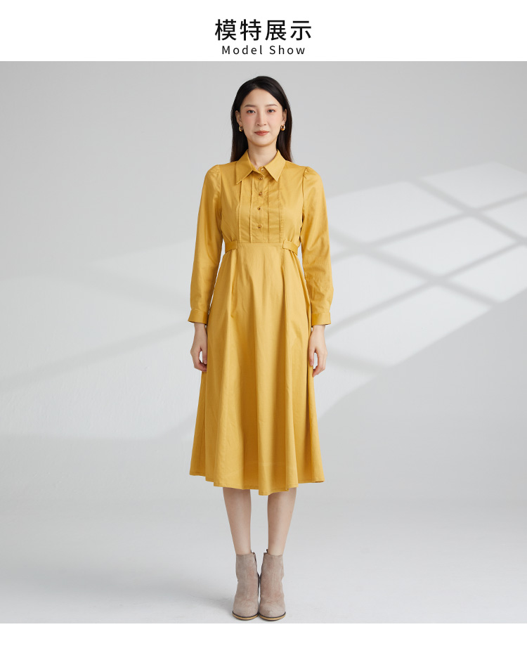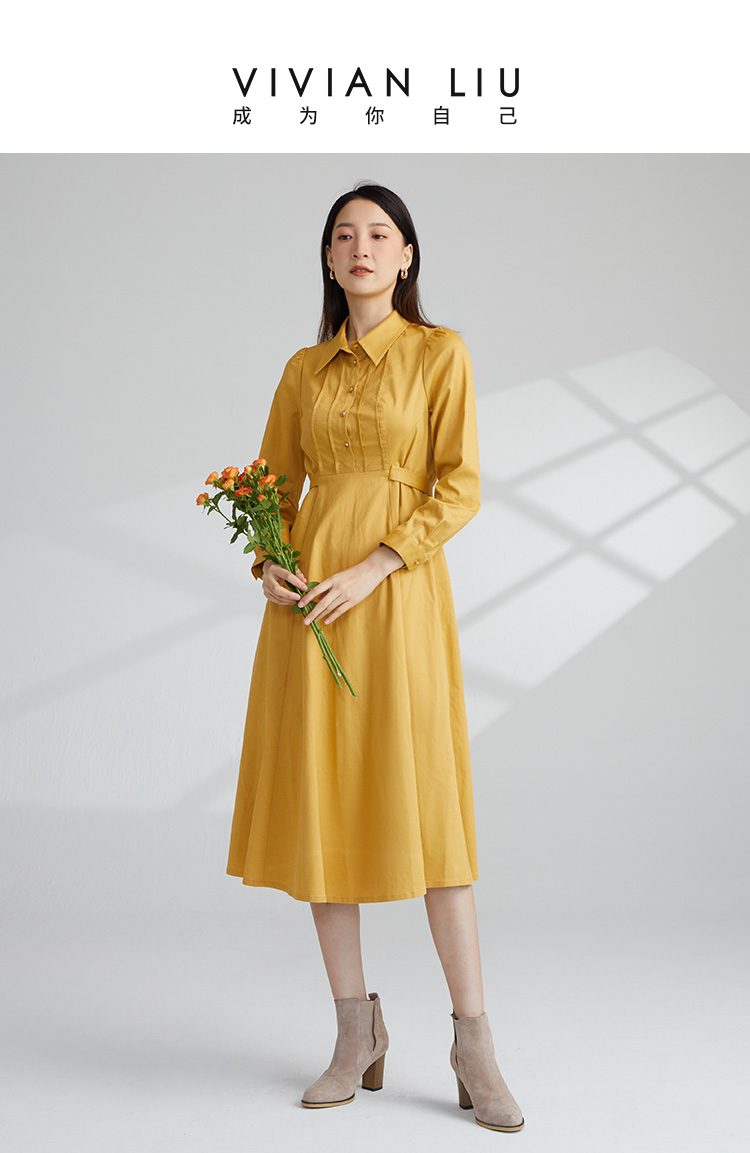 VIVIAN LIU薇薇安刘R2344102秋女装新款小翻领前胸捏褶衬衫连衣裙