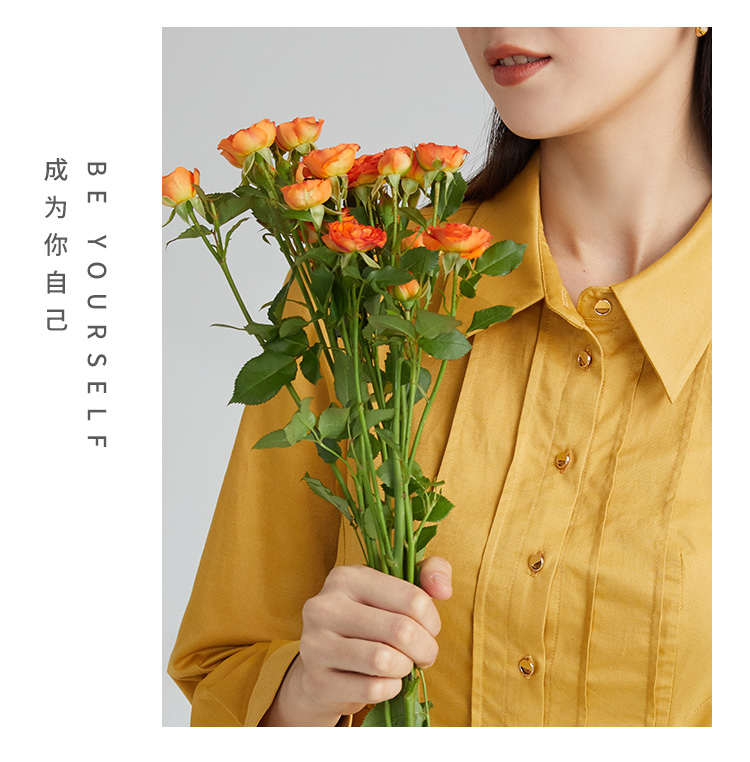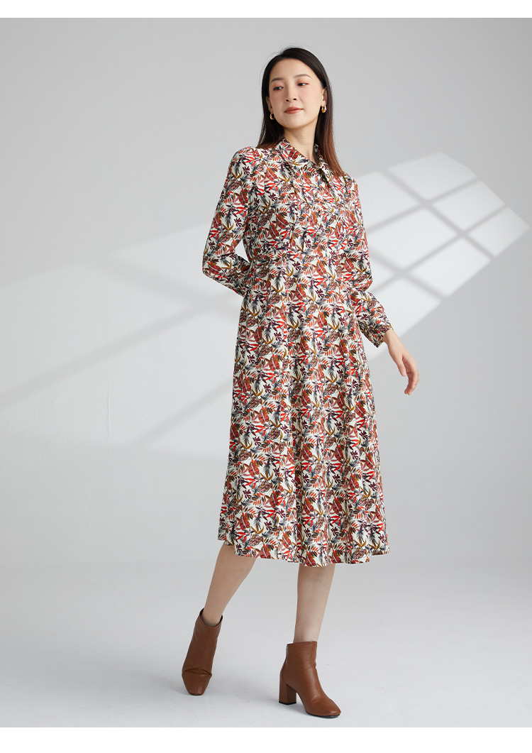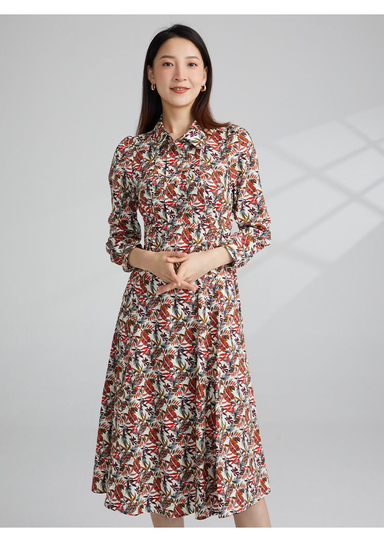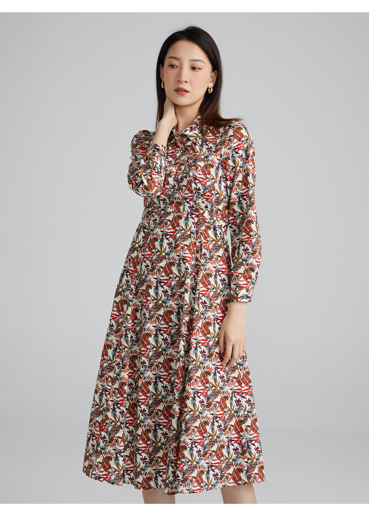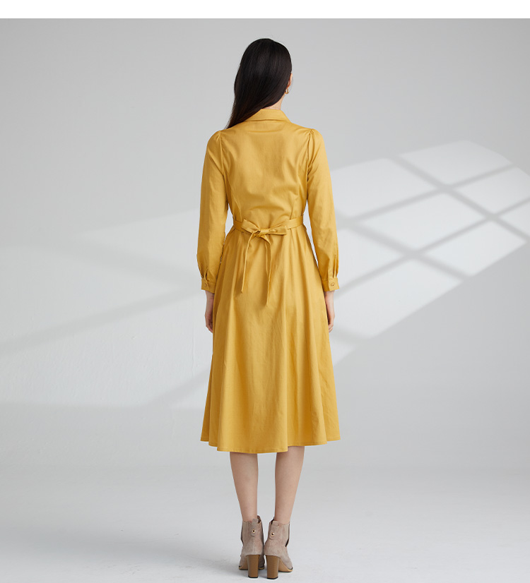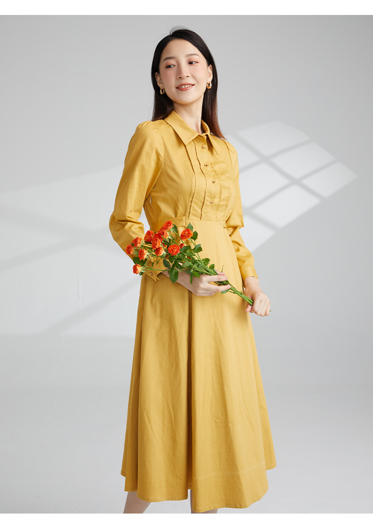 VIVIAN LIU薇薇安刘R2344102秋女装新款小翻领前胸捏褶衬衫连衣裙