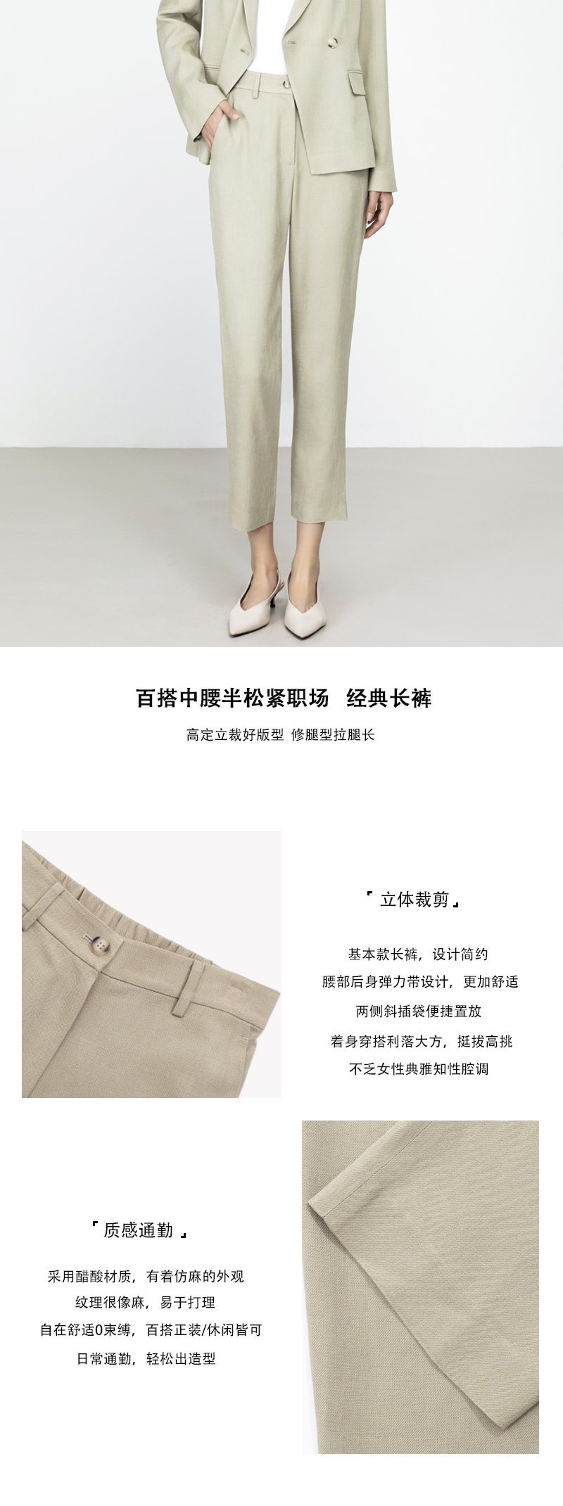 CARA BLUE中腰半松紧经典女裤