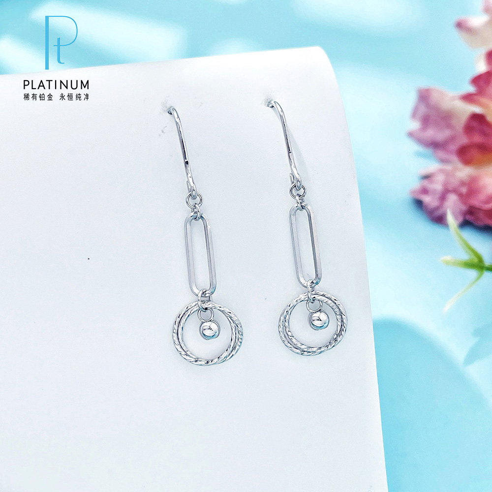 【限时8.8折】【线上铂金馆】PT950 【国际铂金协会 精品】铂金镂空绕线圆圈灵动耳饰耳吊耳钩(BES00259)(预售4-7天发货,一经下单不支持退款)