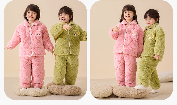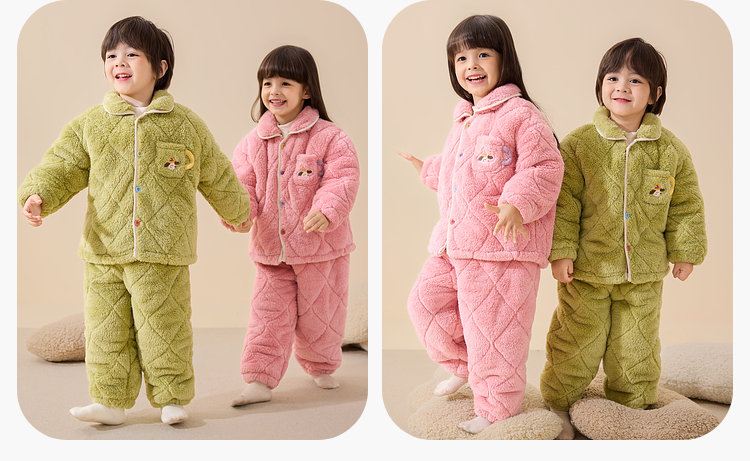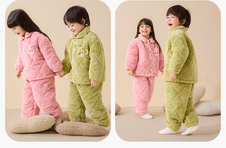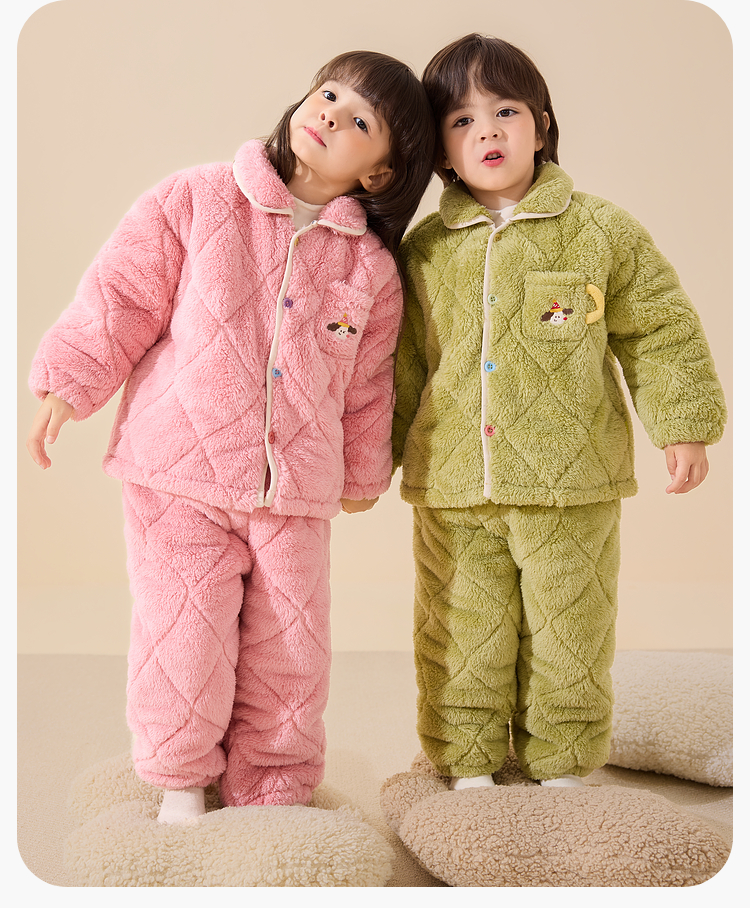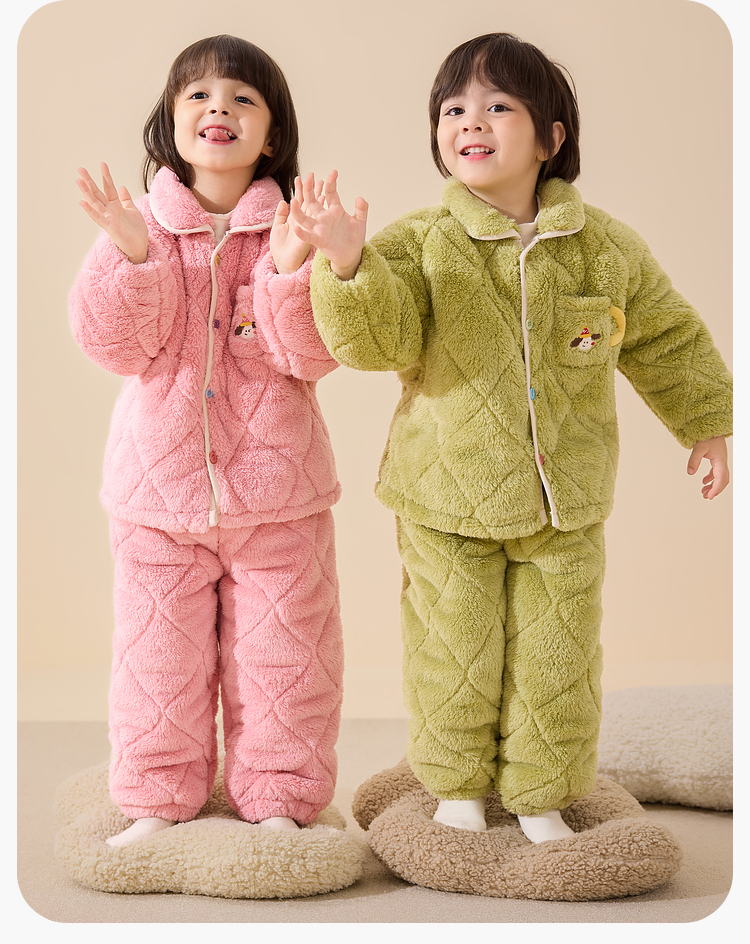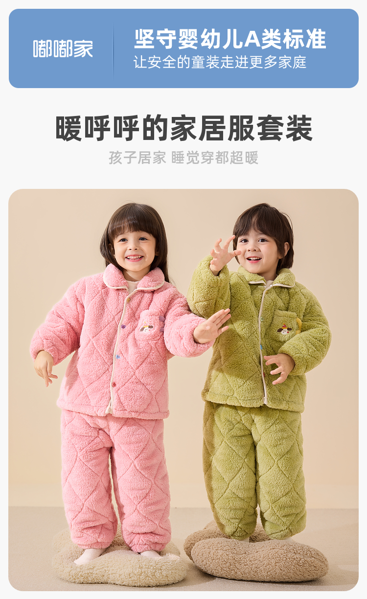 【清仓】【抗静电】嘟嘟家儿童家居服套装冬季男童分体式睡衣女童加绒保暖衣宝宝冬装