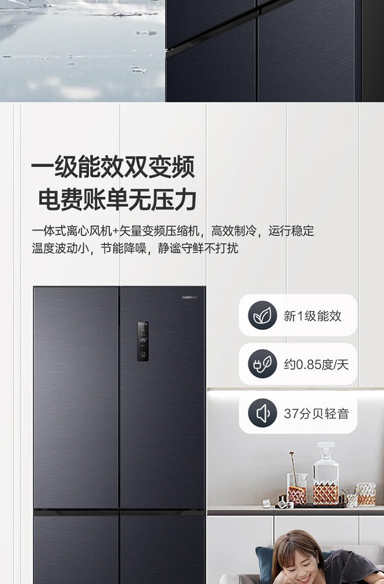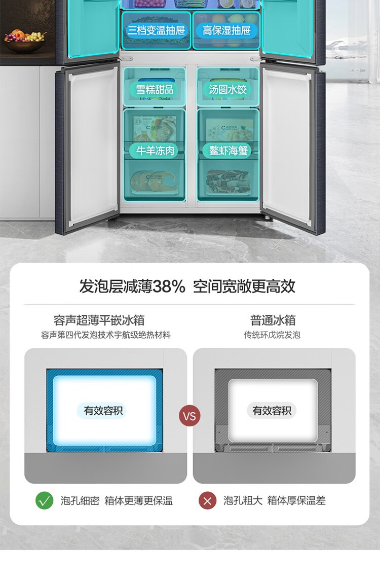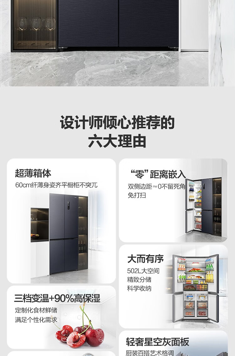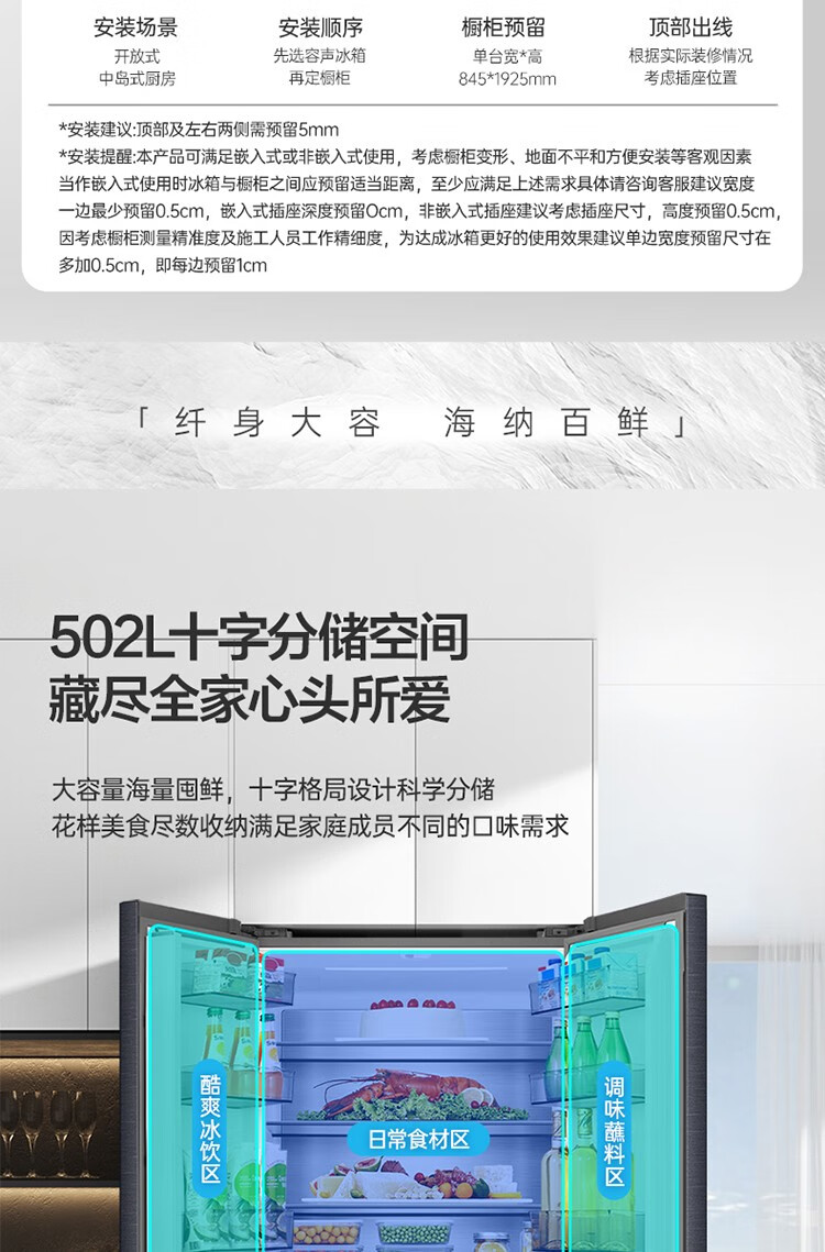 容声(Ronshen)502升十字四开门冰箱零嵌入式一级能效变频超薄风冷无霜大容量家用底部散热电冰箱 以旧换新 BCD-502WD1FPQ星空灰