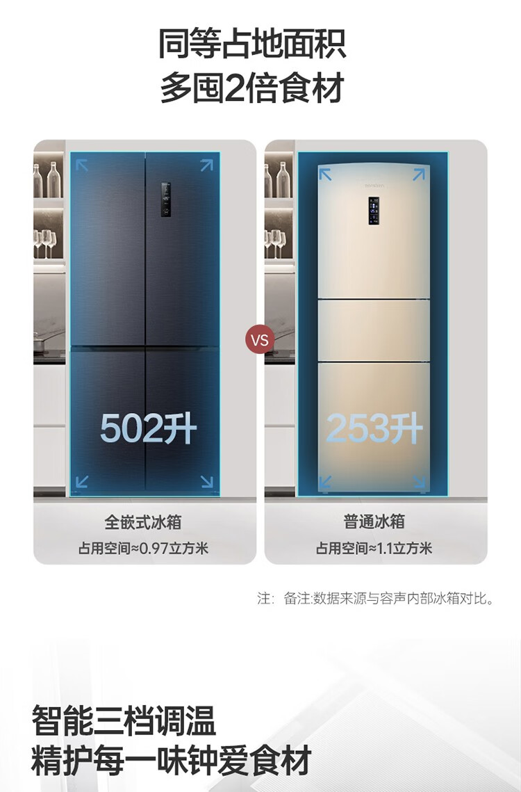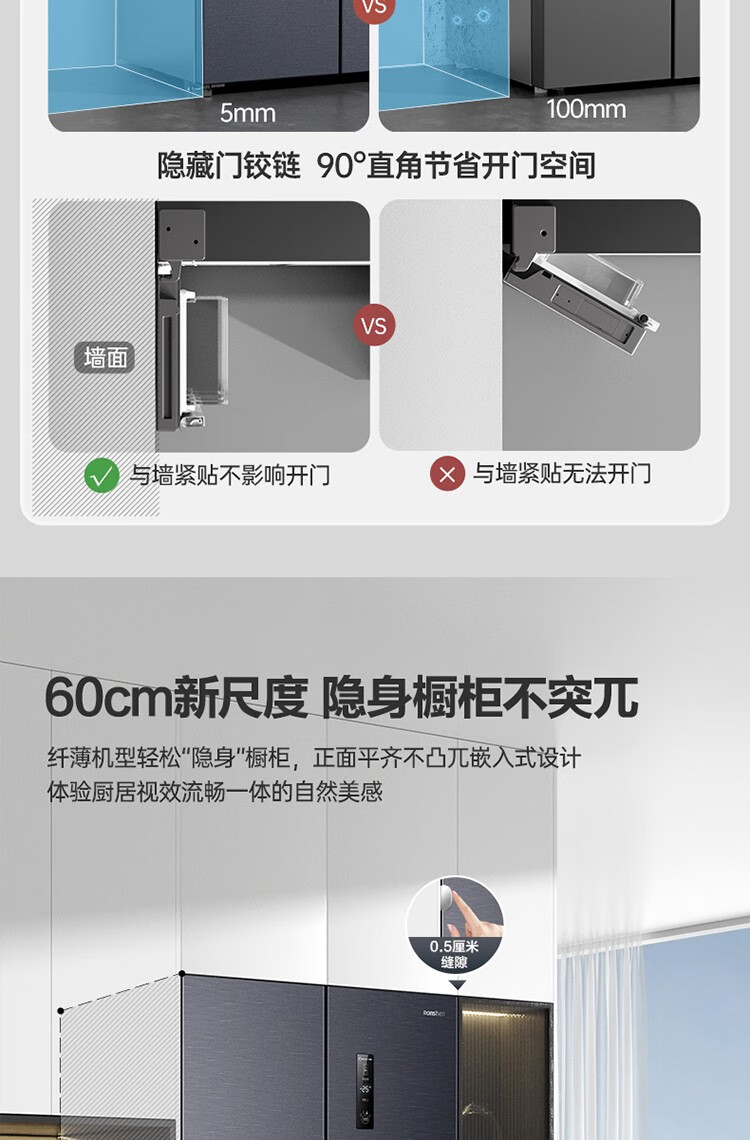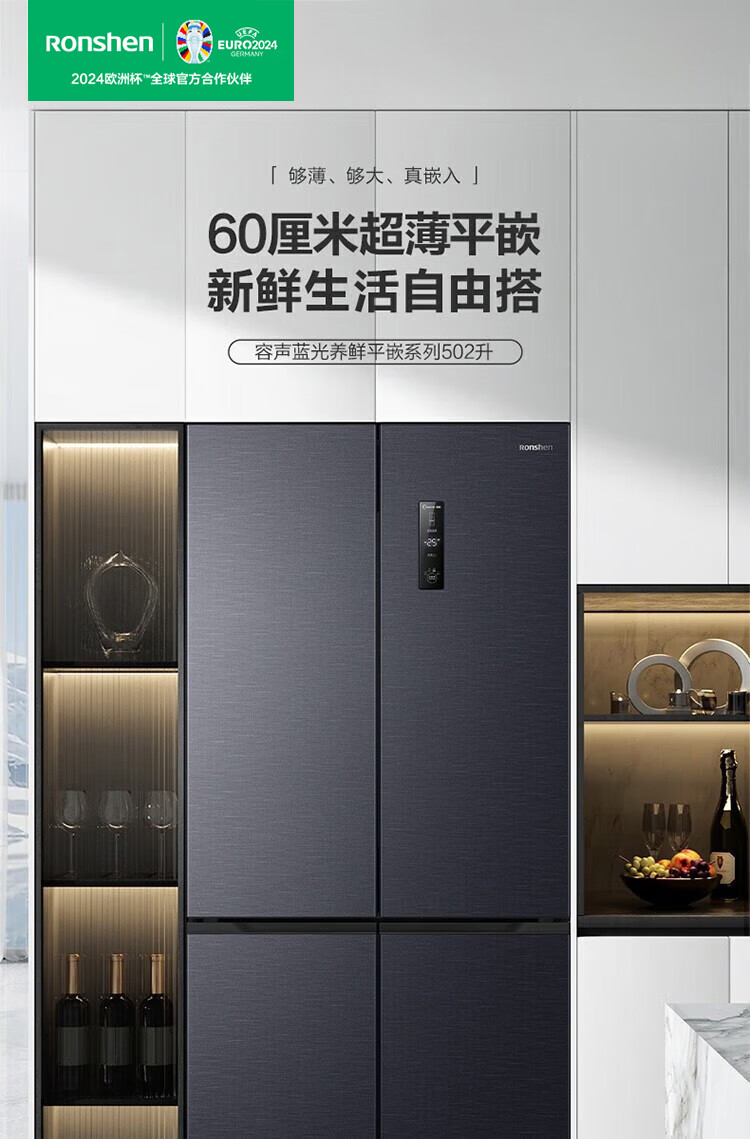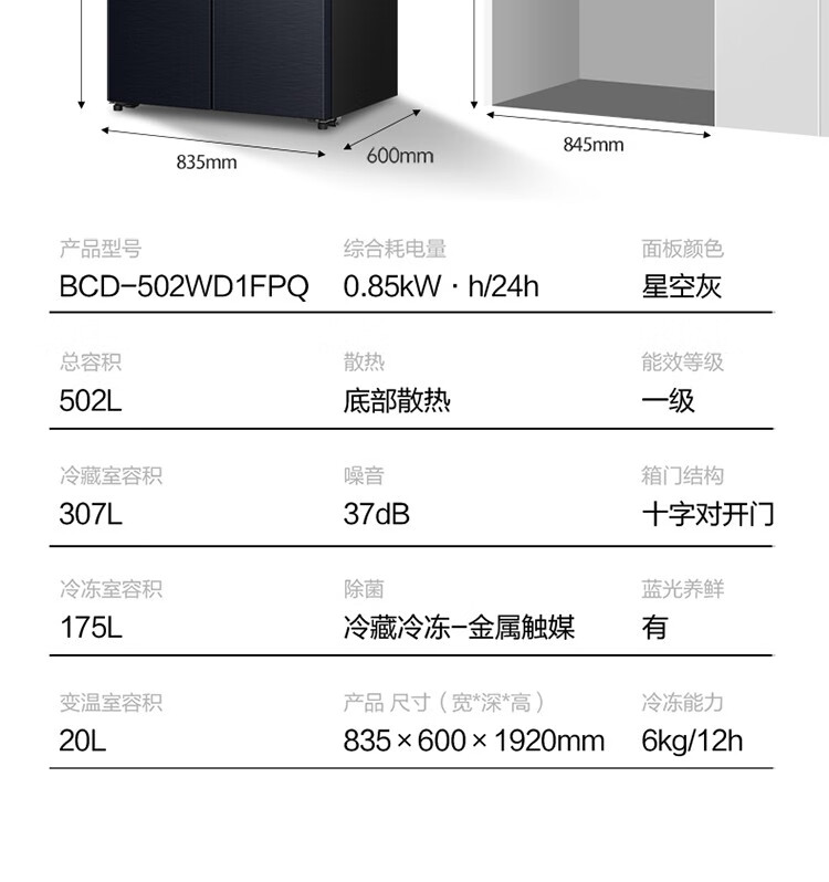 容声(Ronshen)502升十字四开门冰箱零嵌入式一级能效变频超薄风冷无霜大容量家用底部散热电冰箱 以旧换新 BCD-502WD1FPQ星空灰