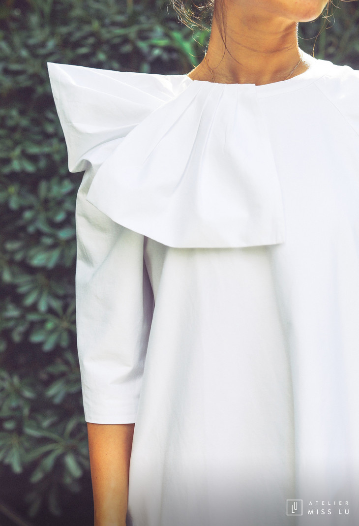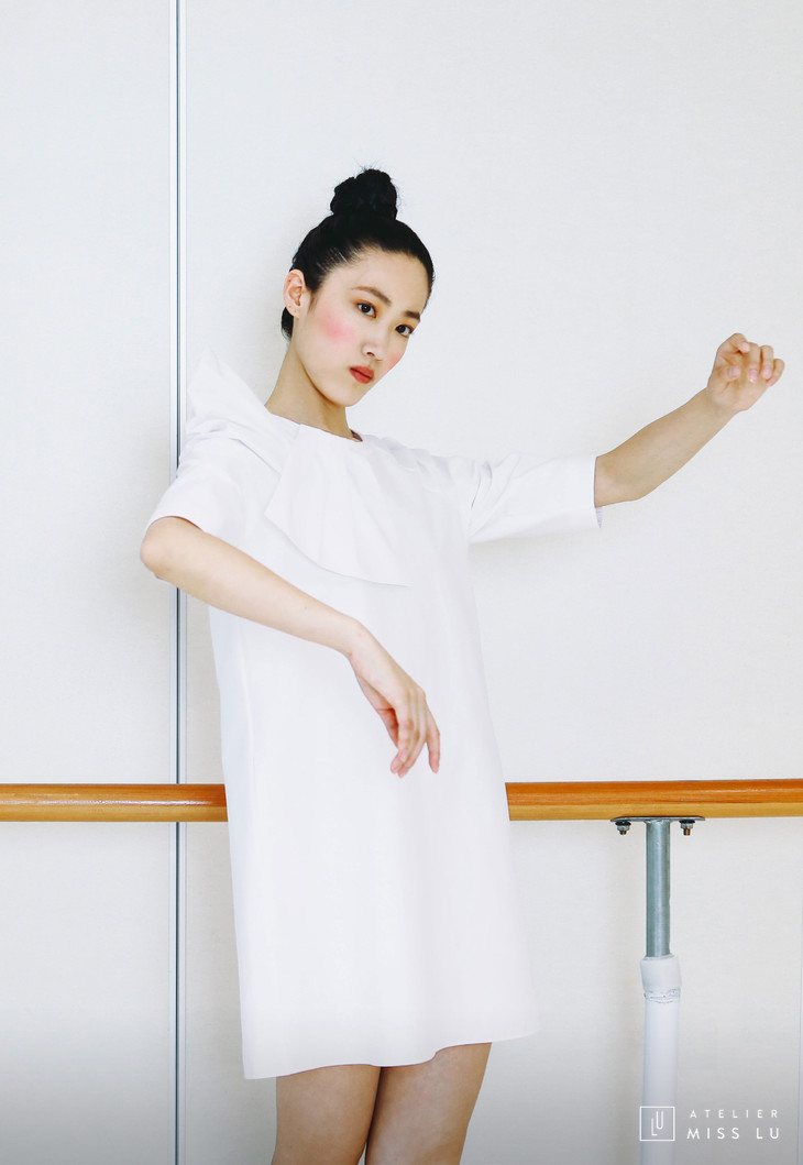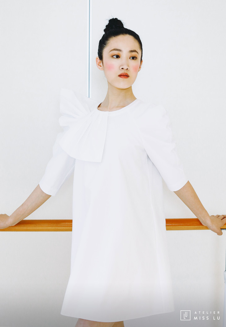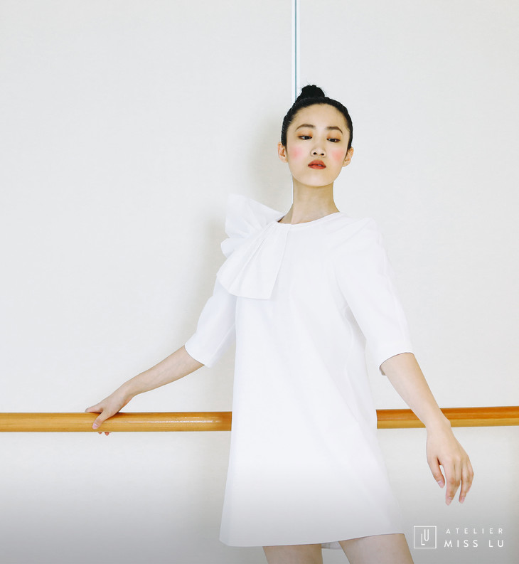 AtelierMissLu / Liza-白色褶皱装饰连身裙