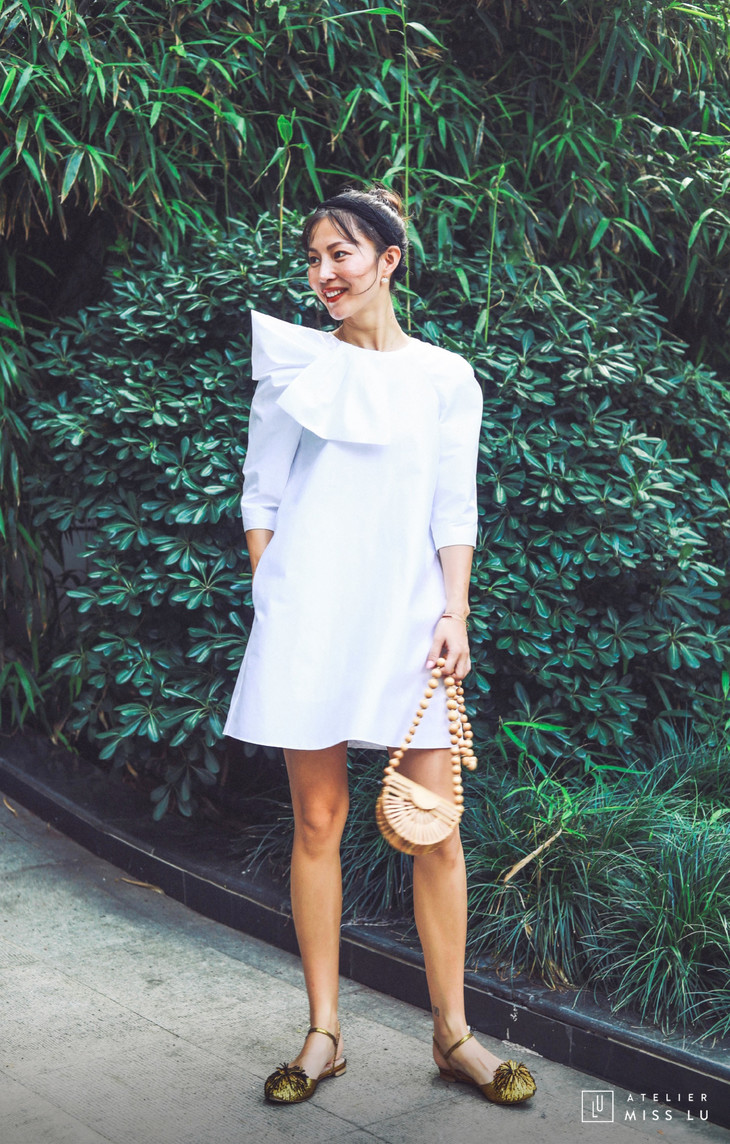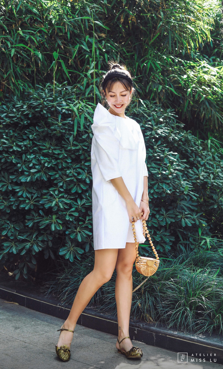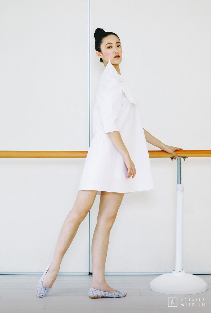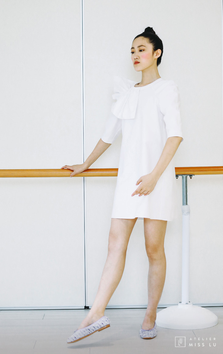 AtelierMissLu / Liza-白色褶皱装饰连身裙