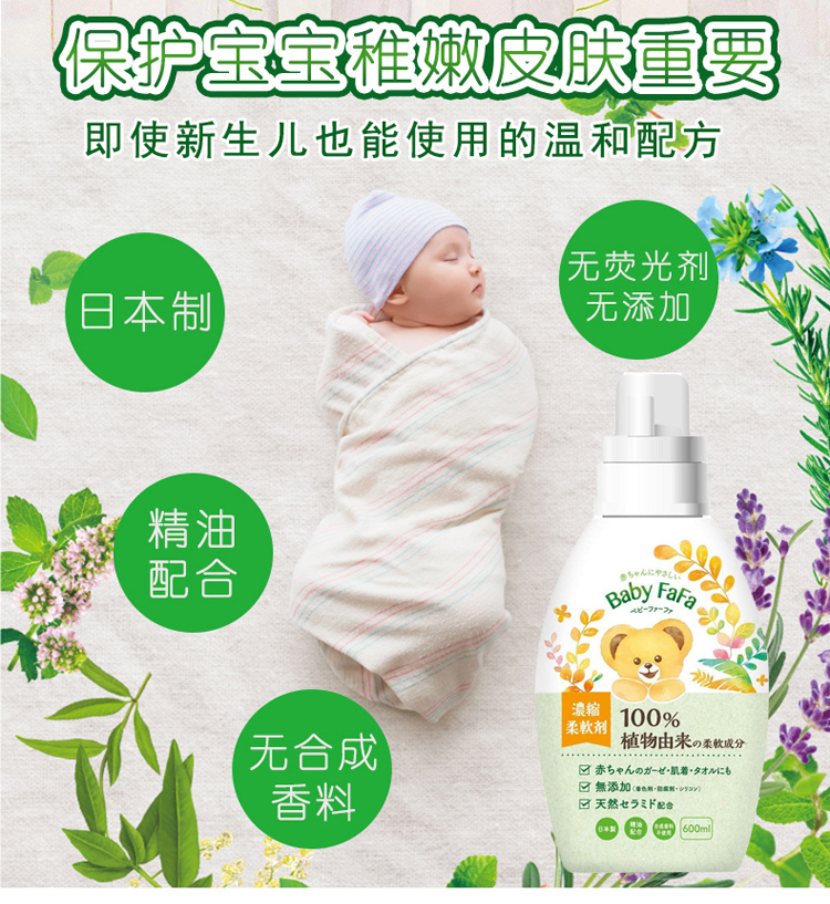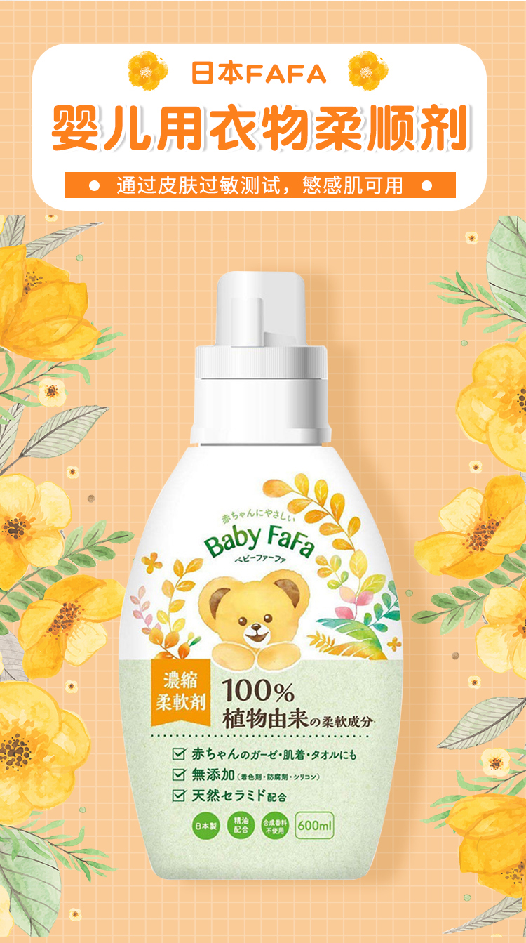 日本FaFa婴儿浓缩衣物柔顺剂600ml 温和柔顺防缩护色 117616