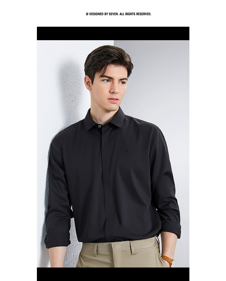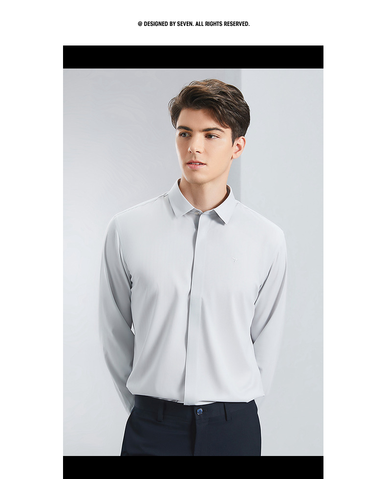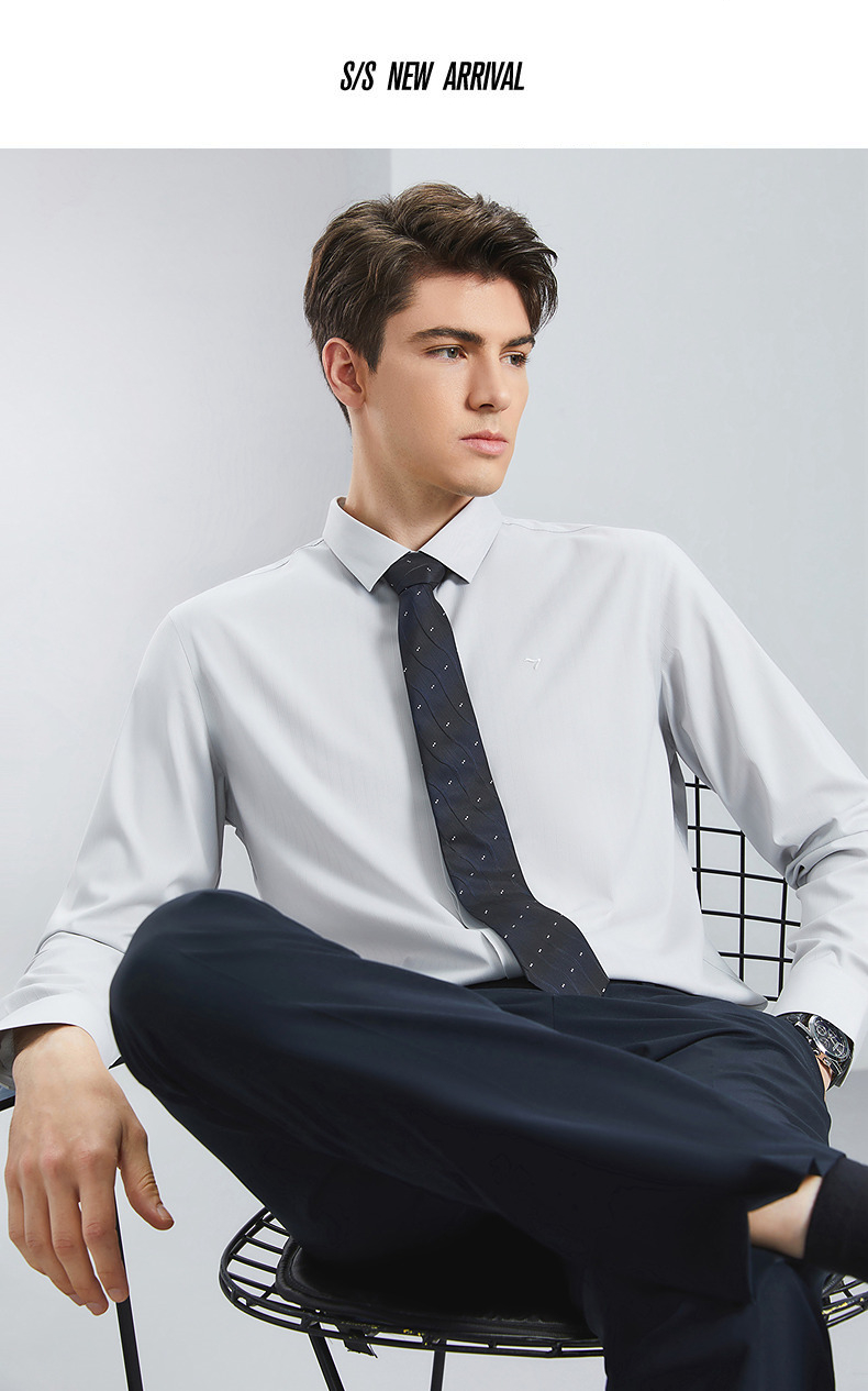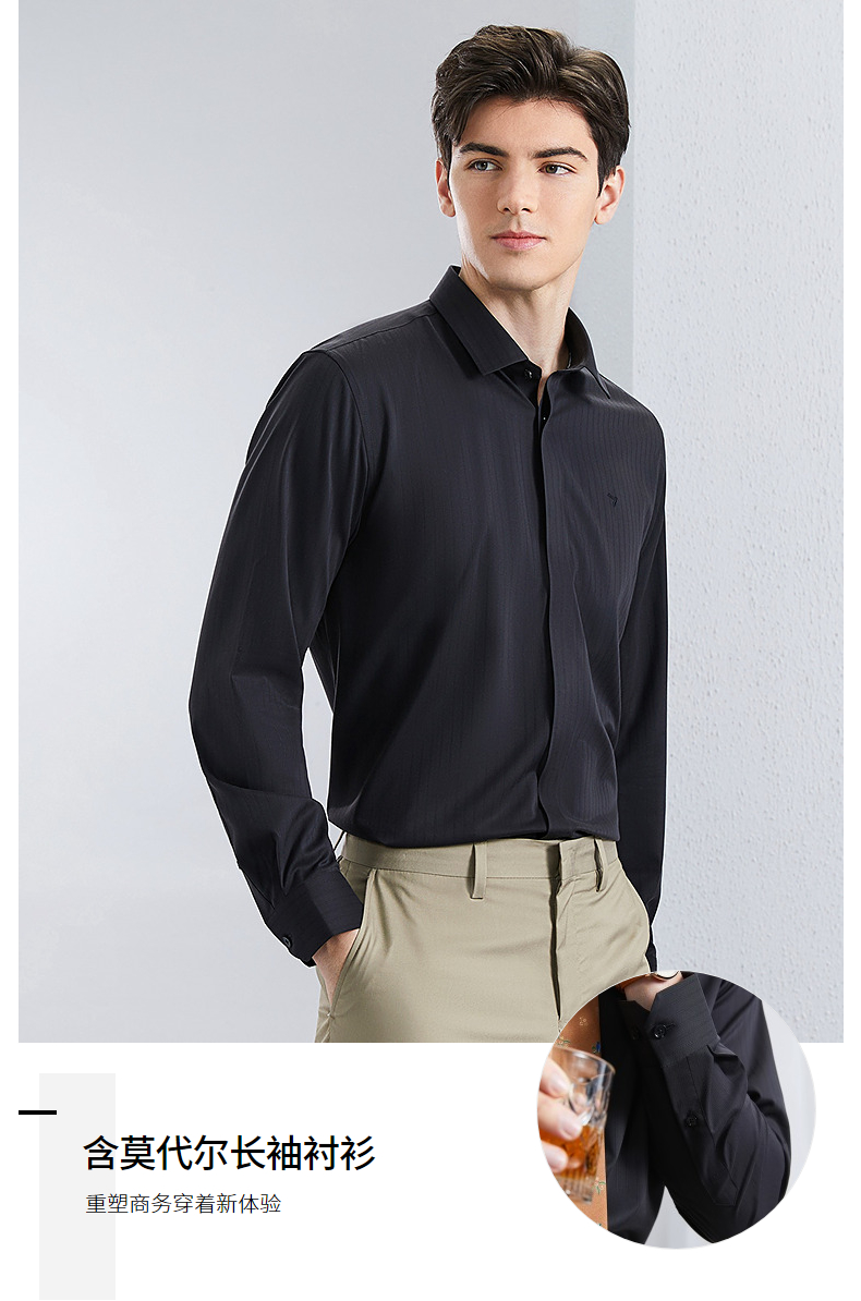 【含莫代尔】柒牌男装长袖衬衫2024春季新款商务正装翻领翻领衬衣 126A70730