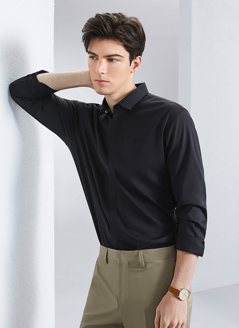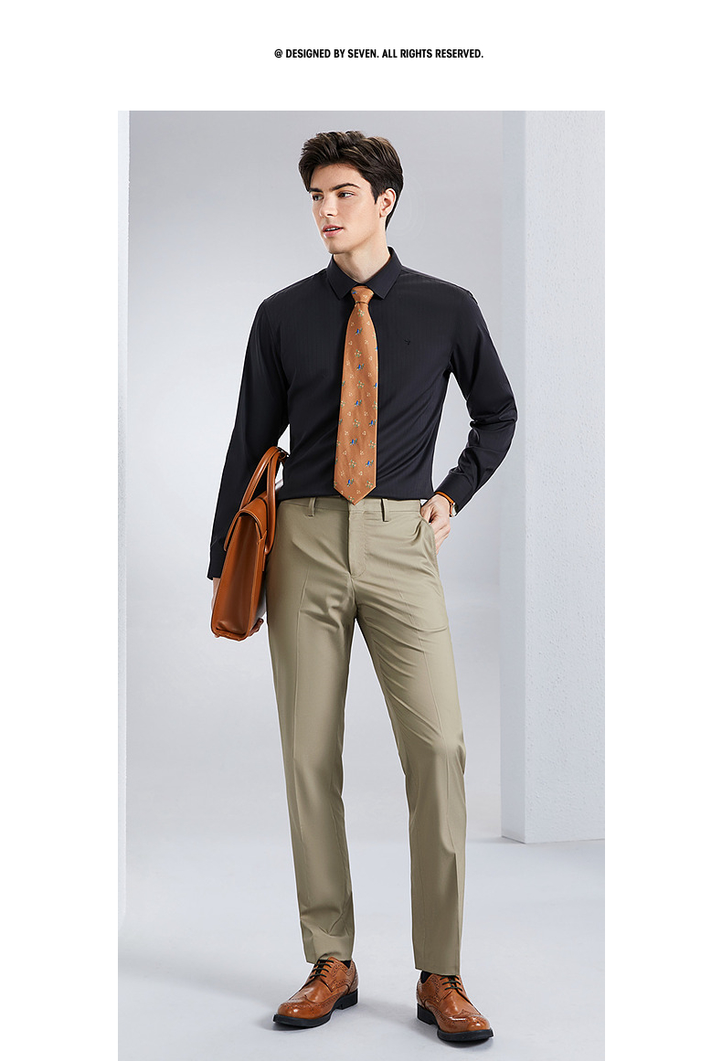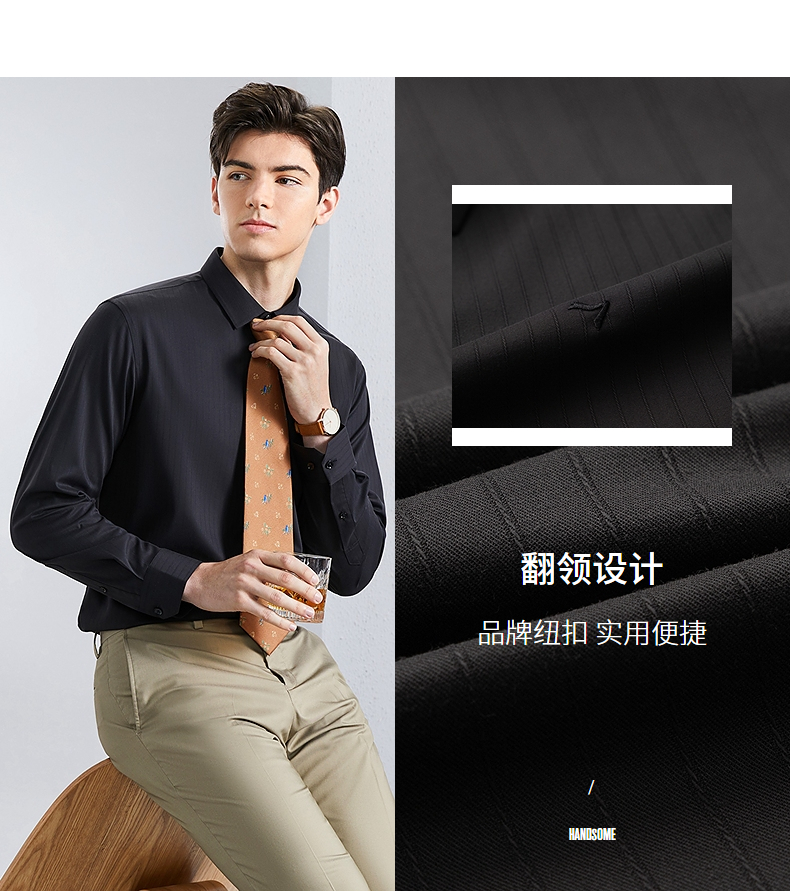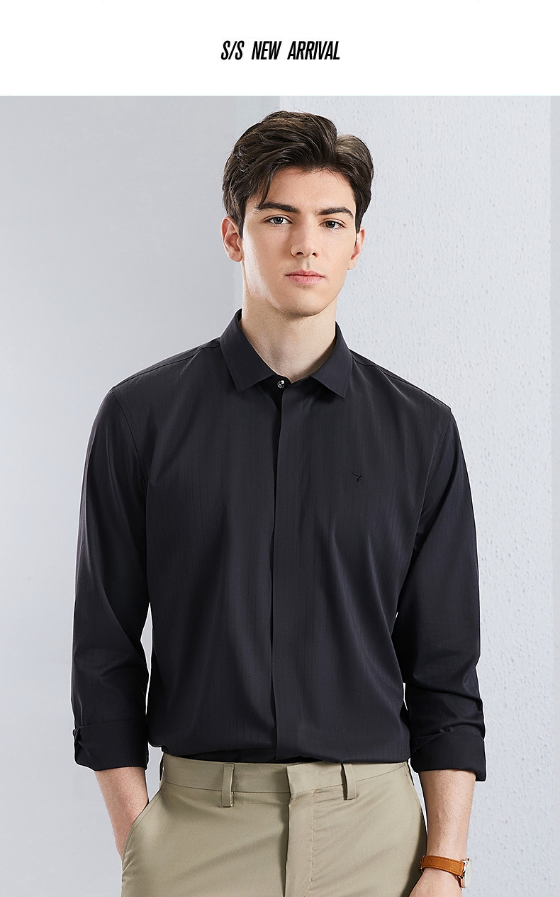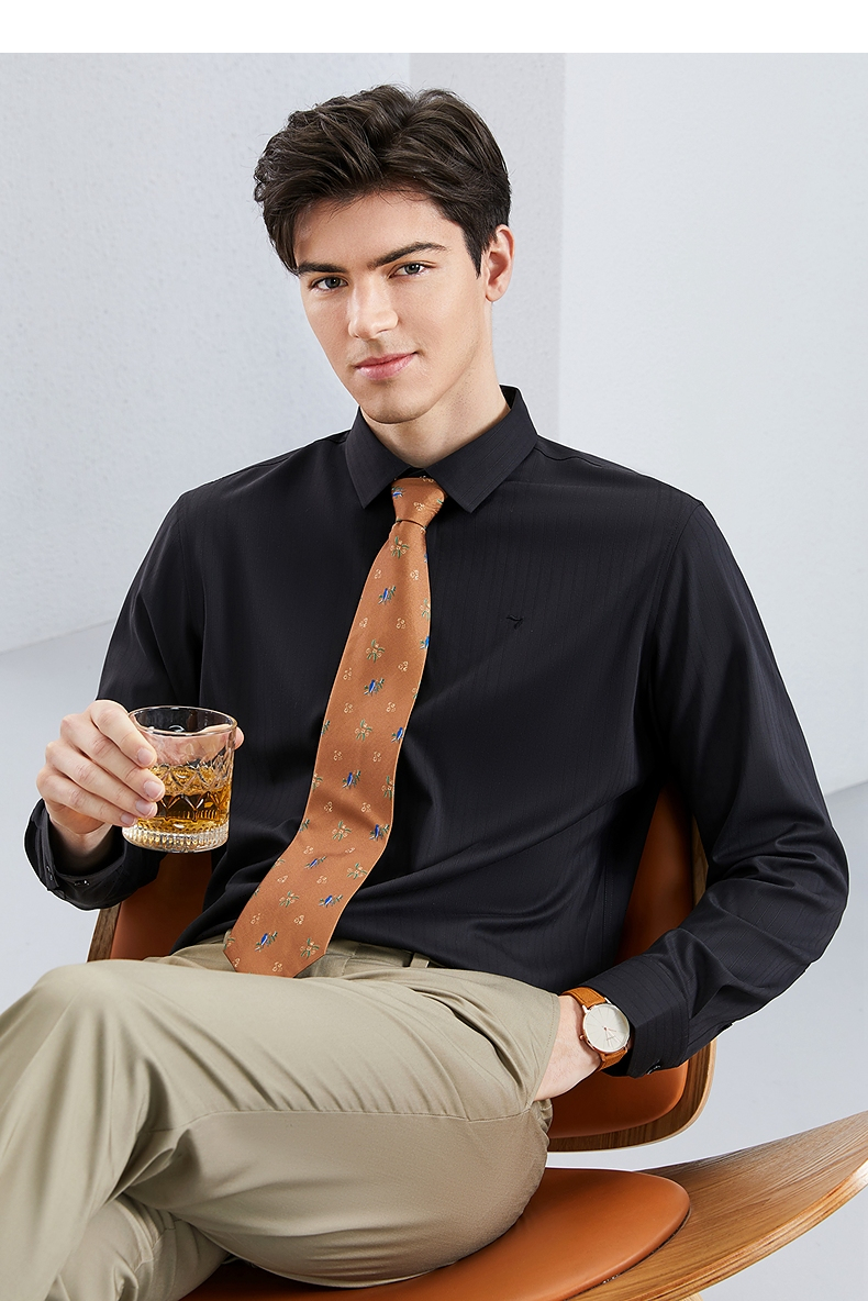 【含莫代尔】柒牌男装长袖衬衫2024春季新款商务正装翻领翻领衬衣 126A70730