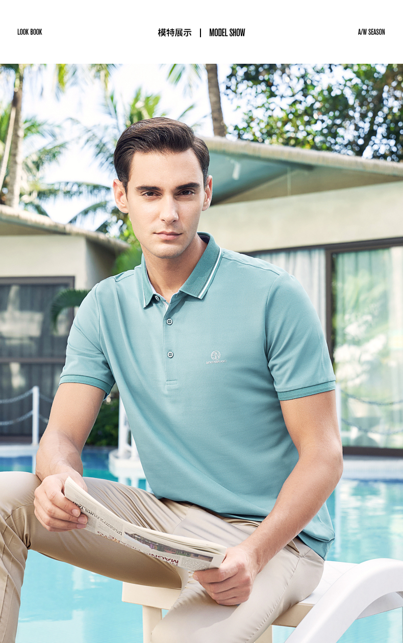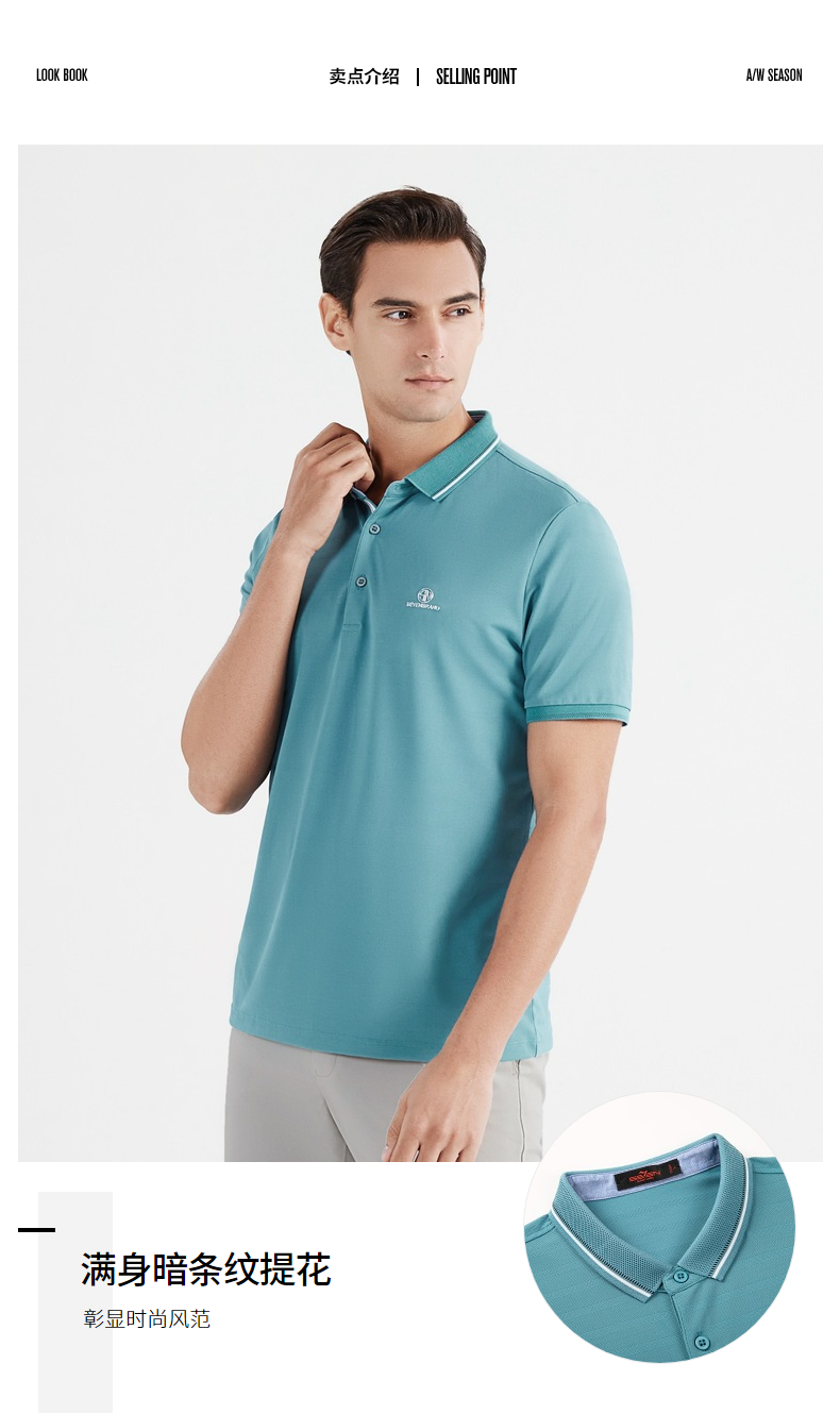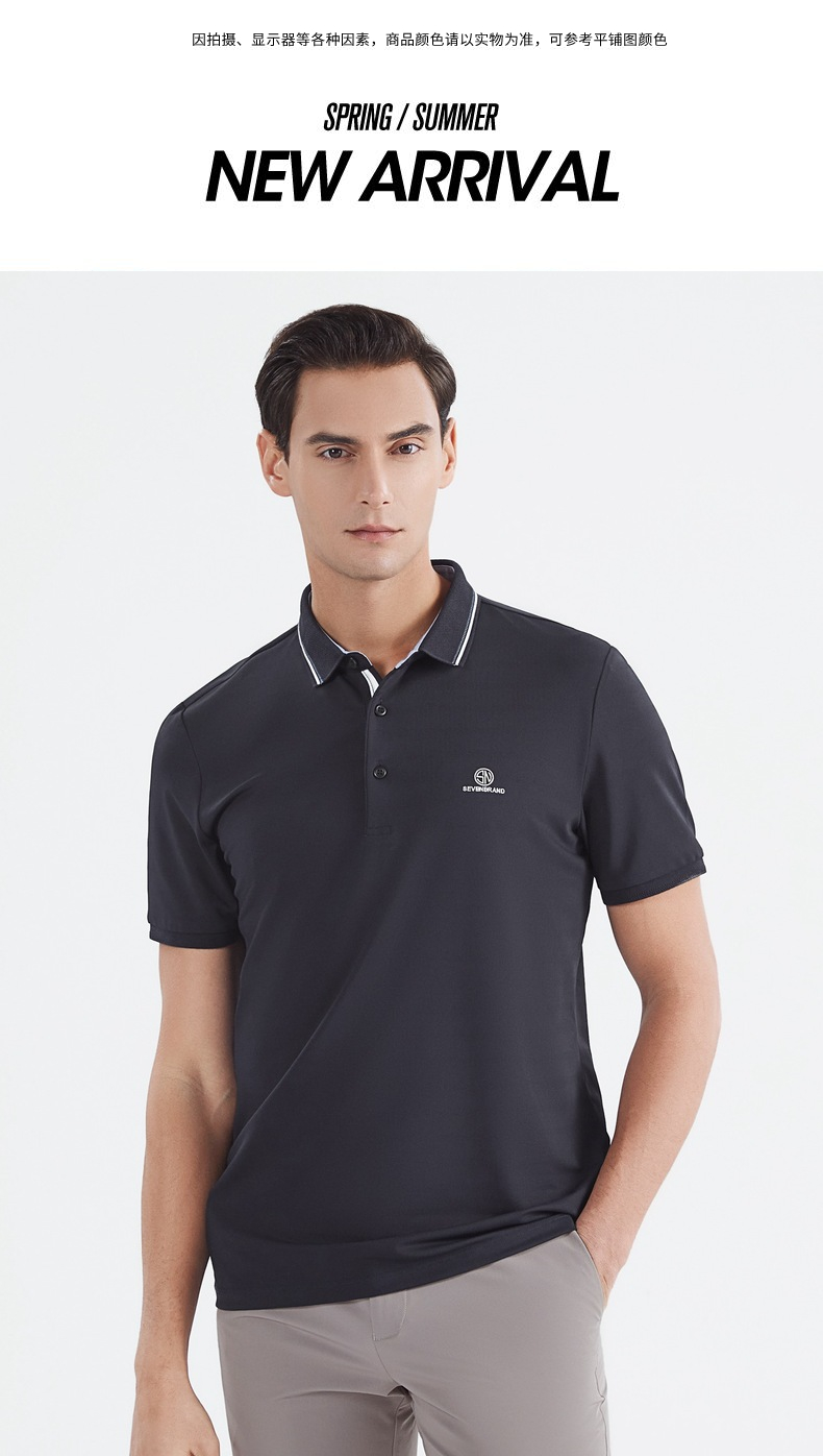 【速干】柒牌polo衫男短袖商务休闲夏季薄款中青年翻领条纹体恤衫122T70140
