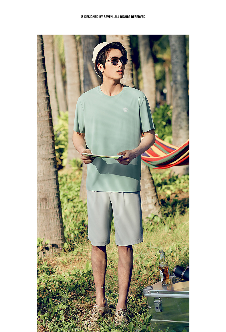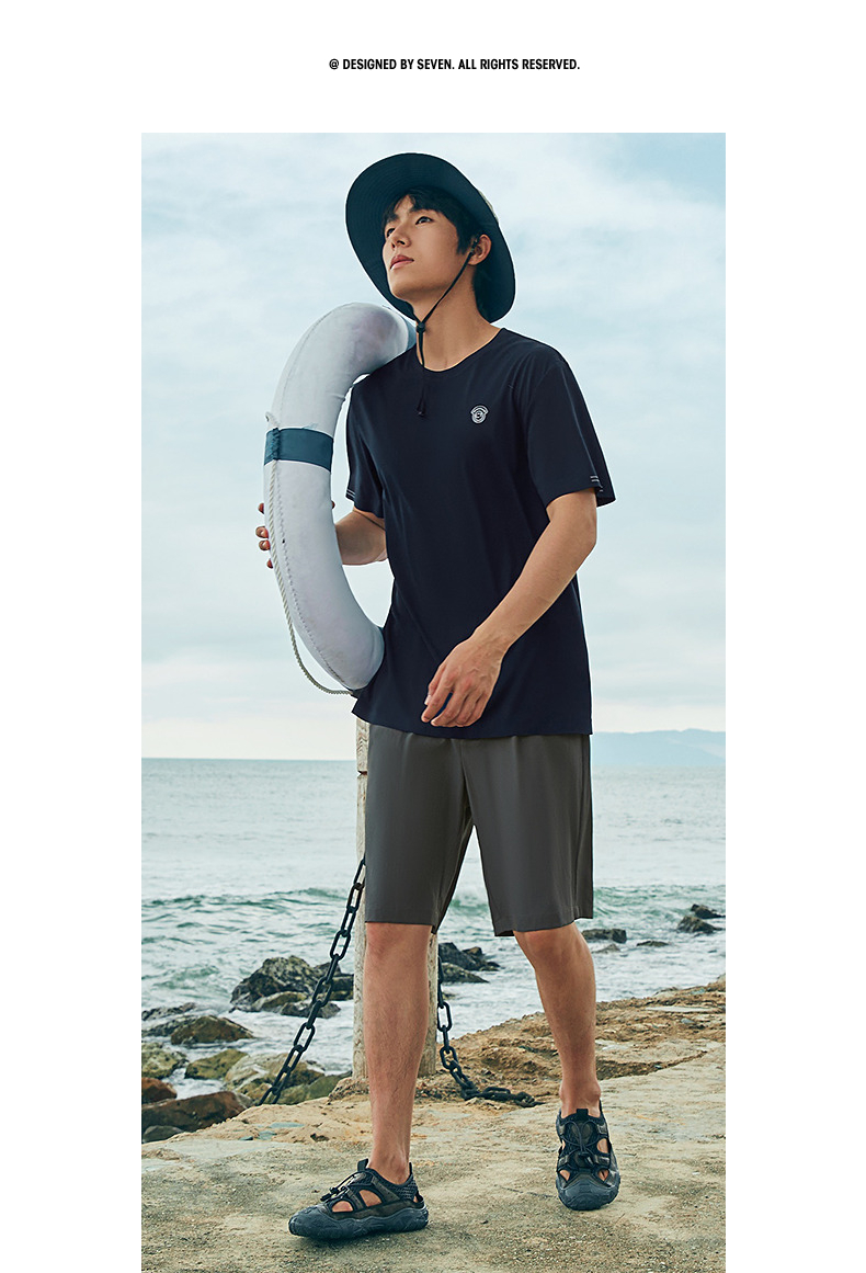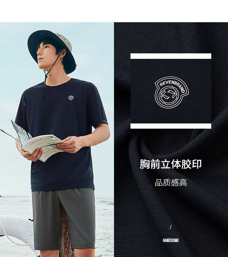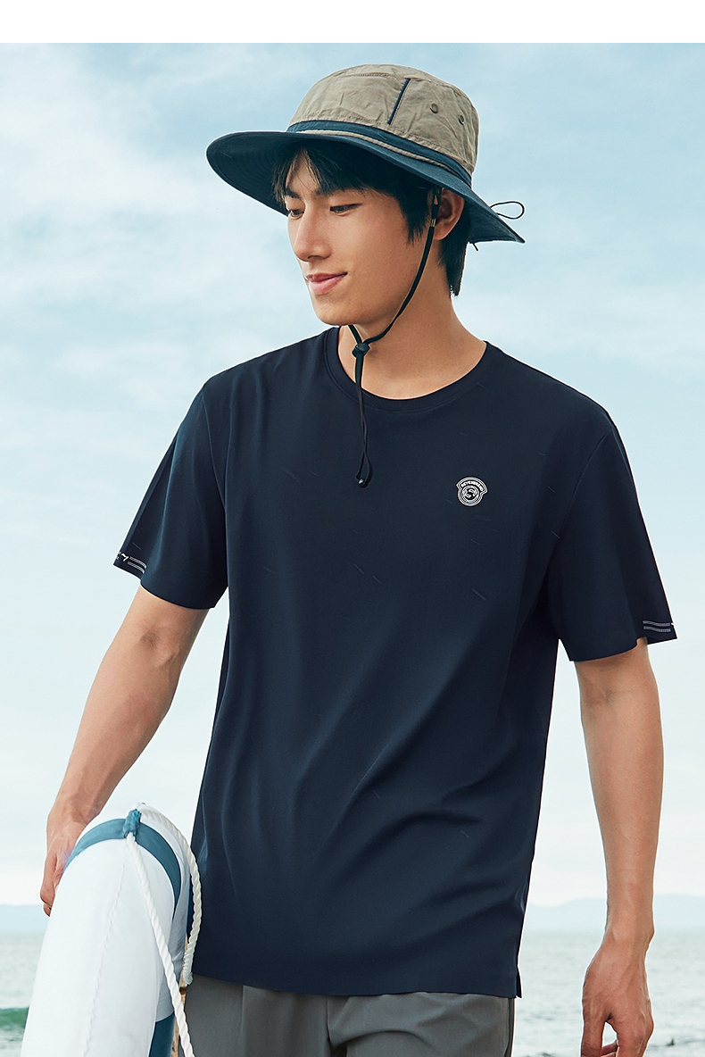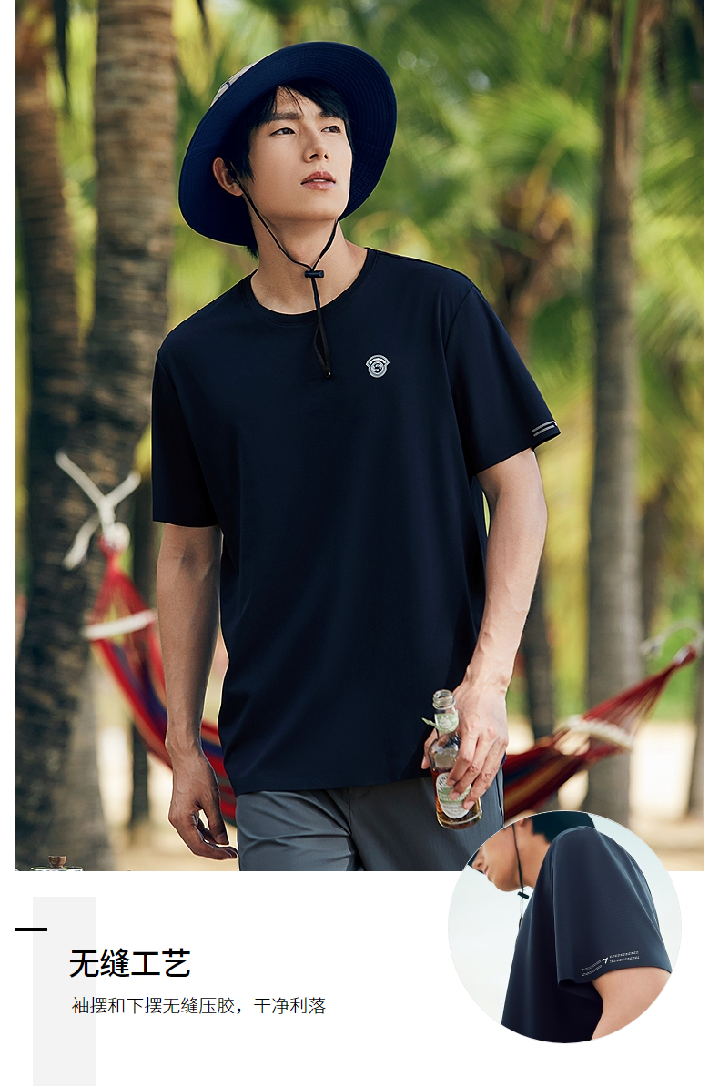 【凉感速干】柒牌男士短袖T恤夏季2024新款时尚休闲亲肤圆领上衣 126T72970