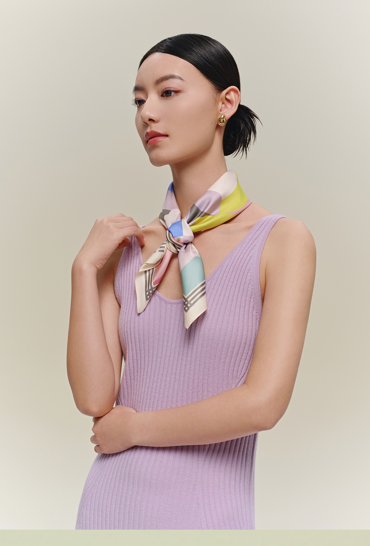 万事利“玉兰赋”63厘米双面印花真丝中方巾