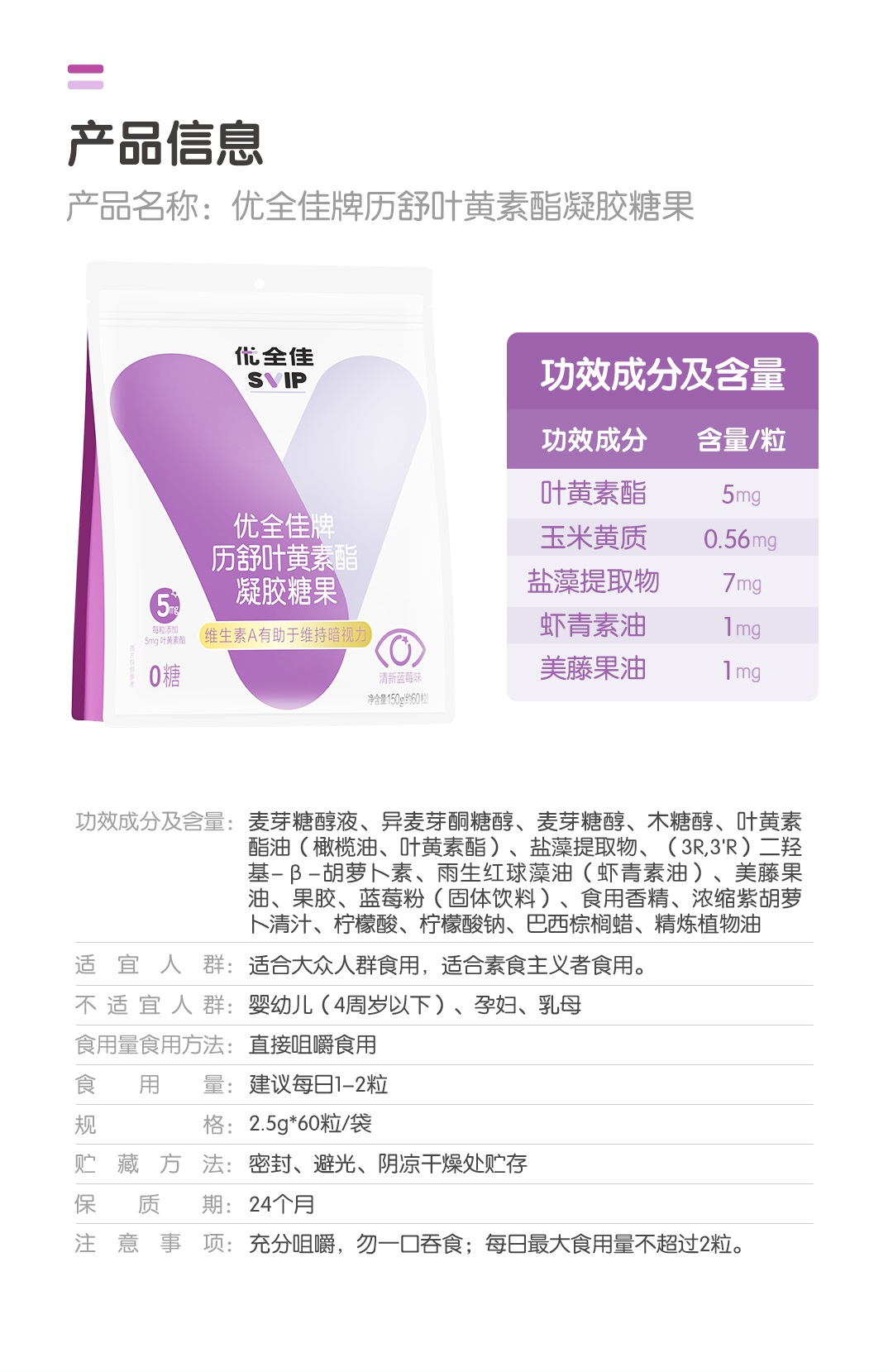 【预售 急单慎拍】无限极优全佳牌历舒叶黄素酯凝胶糖果 2.5g/粒,60粒/袋 原价239元