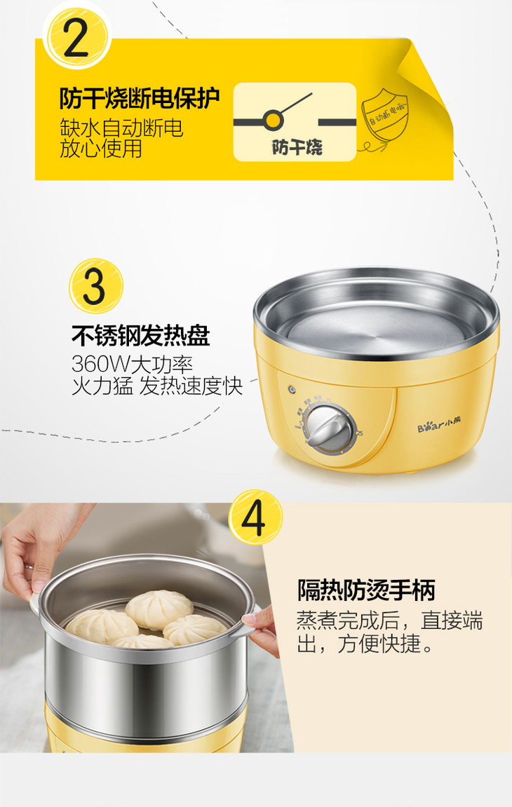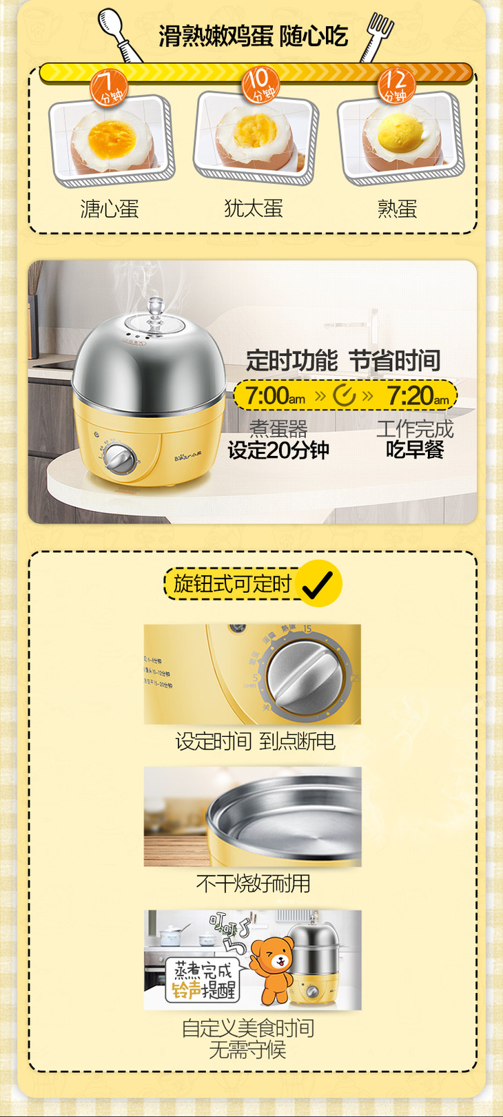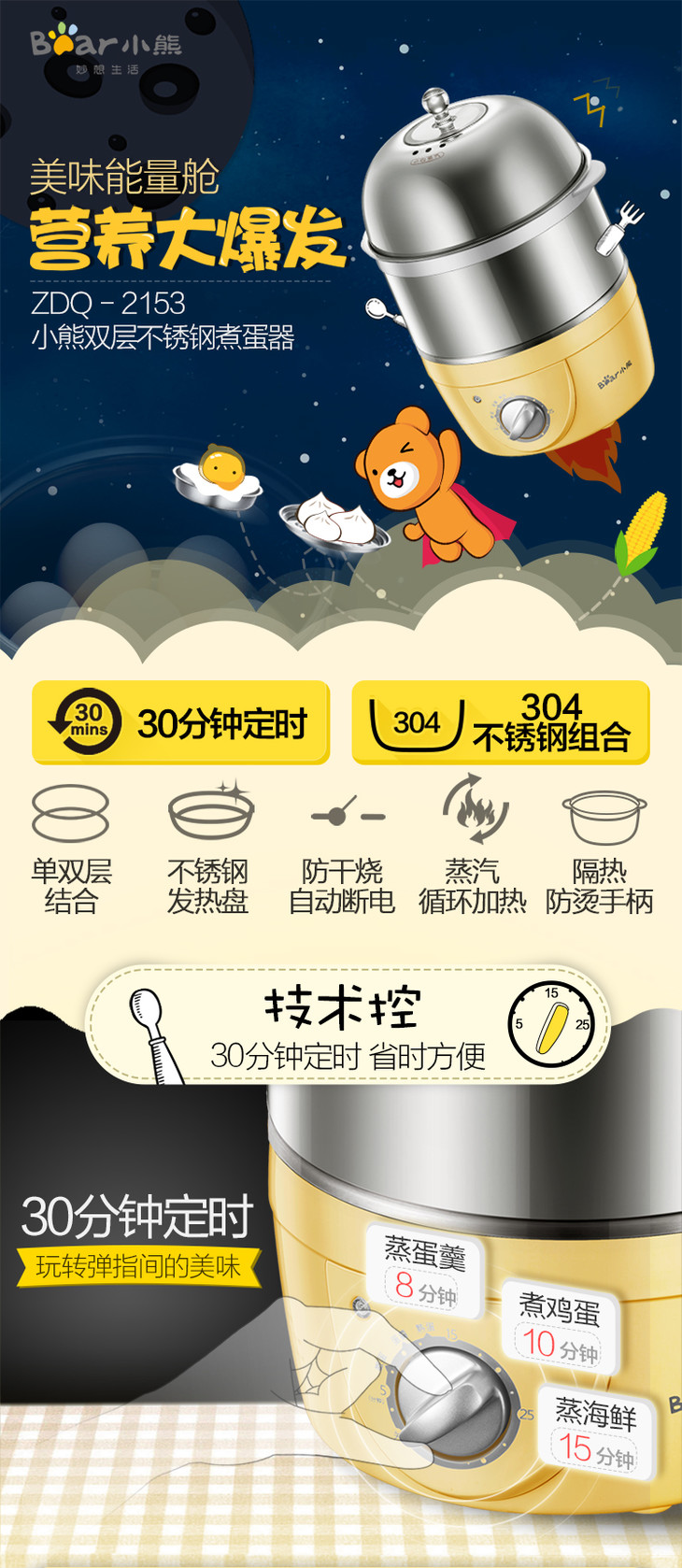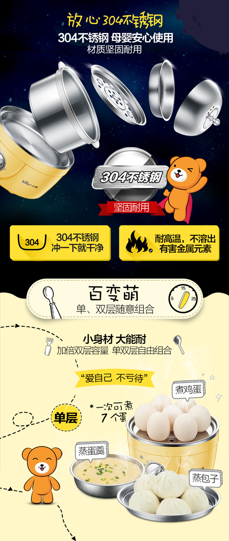 小熊(Bear) 煮蛋器 双层定时蒸蛋器全不锈钢自动断电14个蛋早餐机 ZDQ-2153