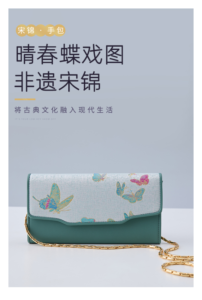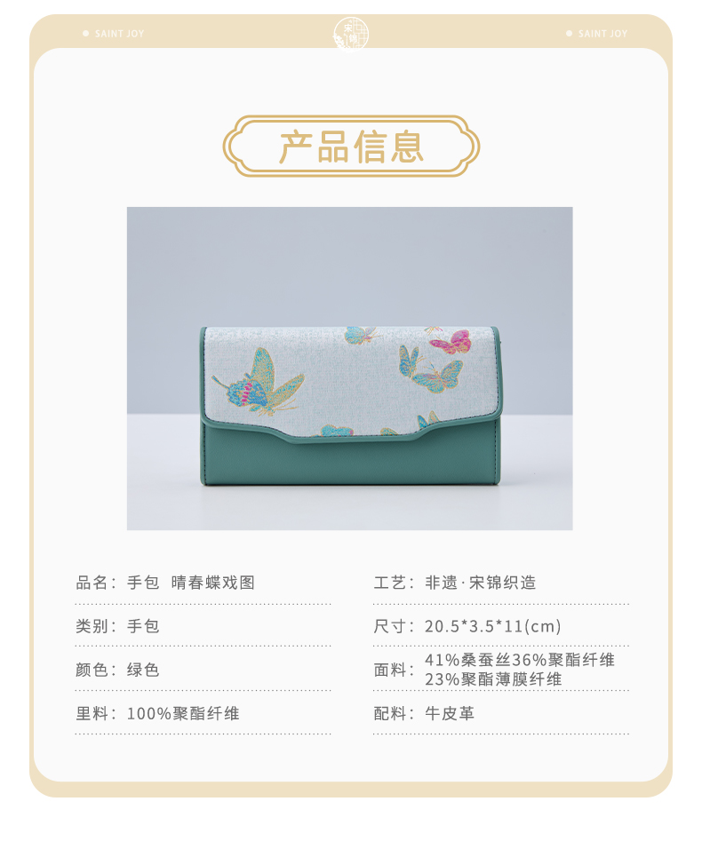 SAINTJOY/上久楷 新中式宋锦女士手包 晴春蝶戏图 BWS25B0301