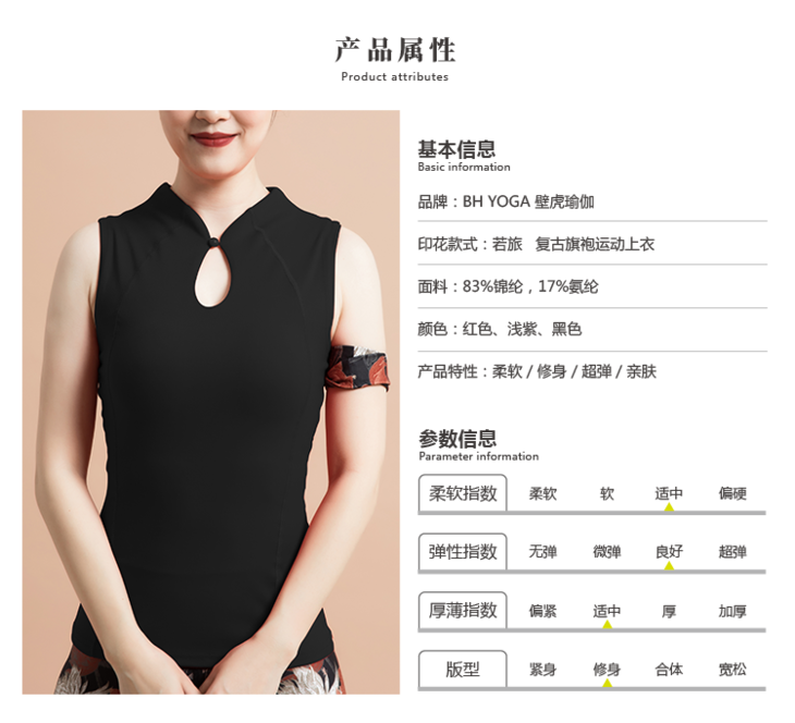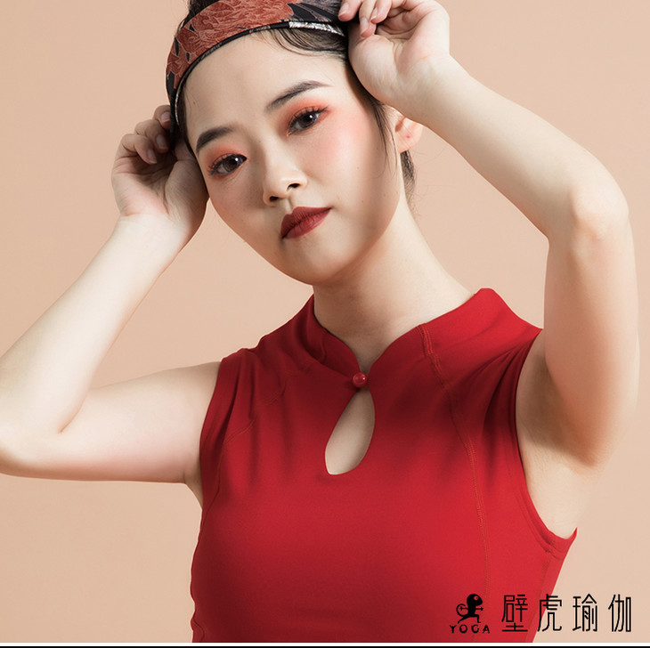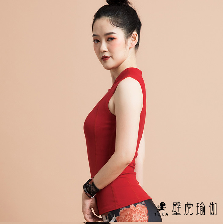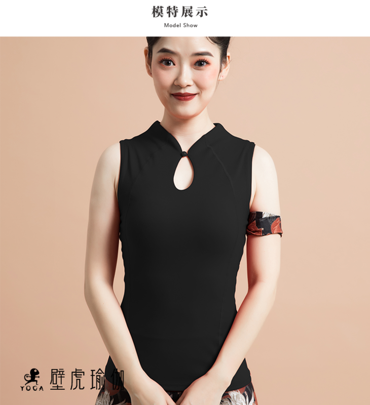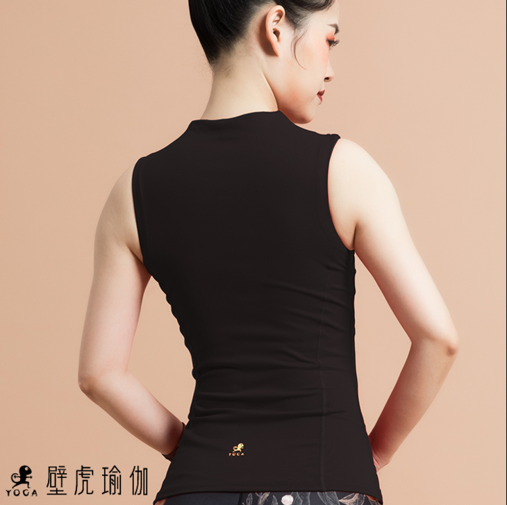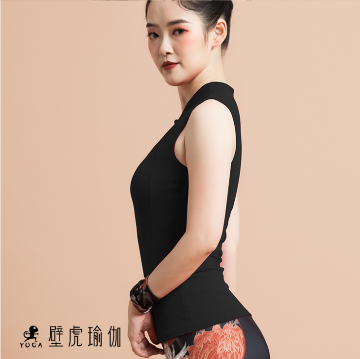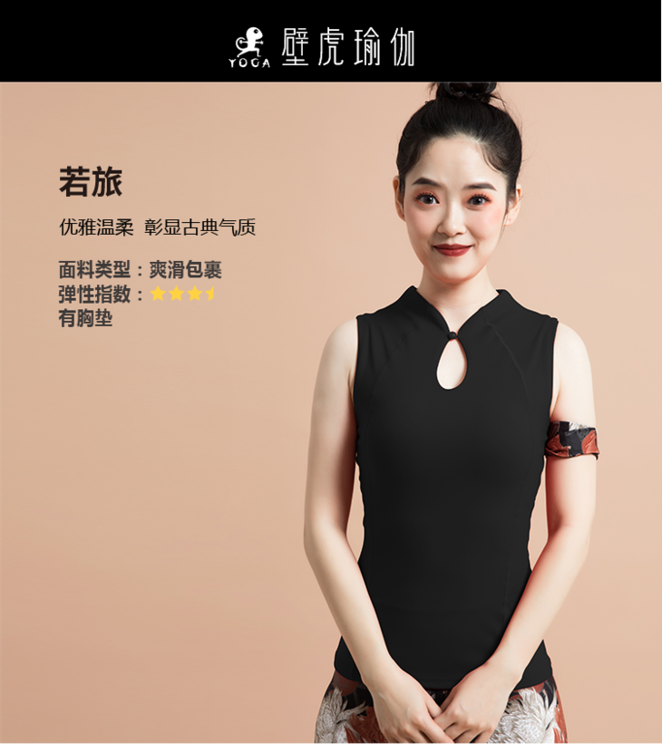 【现货秒发】2020壁虎新款《若旅-黑》立领旗袍式领口瑜伽背心(有胸垫)