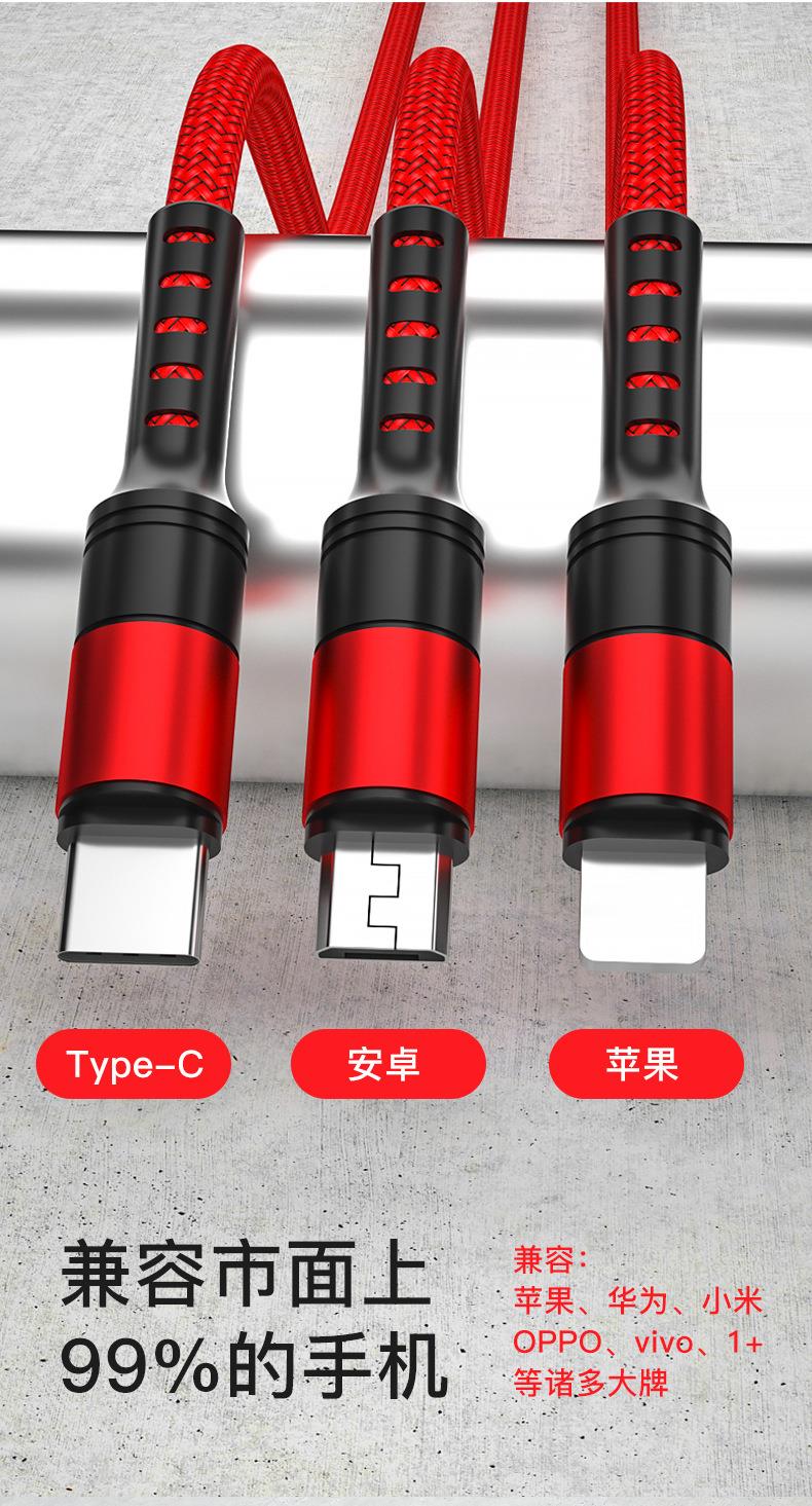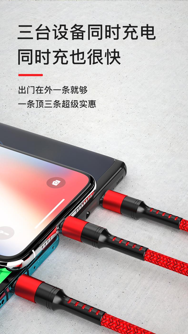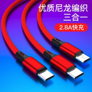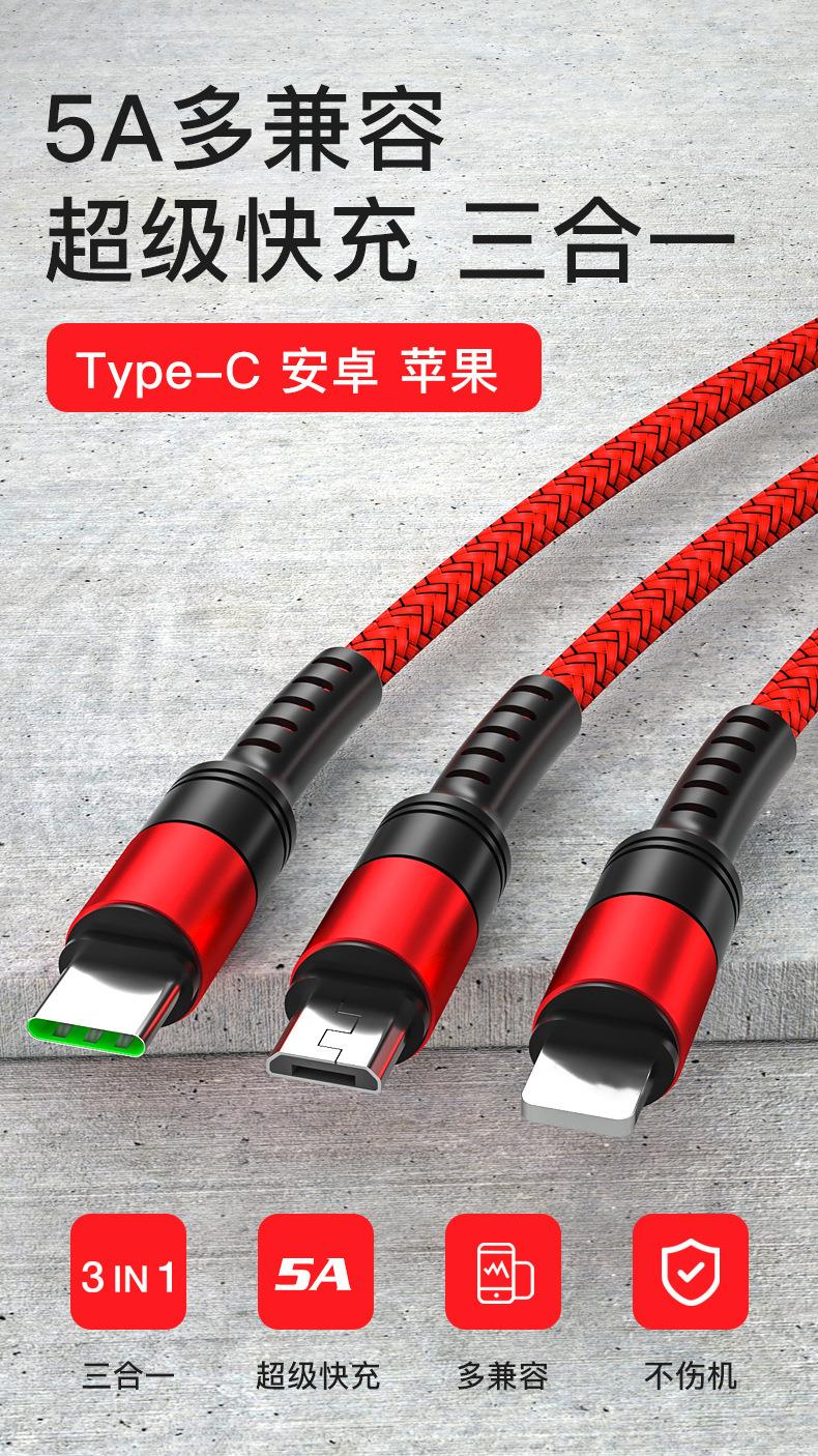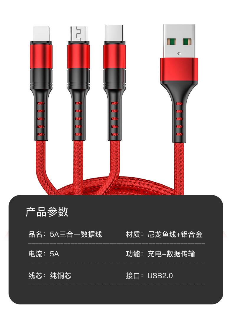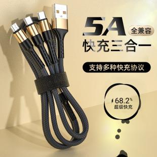 5A一拖三数据线适用华为超级快充OPPO闪充苹果三合一充电线礼品